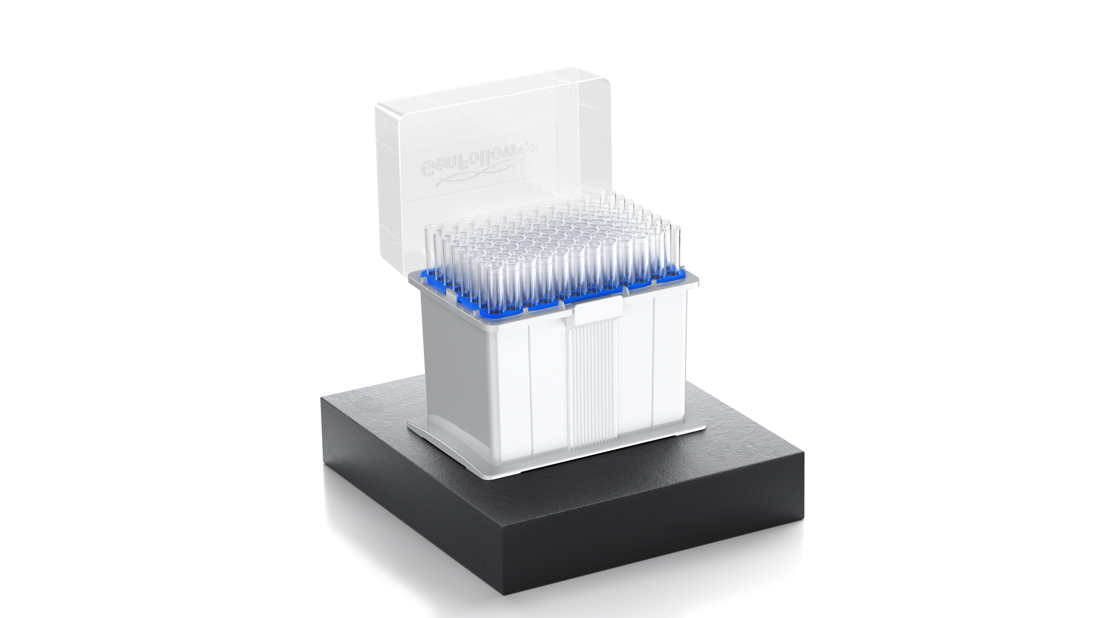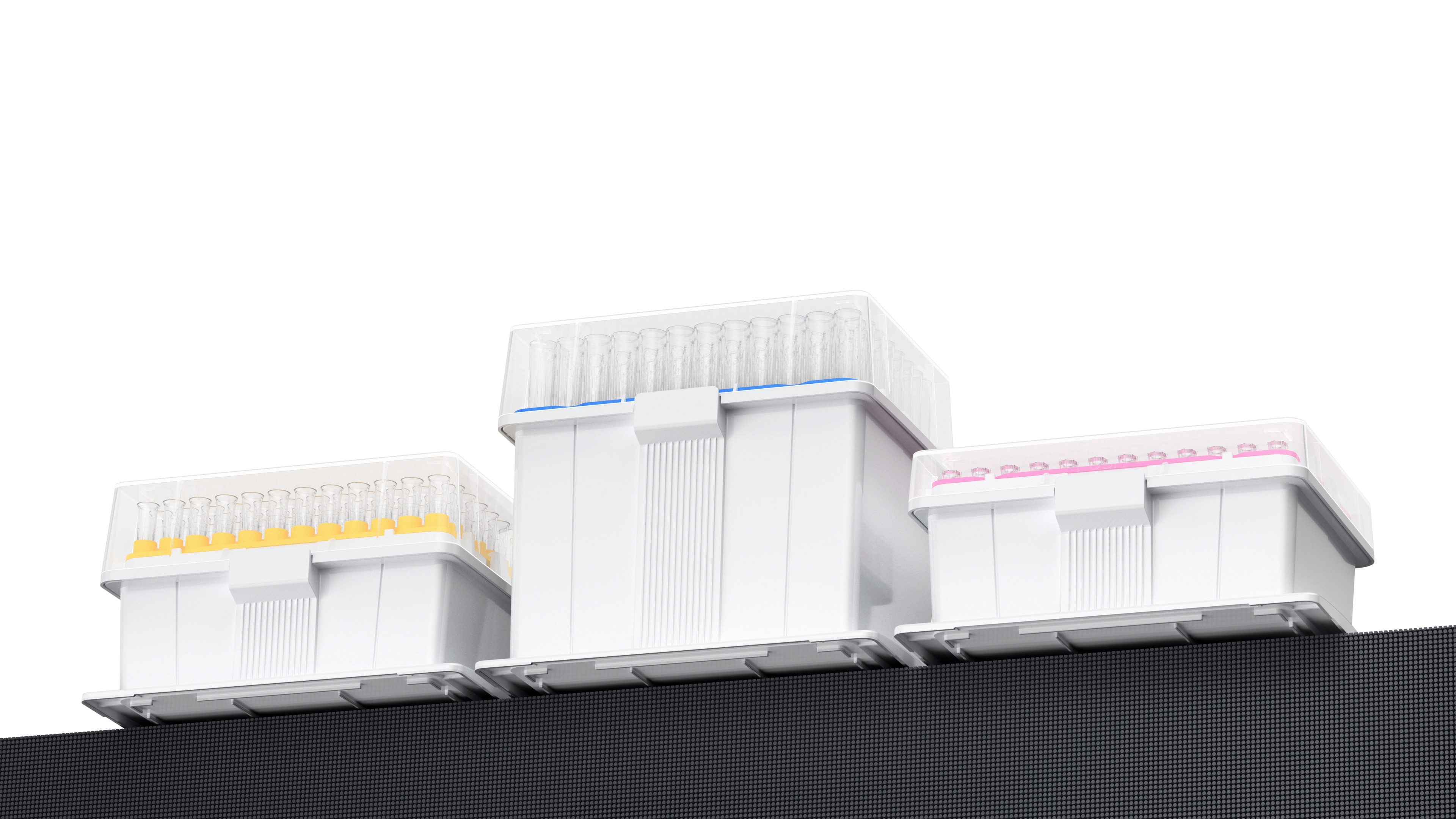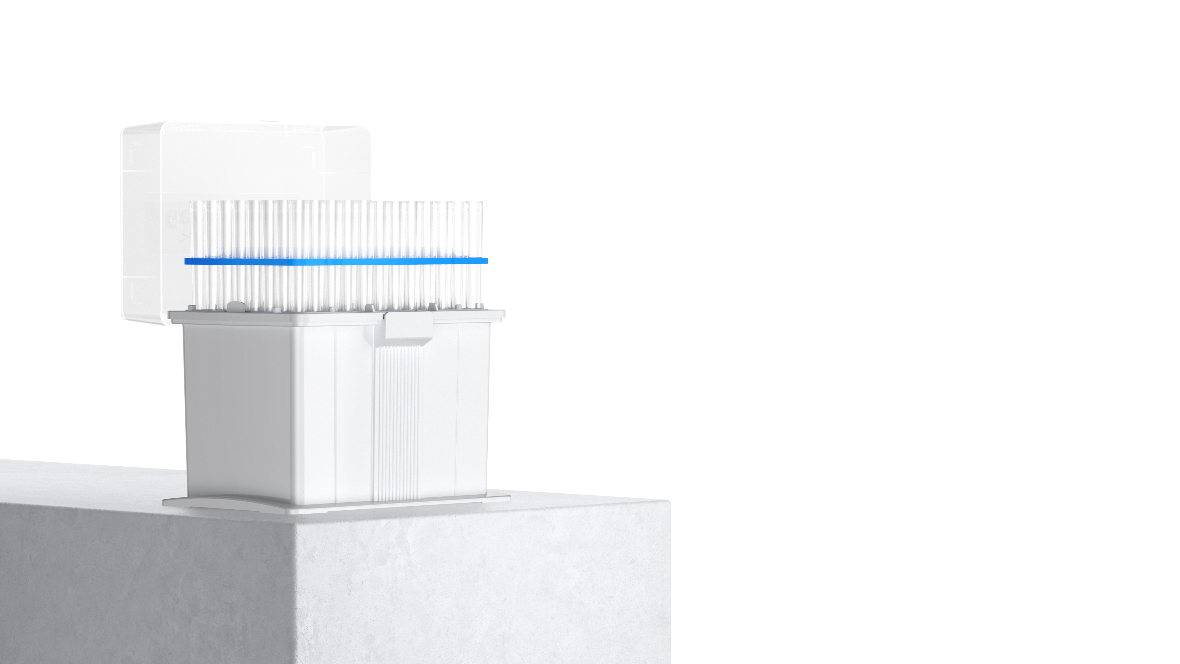 The surfaces of the lid and box (excluding the logo area) feature a fine frosted finish, facilitating user marking that is not easily erased. The internal snap-fit lid design allows for easy one-handed opening with a light press, offering both simplicity and practicality. The pipette tips incorporate a flexible interface design with a thinner air vent and shortened hanging feet, significantly reducing the force required for attachment, thereby mitigating wrist fatigue during prolonged use. The white design of the bottom box provides a "white paper" visual effect, making markings easier to view; the semi-transparent lid allows users to quickly identify tip specifications by the carrier plate's color. A dedicated marking area is present in the middle of the lid's top surface for convenient labeling and writing.