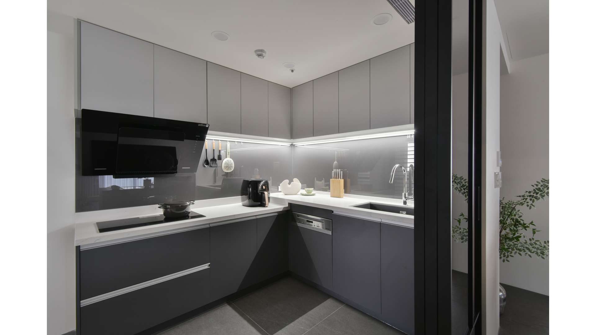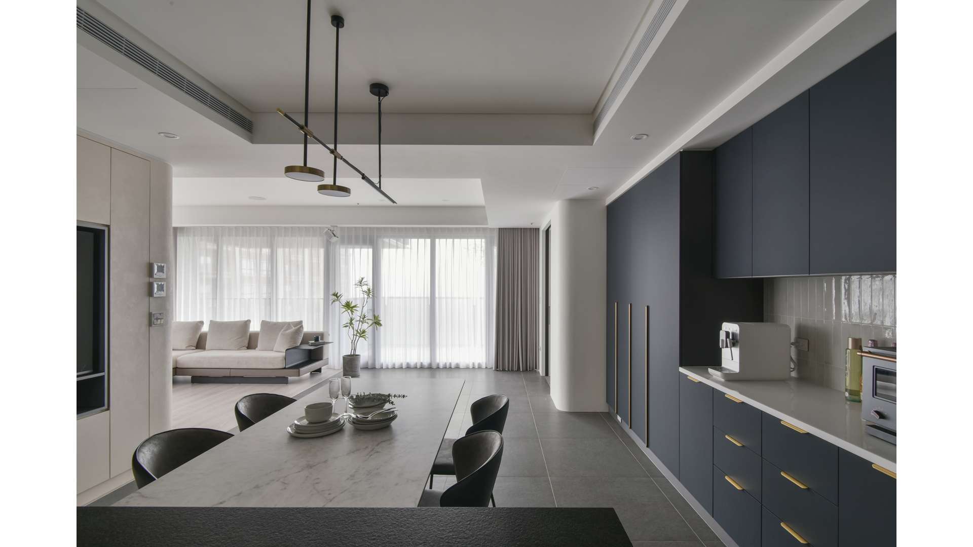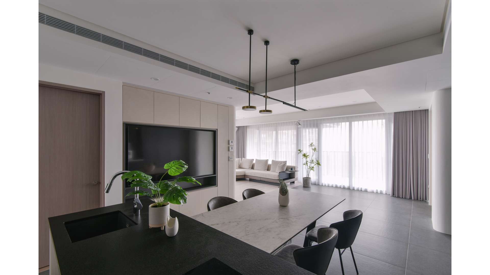 The space is designed with a minimalist approach, reducing the use of superfluous materials to emphasize clarity and function. In the dining area, kitchen, and bedrooms, low-formaldehyde modular cabinetry was selected to promote a healthier living environment. An ERV system was integrated throughout the property to maintain optimal indoor temperature and humidity, enhancing comfort while reducing energy consumption and easing the load on air conditioning.