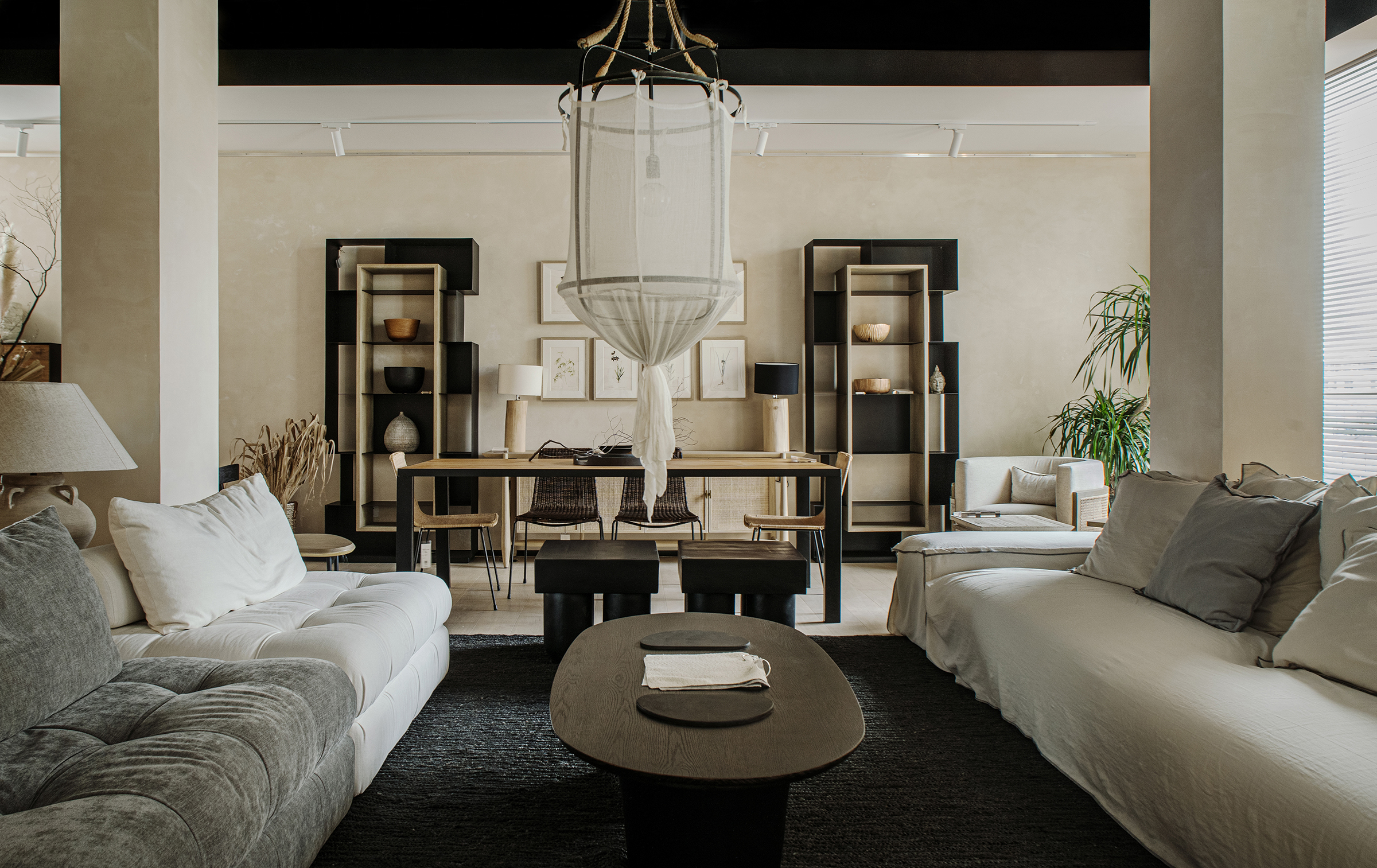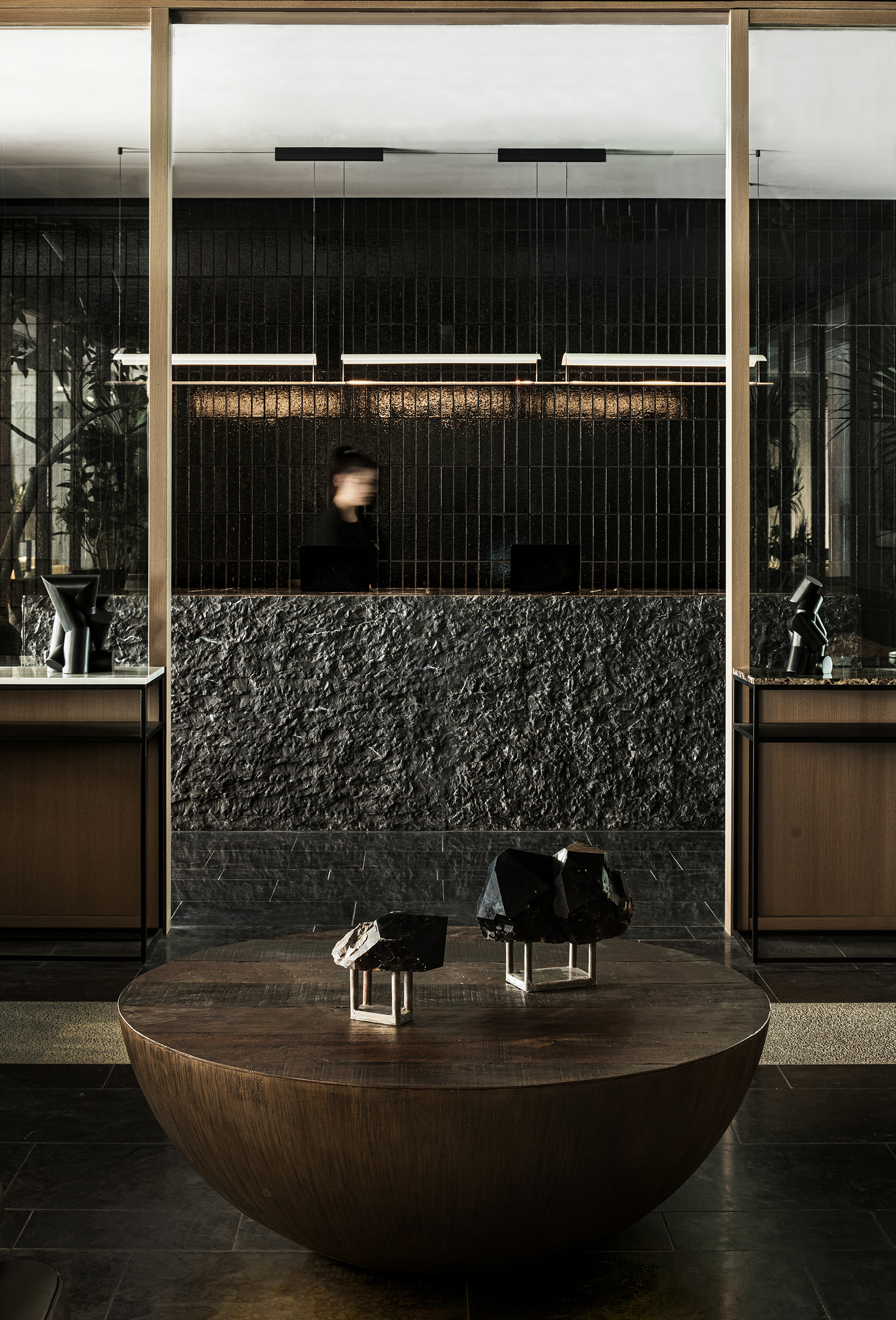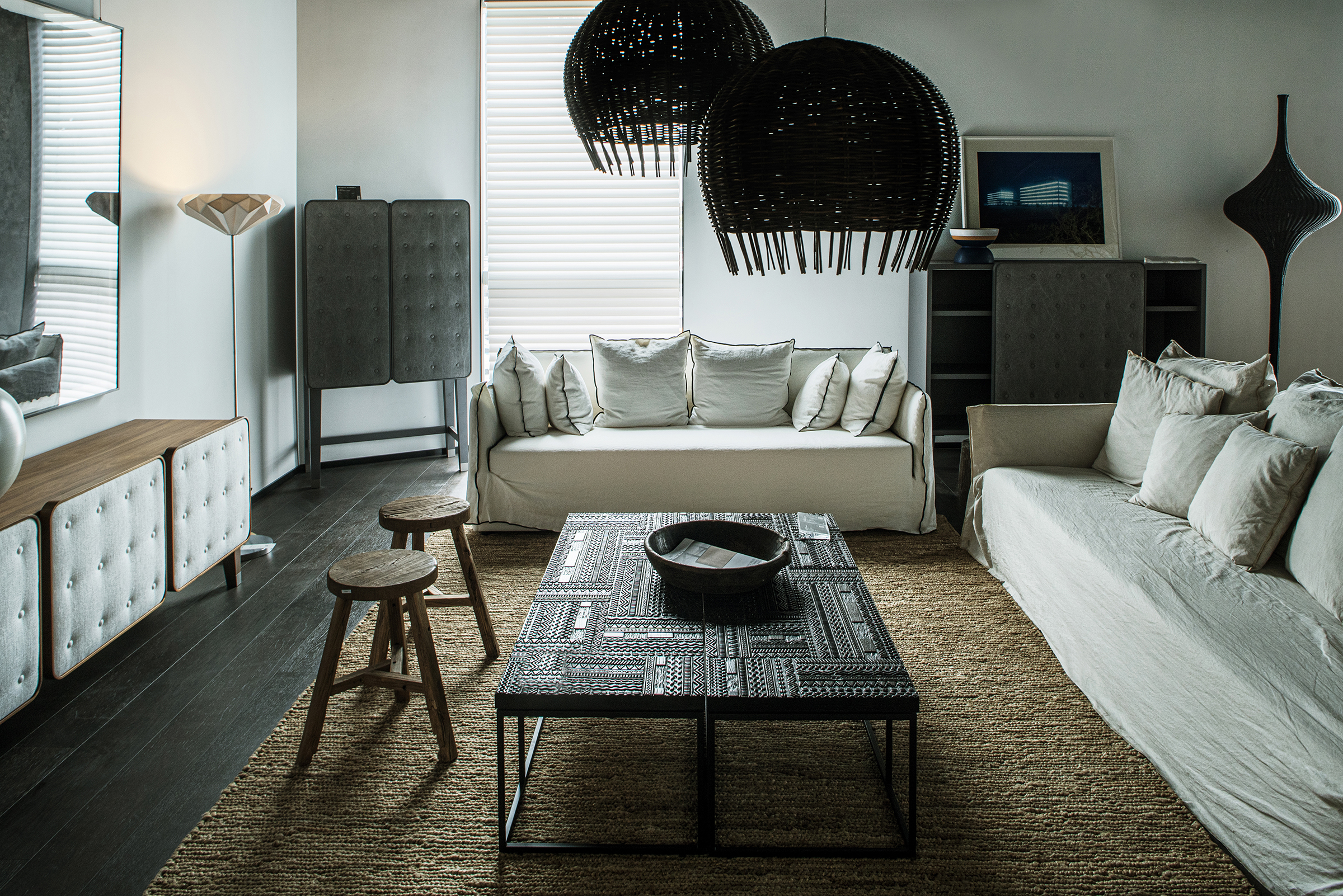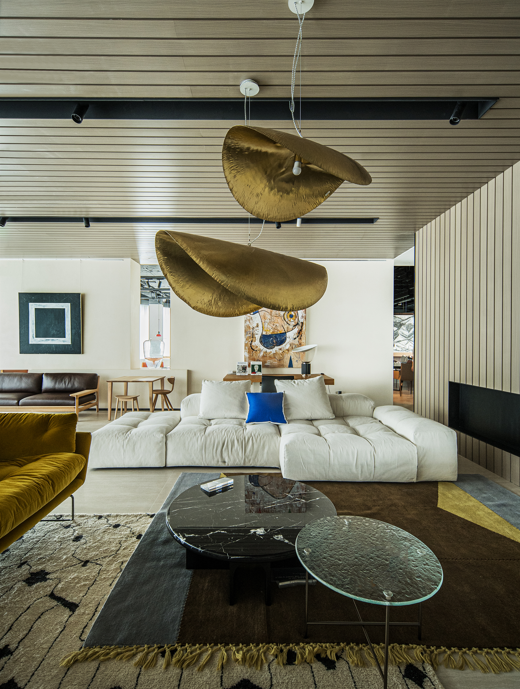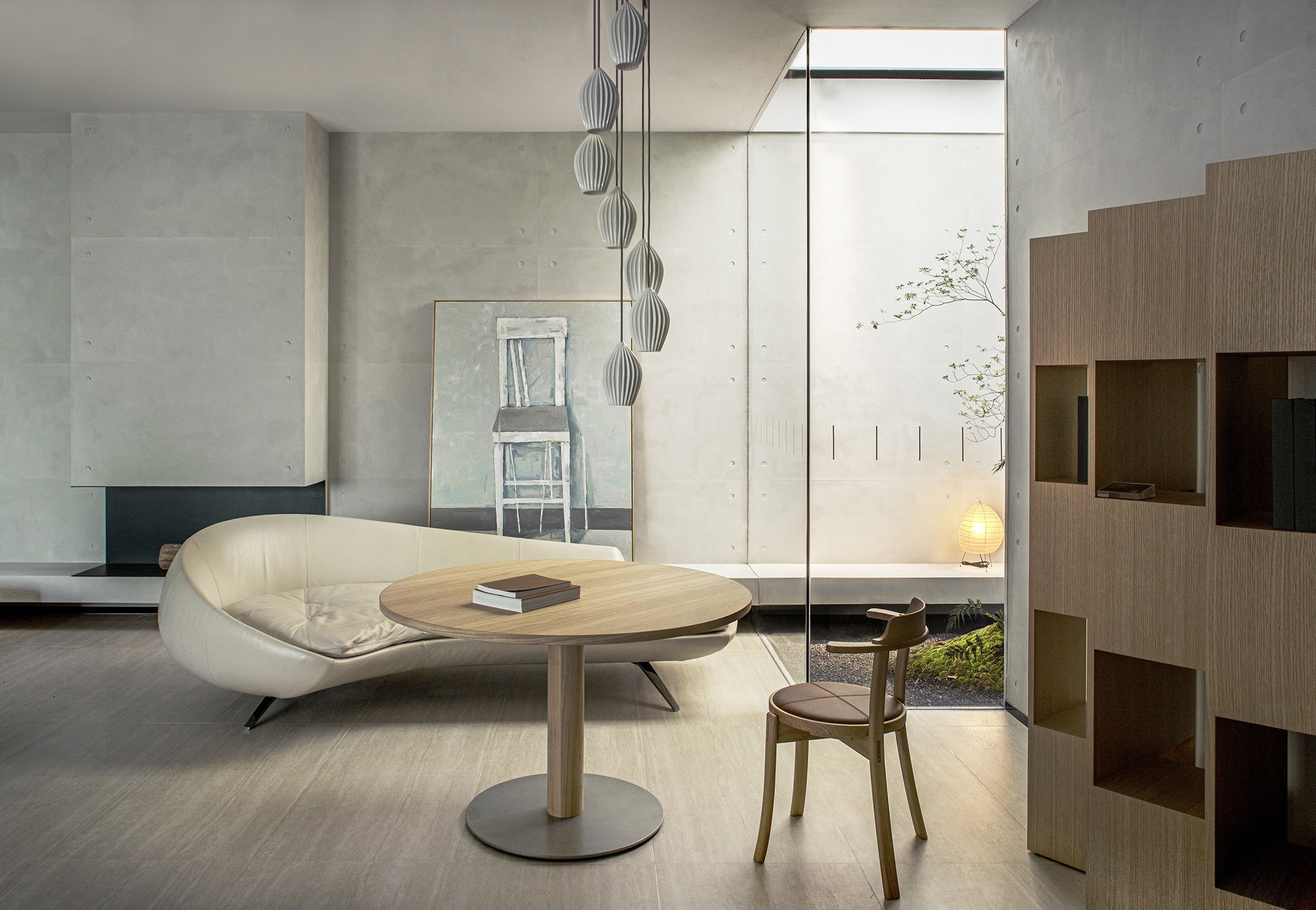 Located in Shanghai’s Xuhui West Coast, this project redefines the showroom typology as a transparent, immersive, and emotionally rich environment. Positioned at the intersection of the cultural artery and the fast-paced rhythm of the city, the four-story glass structure uses ultra-clear tempered glass and vertical aluminum grids to form a permeable light-screen façade. This approach dissolves the traditional enclosure of exhibition halls and invites natural light to flow in, turning the building itself into a luminous urban installation that connects inside and out. Inspired by the "Pujiang Migration," the design translates the gentle curves of river currents into vertical spatial narratives, from the “Tidal Living Room” on the ground floor to the “Cloud Sleeping Room” at the top, creating sixteen progressive home-themed ecological vignettes. Warm natural materials—such as cave stones with breathable textures, FSC-certified oak, and handcrafted elements—interact with sunlight and shadow to bring out the beauty of furniture through minimal intervention and soft visual language. The design dissolves the boundary between art and life, integrating curated furniture, contemporary artworks, greenery, and cultural symbolism into an open, circular circulation path that mimics the changing scenery of a traditional Chinese garden. Visitors are guided through a sequence of spaces including the central “Furniture Art Island,” a sculpture gallery, and an interactive corner, forming a flowing experiential rhythm of “exploration, immersion, and resonance.” Traditional motifs are abstracted into modern forms, such as window patterns and moon reflections, while color tones in neutral greys and beiges are accented with Klein blue and amber orange to provide visual warmth and emotional tension. Emphasizing “life is art,” the space becomes a dialogue between function and aesthetics, East and West, tradition and innovation. More than just a furniture display, the exhibition hall serves as a slow-living cultural field—an oasis in the fast-paced urban jungle—allowing people to reconnect with the senses, with nature, and with the poetics of everyday life.