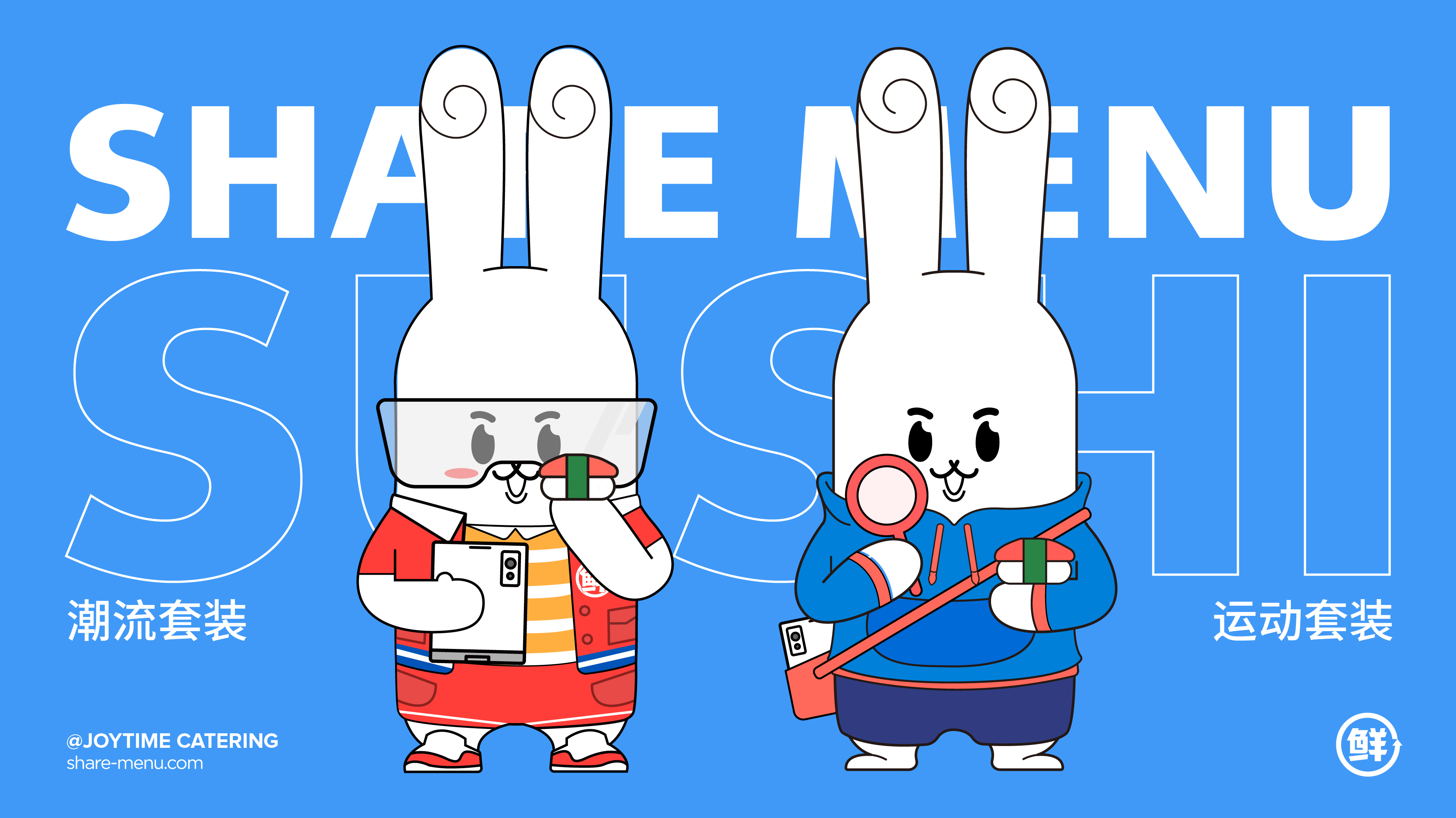 To connect with a younger generation seeking freshness, health, and style, the Share Menu Sushi brand reimagines its packaging with a playful, IP-driven visual system. At the heart of this redesign is a pair of cartoon rabbit characters—each representing a different sushi experience—crafted to embody the brand’s philosophy of “made fresh, made now.”