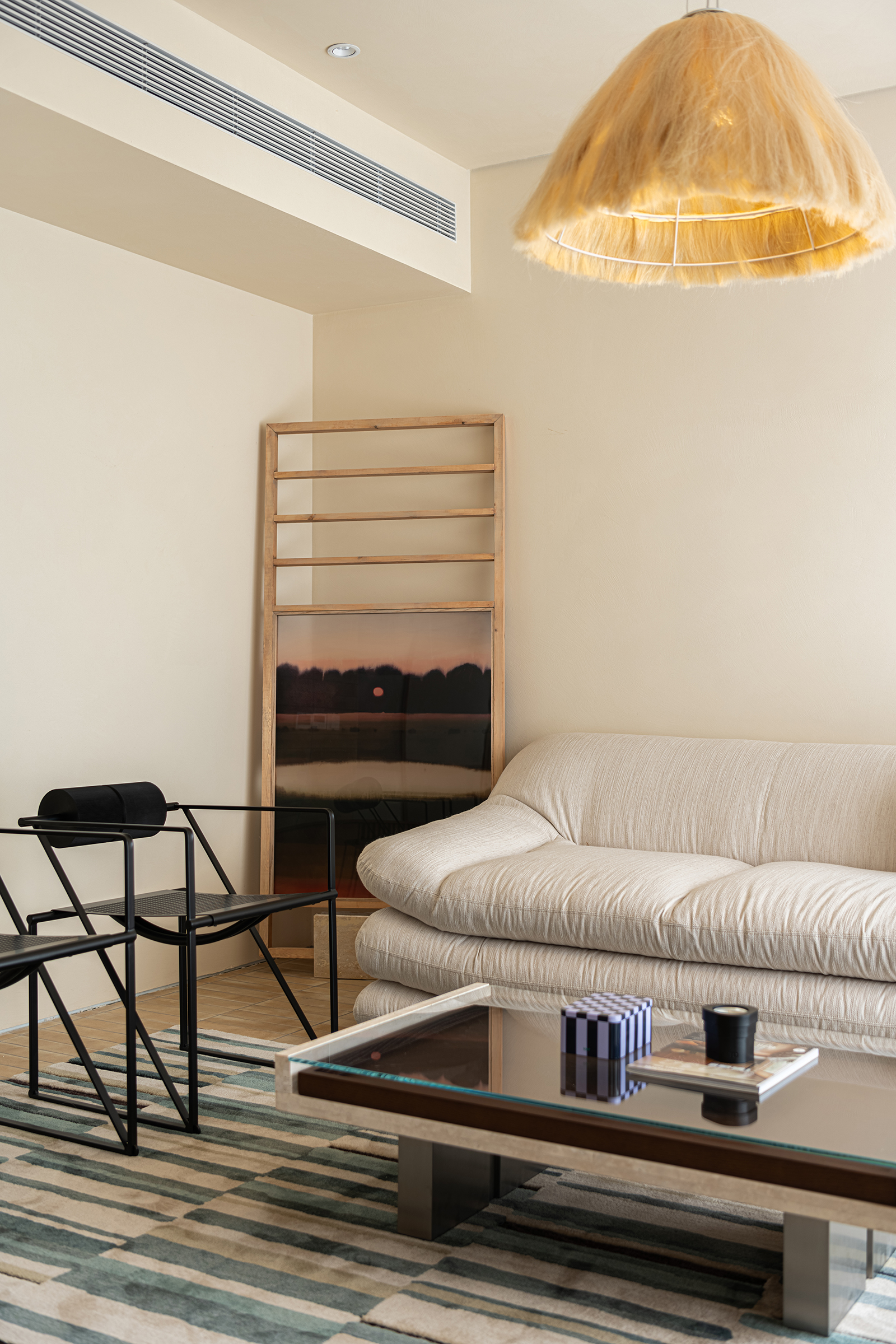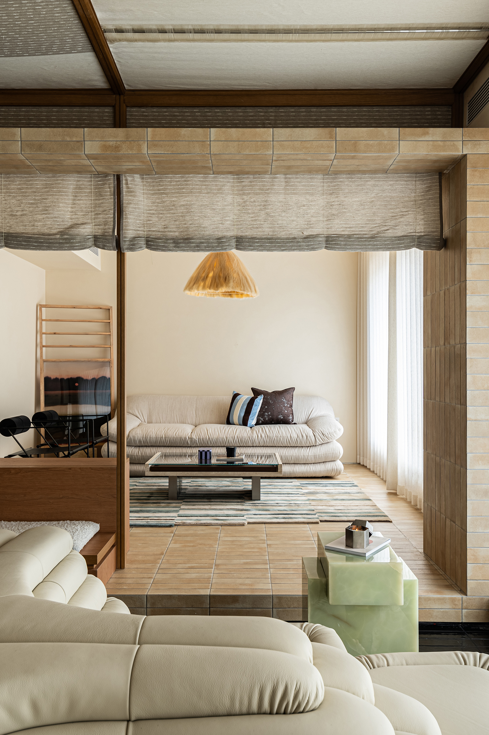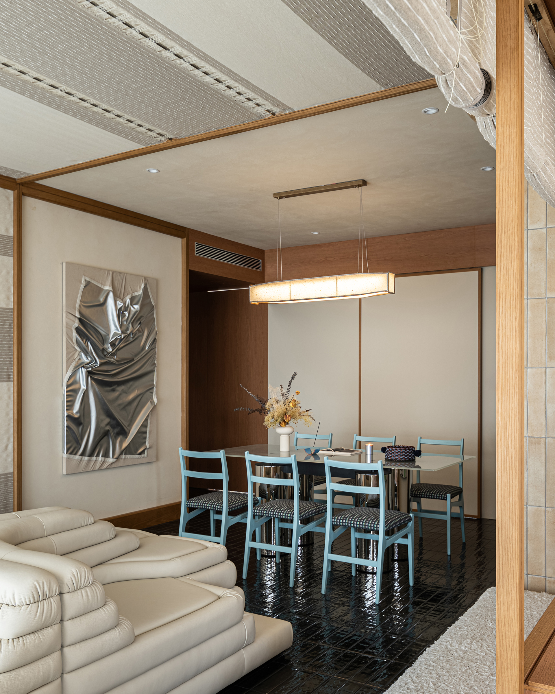 in its "multiple identities"—it serves as a holiday sanctuary where RoMaa and her family can escape the city and relax, an open and inclusive social space where friends can be comfortably hosted and small parties held, and, most importantly, a visual display and shooting venue for the women's shoe brand "Milooey Shoes". The design inspiration stems from exploring the community attributes of the space. Combined with the diverse lifestyle of the Aranya community, it was ultimately decided to create an integrated residence, commerce and social space to meet the project's multiple functional needs. Its innovative highlights lie in drawing inspiration from "Milooey Shoes" designs, seamlessly integrating brand elements into daily life scenarios: artistic installations are crafted from the leather materials used in the shoes, chandeliers and carpets are made from horsehair and special fabrics, and the coffee table in the reception room is transformed into a small display stand showcasing shoe design drafts and production processes, allowing elements of women's shoes to blend into Luoma's home in a life-like manner. The greatest difficulty during the design process was balancing the integrated attributes of "residence + commerce + social space"—it needed to embody the fashion sense of commercial design while maintaining the practicality and functionality of a residence. Additionally, the incorporation of commercial props in the space increased the difficulty of implementation, requiring precise control over the proportion and presentation of each element in the design.