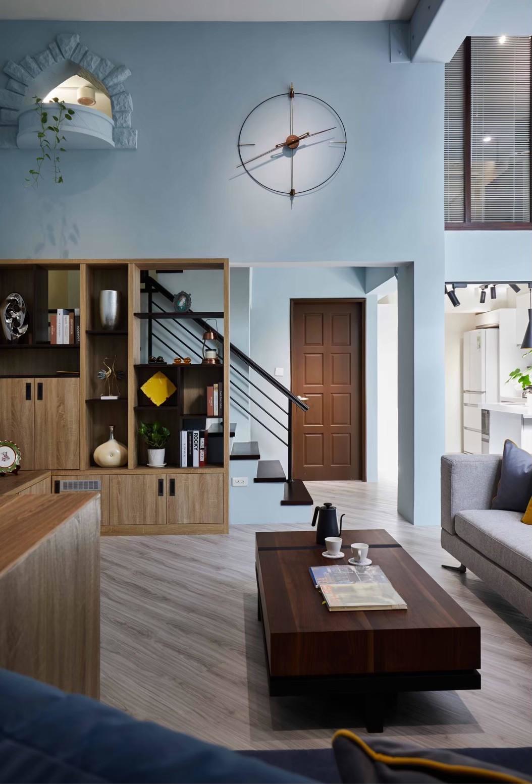 A double-height living area anchors the communal space, seamlessly linking an open-plan kitchen and bar. An exposed ceiling stretches the vertical volume, enhancing the sense of openness while encouraging effortless movement throughout the space—fostering interaction among family members without imposing rigid boundaries.
