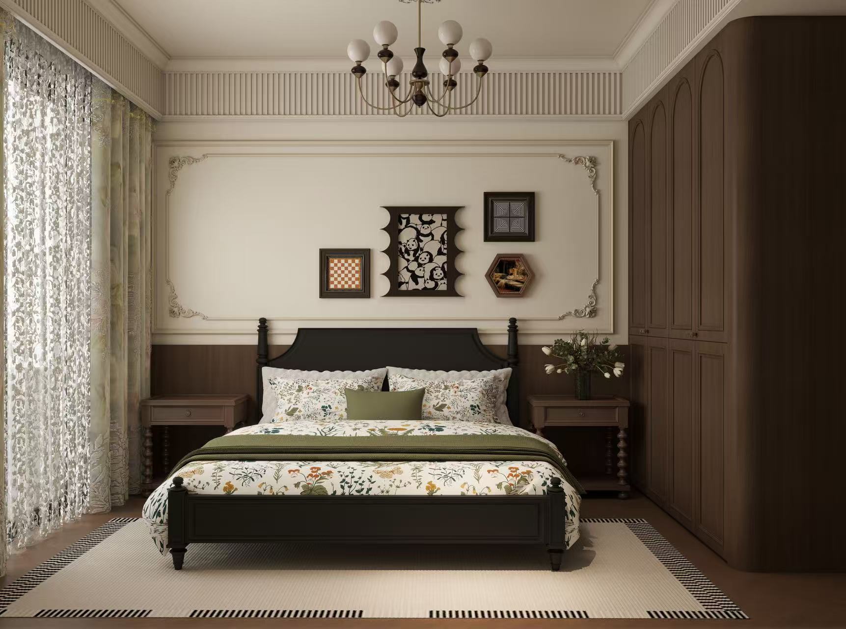 In terms of fabrics and textiles, the pairing of wool carpets and solid wood furniture further elevates the comfort of the residence.