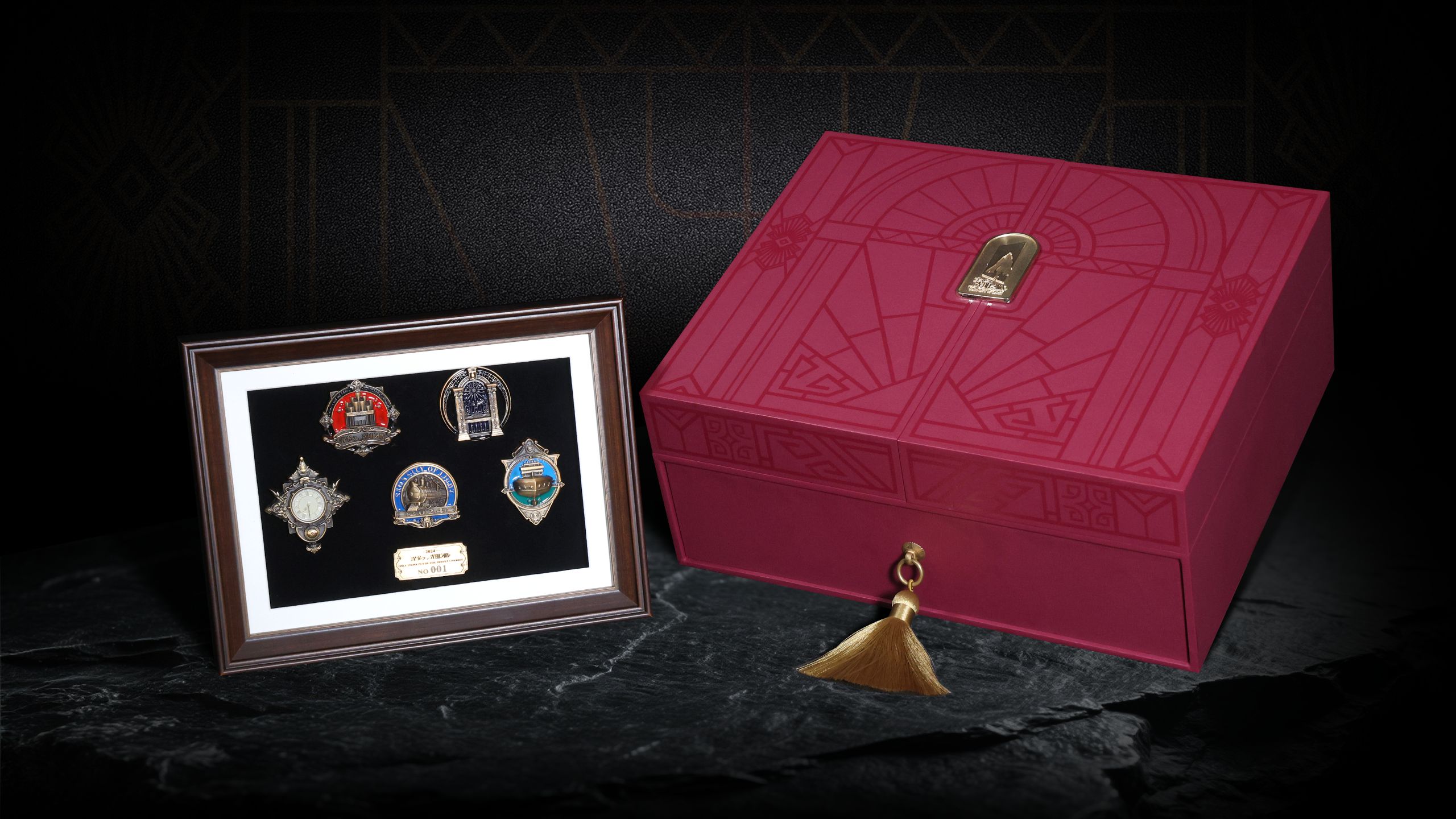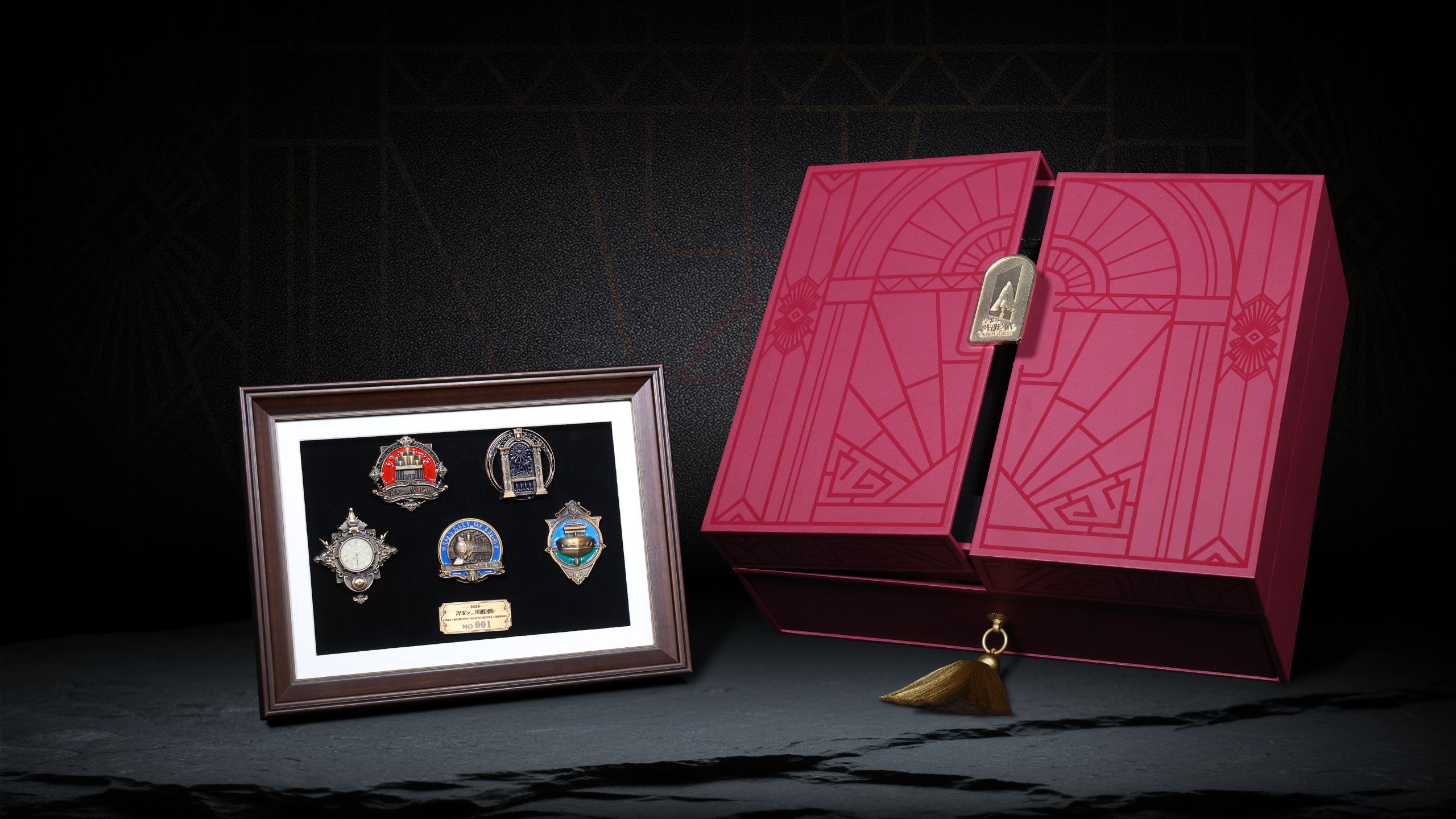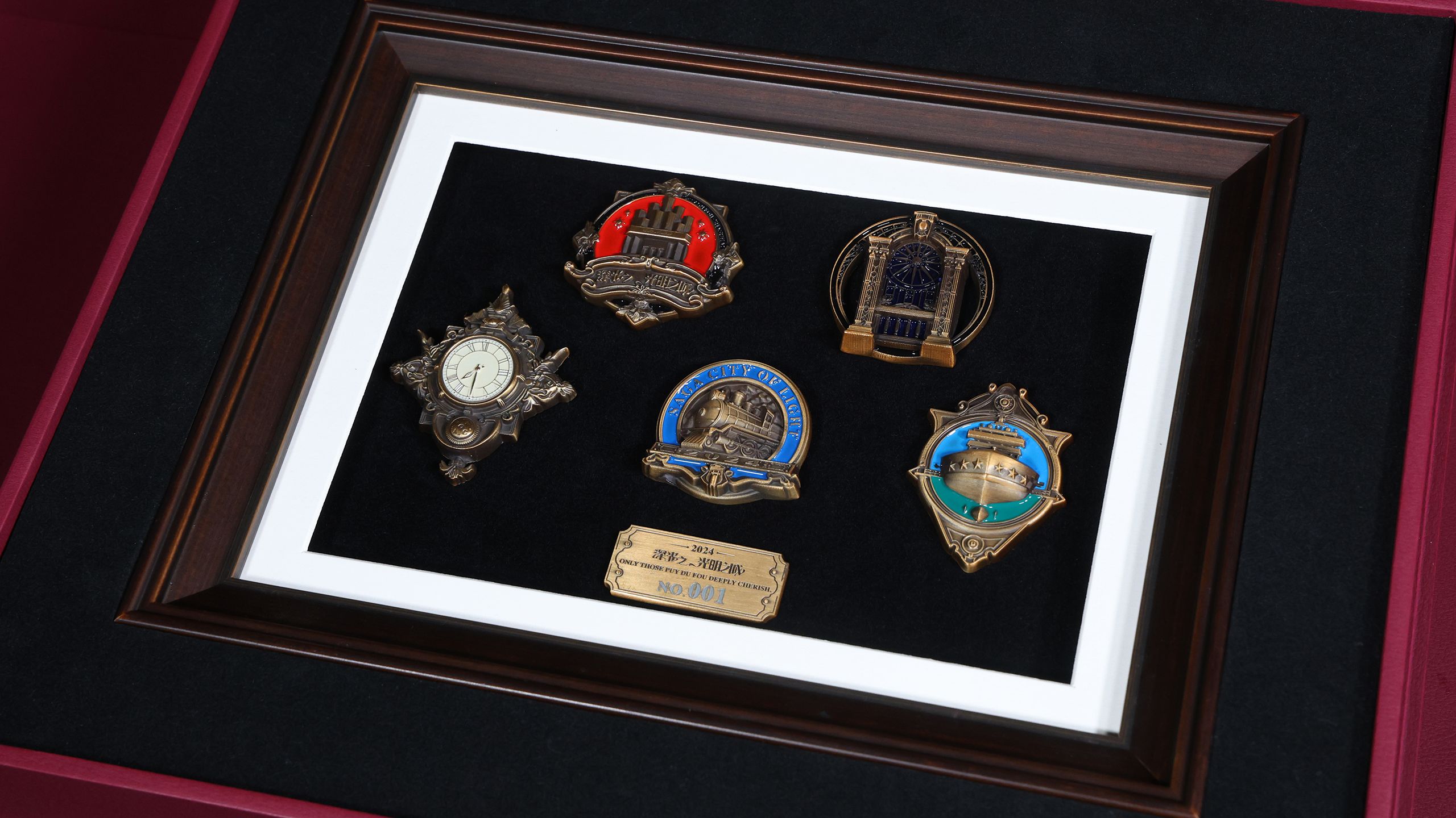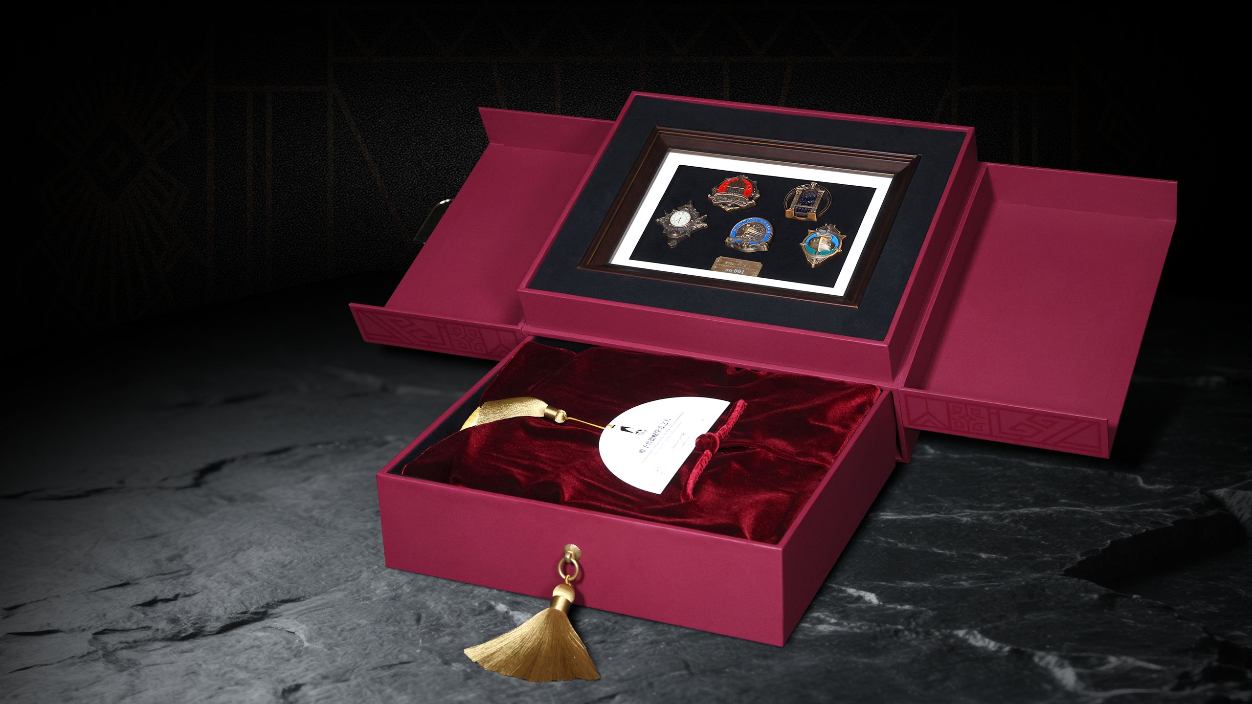 Drawing inspiration from Shikumen in Shanghai, the gift box pioneers a ‘double-door’ form. The act of opening the doors gives a sense of ceremony, and makes the guest feel as if getting into character, delivering an immersive “open-the-box-and-enter-the-drama” experience. Its multi-layer nested structure ensures a more engaging journey of exploration: the upper layer features a wooden frame displaying five exquisite badges, each corresponding to a VIP-exclusive story; the concealed drawer of the lower layer contains a red velvet cloak—a 1:1 replica of the theatrical costume worn by performers—with specially designed collar fasteners to secure any chosen badge. When the guest dons the cloak and affixes a metal badge to the collar, he/she will instantly become an ‘anonymous supporter,” completing a magnificent metamorphosis from spectator to participant.