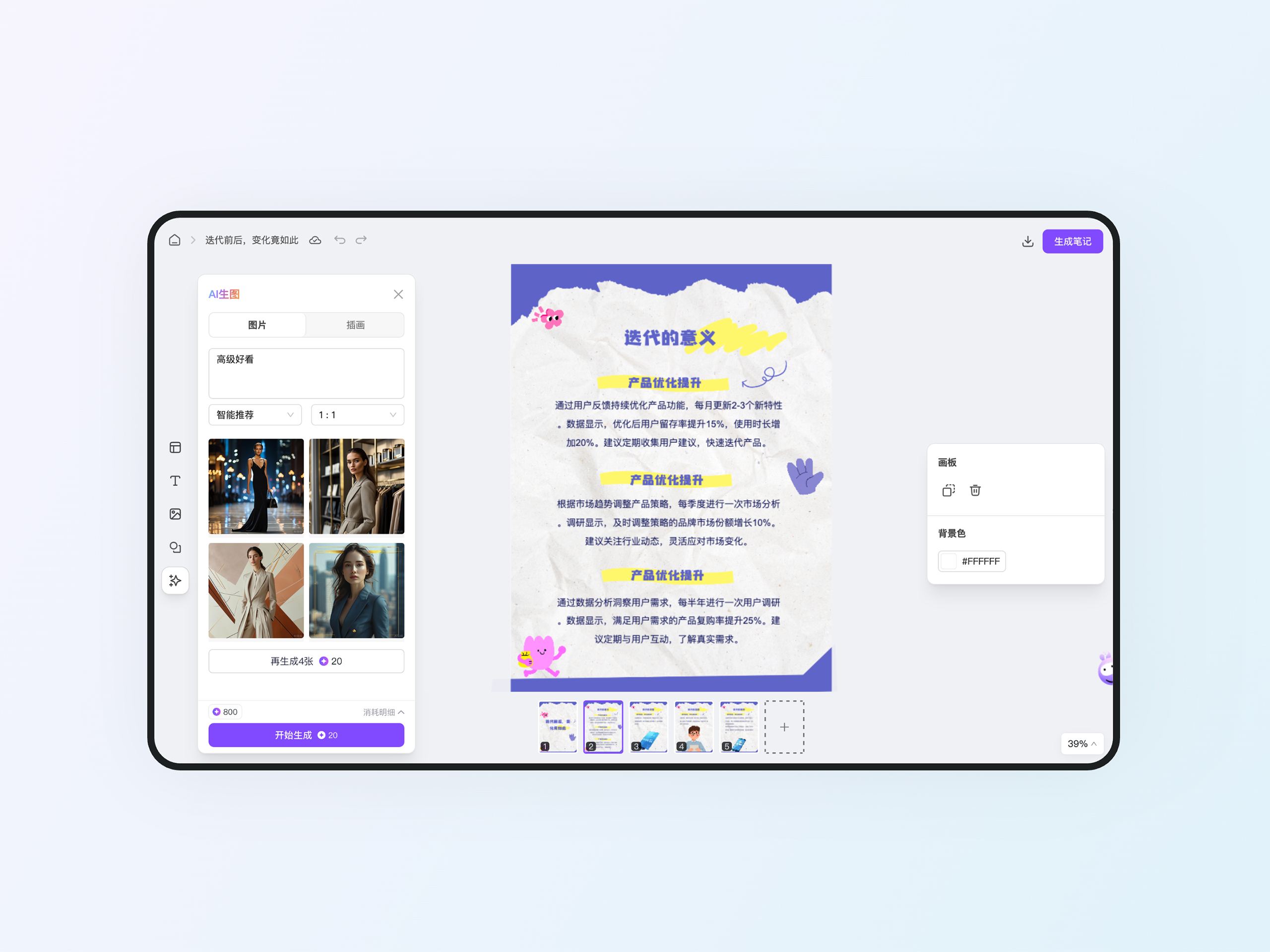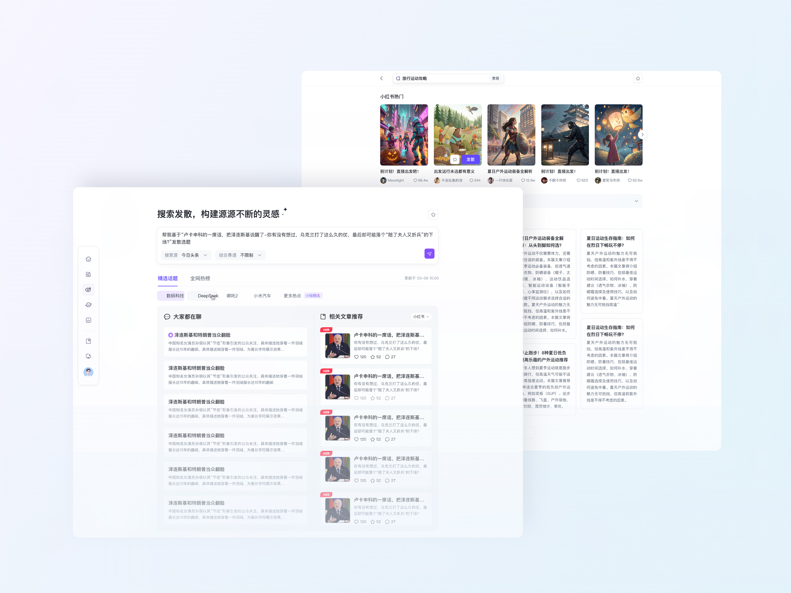 The platform adopts an intuitive modular design, with the creation zone, operation data zone, and hot topic selection zone displayed in parallel for one-clicking switching. Following the logical path of "creation-optimization-publication", it streamlines the operation process. The right-side toolbar of the platform features magnetic dynamic effects—auto-expanding when the cursor hovers over it—to keep the interface clean while enhancing interaction efficiency. In terms of color, the platform applies purple as the main hue, along with concise interface elements and agile dynamic feedback (such as hover effects and gradient loading), creating a visual atmosphere that balances a sense of technology and professionalism while reducing the learning cost for users.