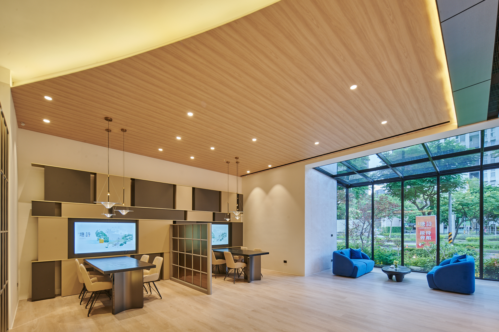Materials include rammed earth, mineral panels, cast-in-place concrete, and glass, all in a soft beige and grey palette to reflect the surrounding natural terrain. The high-ceilinged space integrates front-to-back ventilation and a slatted rear entrance to enhance comfort and sustainability. Despite the expansive rooftop, the design maintains a sense of lightness. Whether in sun or rain, day or night, the building responds poetically to Qingpu’s unique cultural and environmental rhythm.