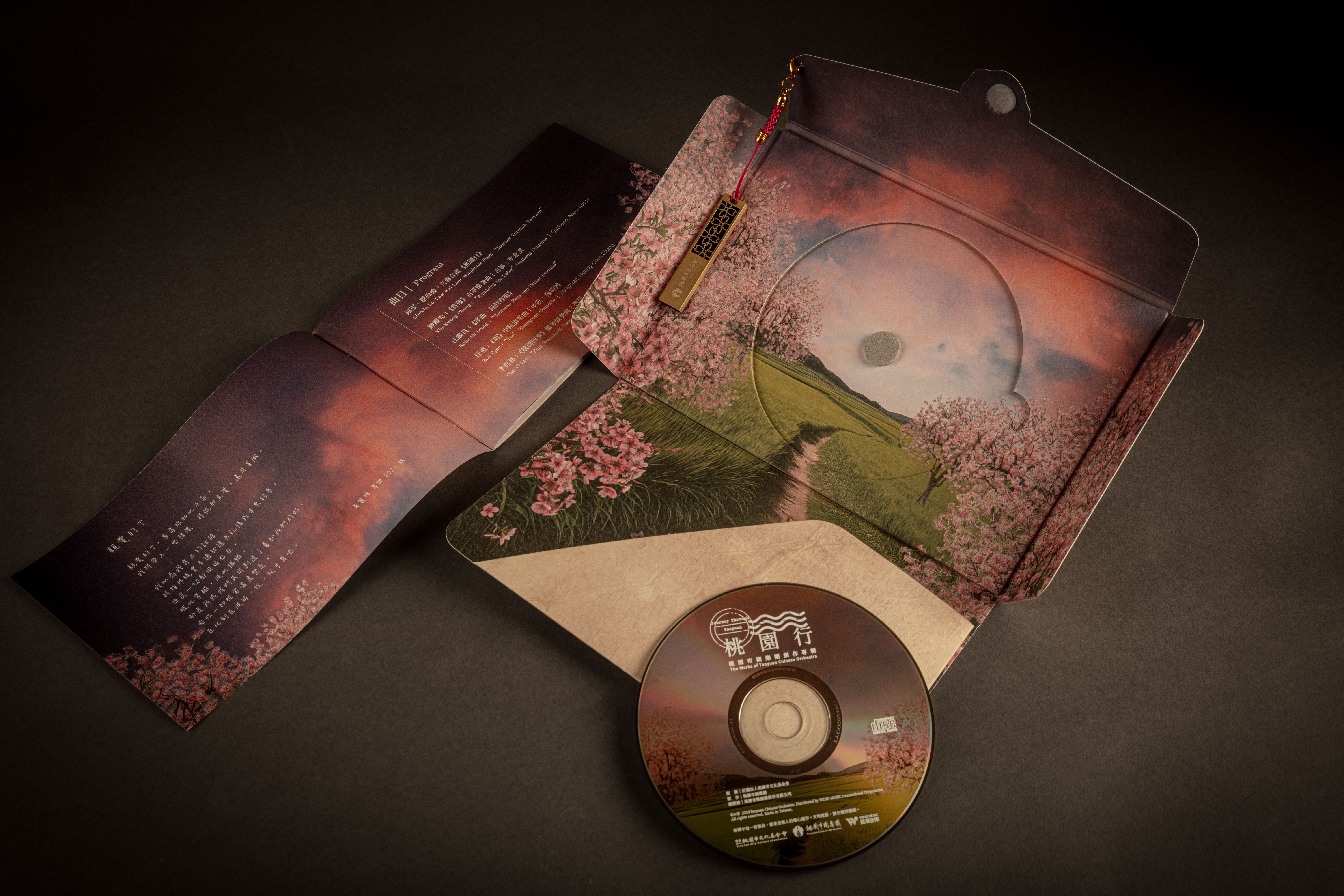 Opening the CD package is like opening a letter or unwrapping a delightful gift. Inside is a beautiful image of Taoyuan in full peach blossom bloom, reminiscent of the classical Chinese tale Peach Blossom Spring by Tao Yuanming. Just as the fisherman in the story stumbles upon a hidden utopia, listeners are invited to journey through Taoyuan’s landscapes—traveling through music, discovering beauty along the way.