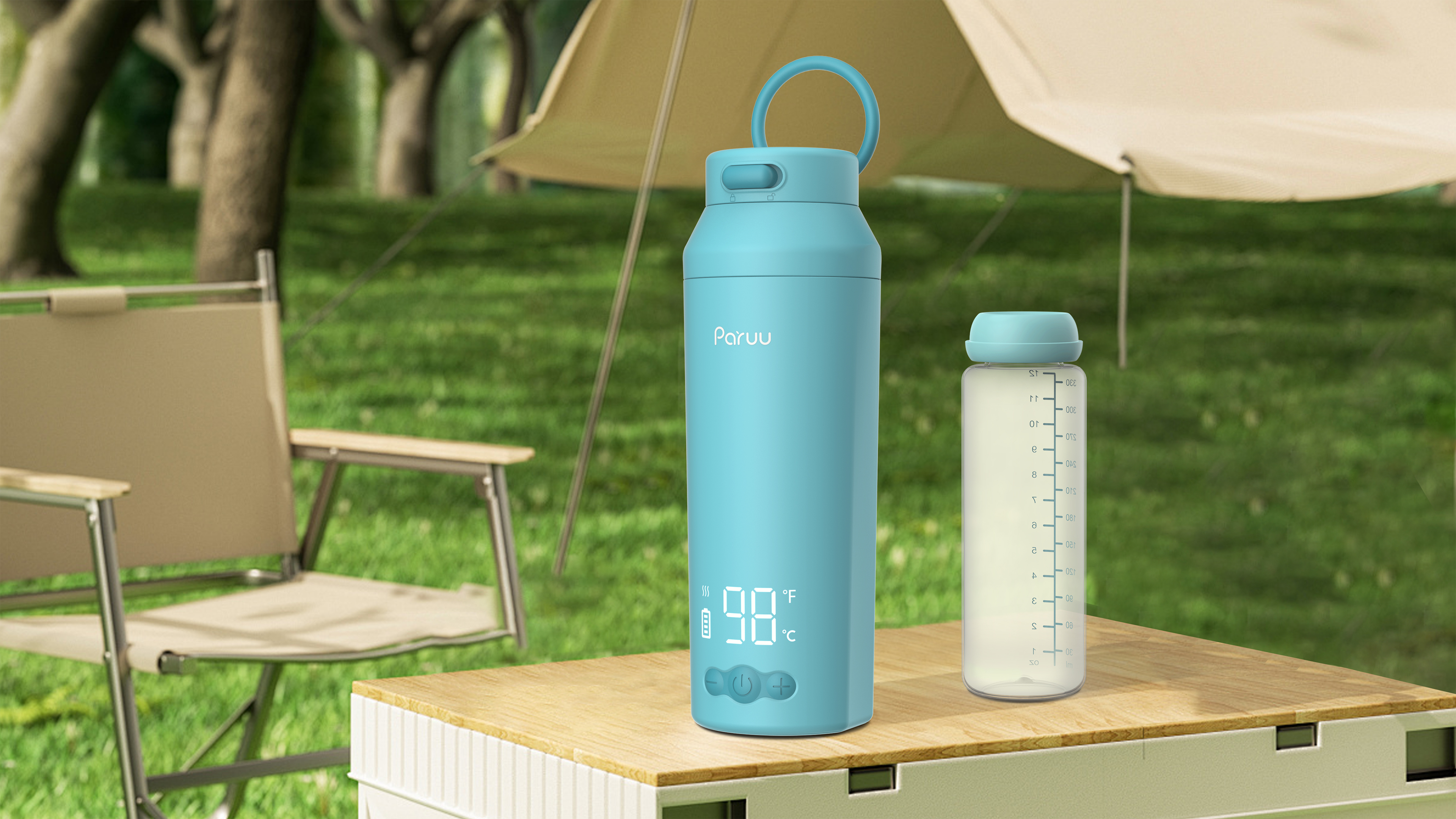 Paruu Portable Bottle Warmer MW100 showcases comprehensive innovation in both appearance and functionality. The bottle features a distinctive inverted triangle shape—wider at the top and narrower at the bottom—setting it apart from the typical cylindrical designs on the market. This unique form not only enhances visual recognition but also aligns with ergonomic principles, making it easier to hold with one hand. The dual-sided beveled surface improves grip, ensuring a secure hold even when hands are wet, greatly enhancing safety and comfort during use.