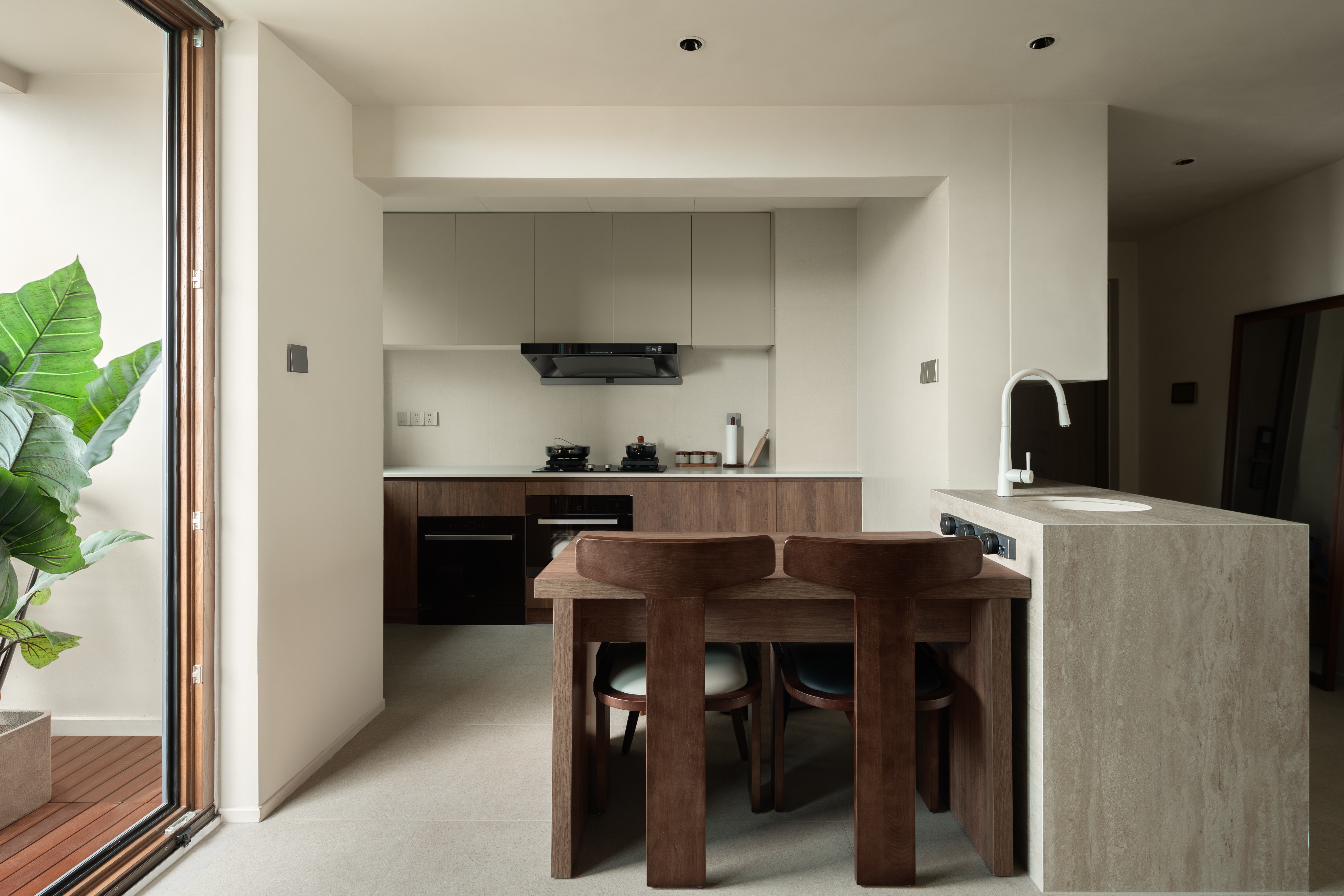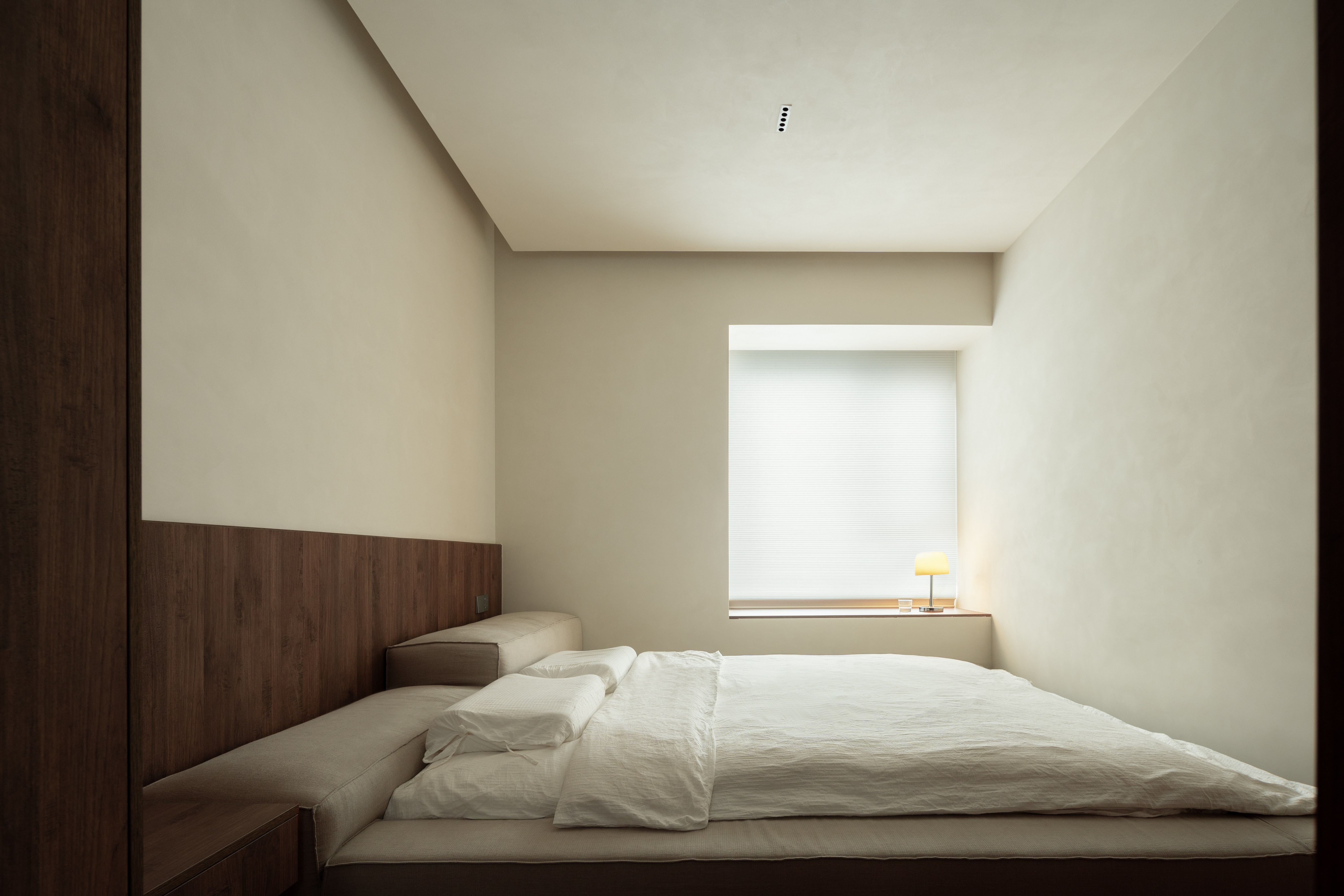 The owner is a solo-living post-90s variety show video editor who is passionate about films and reading, with a schedule characterized by late nights out and late mornings in. She desired a home entirely tailored to her personal life, with only occasional short stays for family members and virtually no entertaining of guests. Accordingly, the design retained only two bedrooms and boldly removed most of the load-bearing wall between the original master bedroom and living room. This incorporated the master bedroom's large window into the living room, bringing in abundant natural light while vertically extending the activity space of the originally narrow living area.