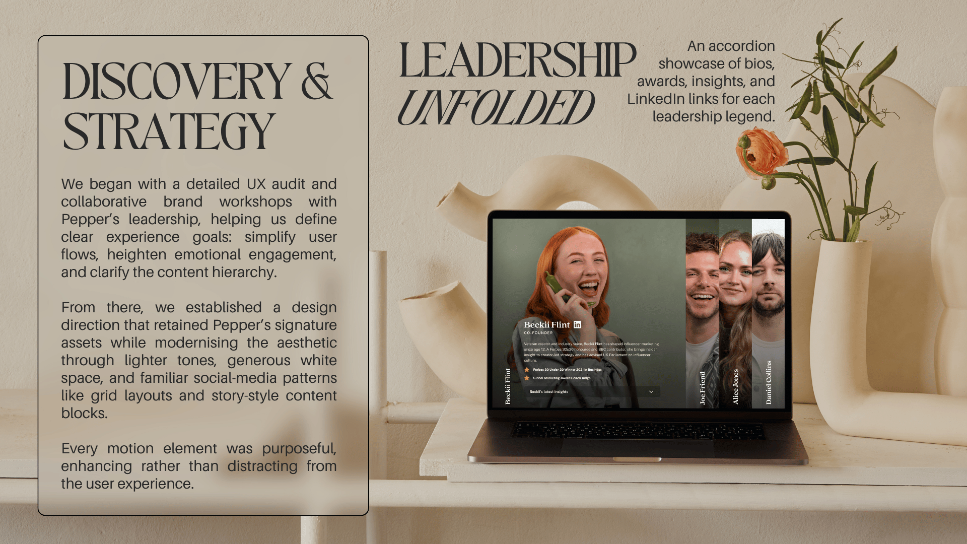 Since launch, the site has elevated Pepper’s positioning as a global leader in influencer marketing, earning praise from clients, creators, and industry leaders for its clarity, emotional resonance, and technical strength. The collaboration achieved not only a redesign, but a statement of intent: a sophisticated, high-performing platform that captures the heart of a social-first agency and sets a new benchmark for digital storytelling.