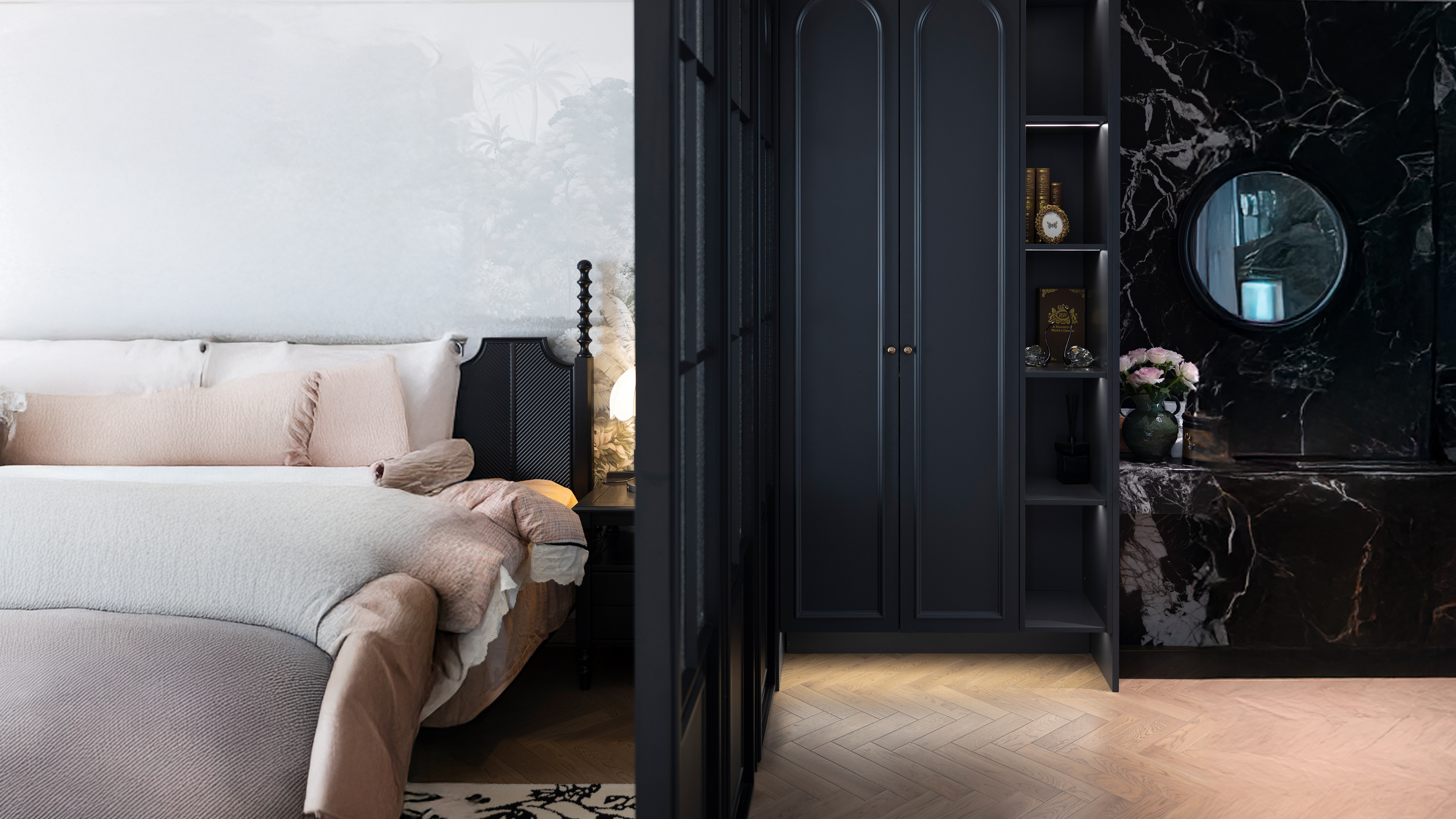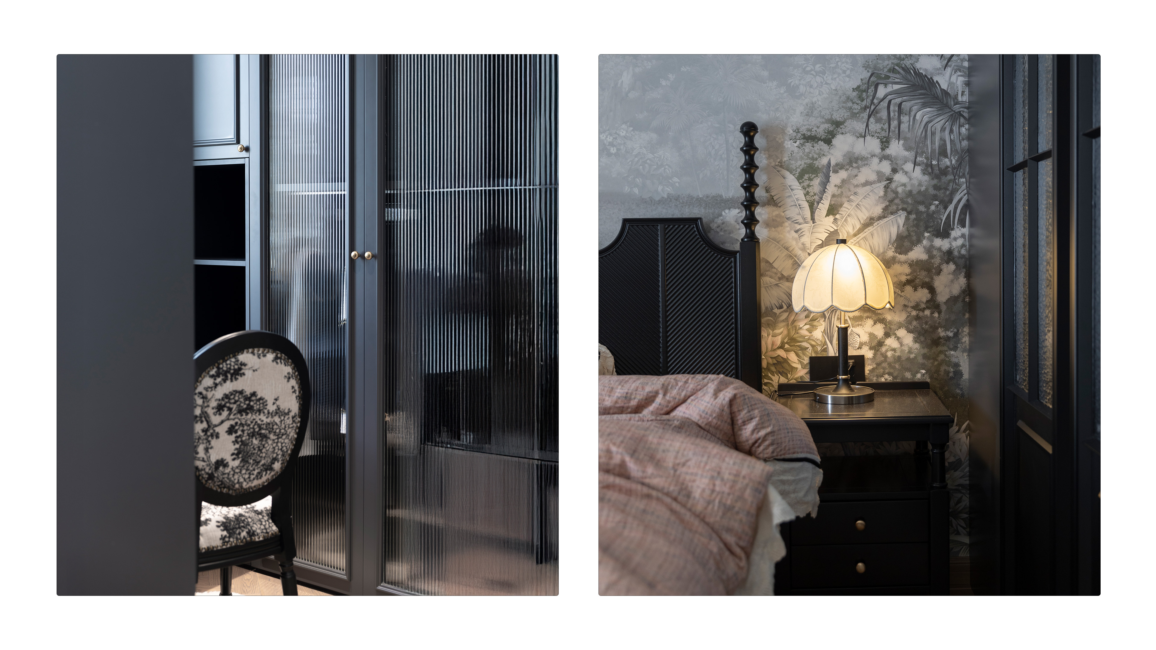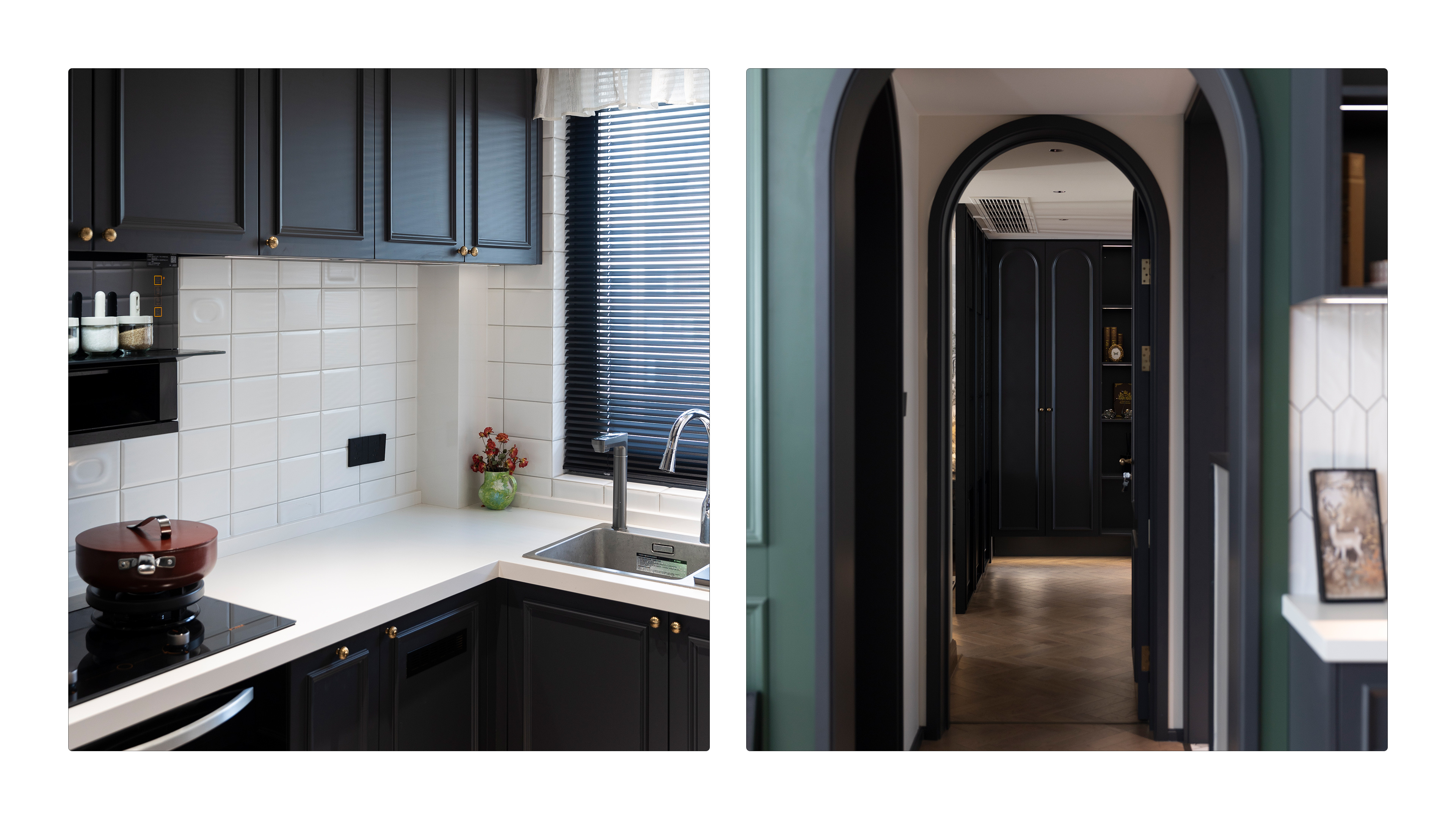 Our vision was for a space that is more than a mere backdrop, but a place that resonates emotionally with its inhabitants. The design rejects static style labels, instead establishing the "arch" as a core visual anchor that unifies the spatial flow, material palette, and functional zones. Inspiration is drawn from a fusion of European classical elegance, the relaxed ambiance of Southeast Asian colonial style, and the restraint of modernism. Every element, from the archways to the lighting and furniture, narrates a vignette from different cultures and eras. A base palette of dark green, black, and wood tones grounds the space, lending each area a distinct yet cohesive emotional mood. The arch, as the central design motif, appears not only in doorways but is also artfully integrated into the cabinet doors. Its soft curves disrupt the conventional rectilinear layout, imbuing the space with a sense of fluidity and ceremony. Expansive dark green wall paneling creates a serene atmosphere, forming a deep contrast with the black leather and lacquered furniture. A diverse material system—including rattan weaving, a Kilim-style rug, fluted glass, and brass accents—is introduced to enrich the tactile and visual layers, allowing for a natural fusion of the raw and the refined, the classic and the contemporary. Beyond aesthetic expression, we placed a strong emphasis on user experience. Storage solutions, such as the rattan cabinetry and full-height wardrobes, are seamlessly integrated into walls and partitions, addressing practical needs without compromising the visual integrity. The kitchen features an L-shaped workflow and a split-level countertop design to enhance efficiency. A multi-layered lighting system—comprising ambient, task, and accent lighting—caters to various scenarios, providing precise support for everything from kitchen prep to bedside reading, thus achieving a perfect balance between lifestyle and design. This project emphasizes 'style deconstruction' over simple 'mix-and-match.' The designer acts as a curator, thoughtfully placing elements of Art Deco geometry, Chinese symmetrical principles, natural Southeast Asian materials, and modern minimalist composition within the same space.