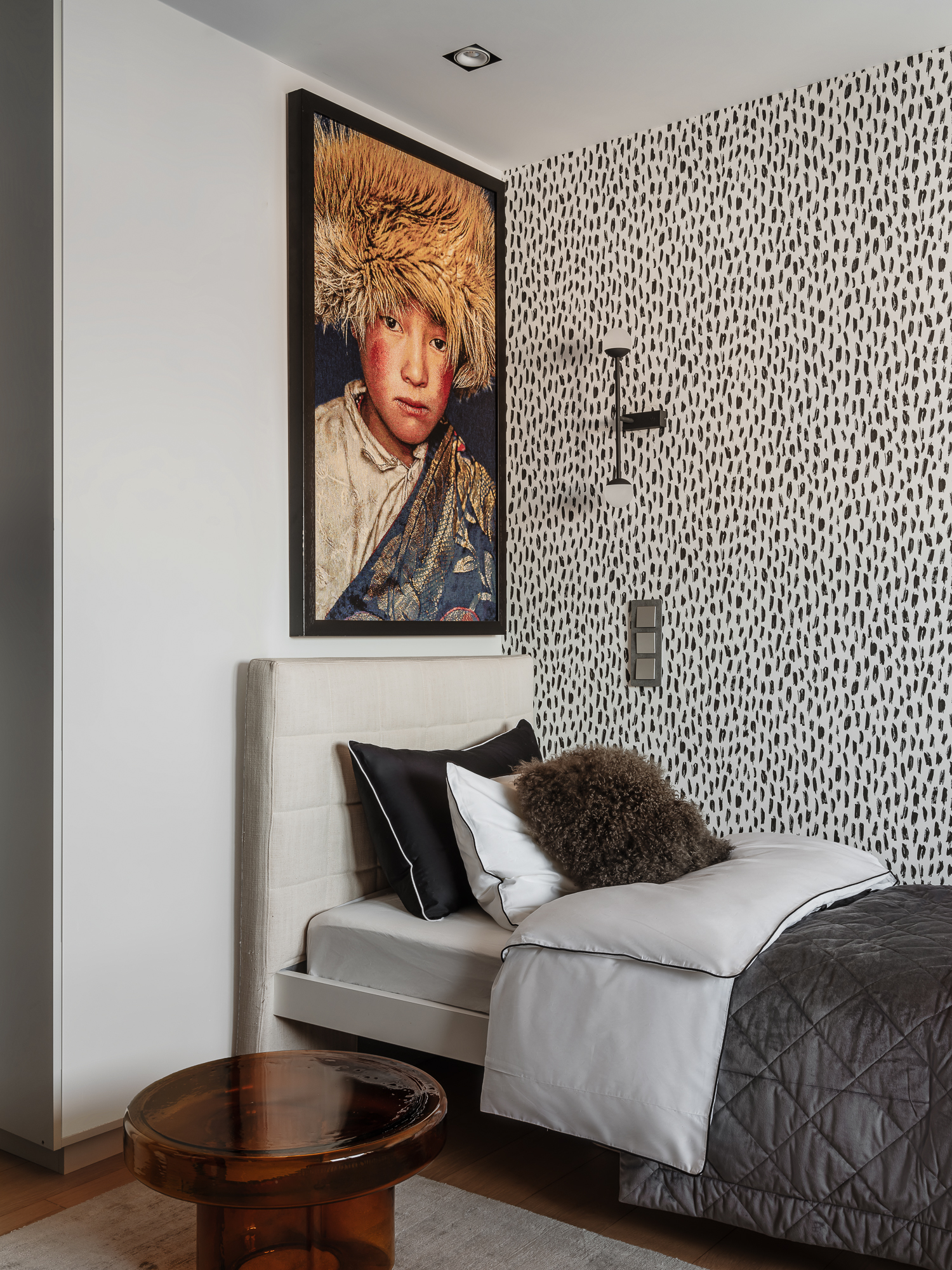A defining feature of the residence is the thoughtful integration of contemporary Austrian art, including original works by Christian Peschke. His bold, expressive style contrasts and complements the linear calm of the architecture — establishing a subtle yet dynamic dialogue between art and space.