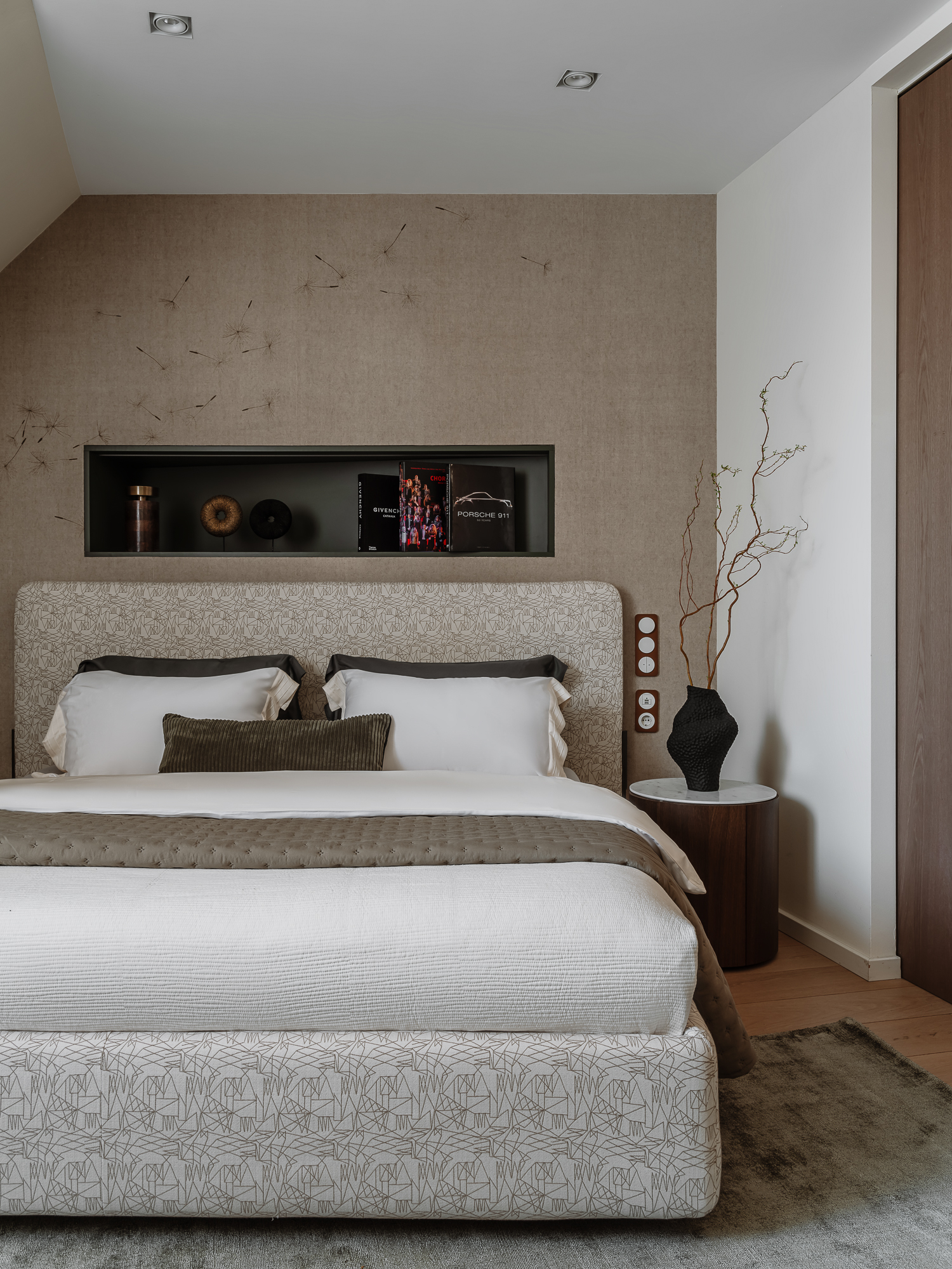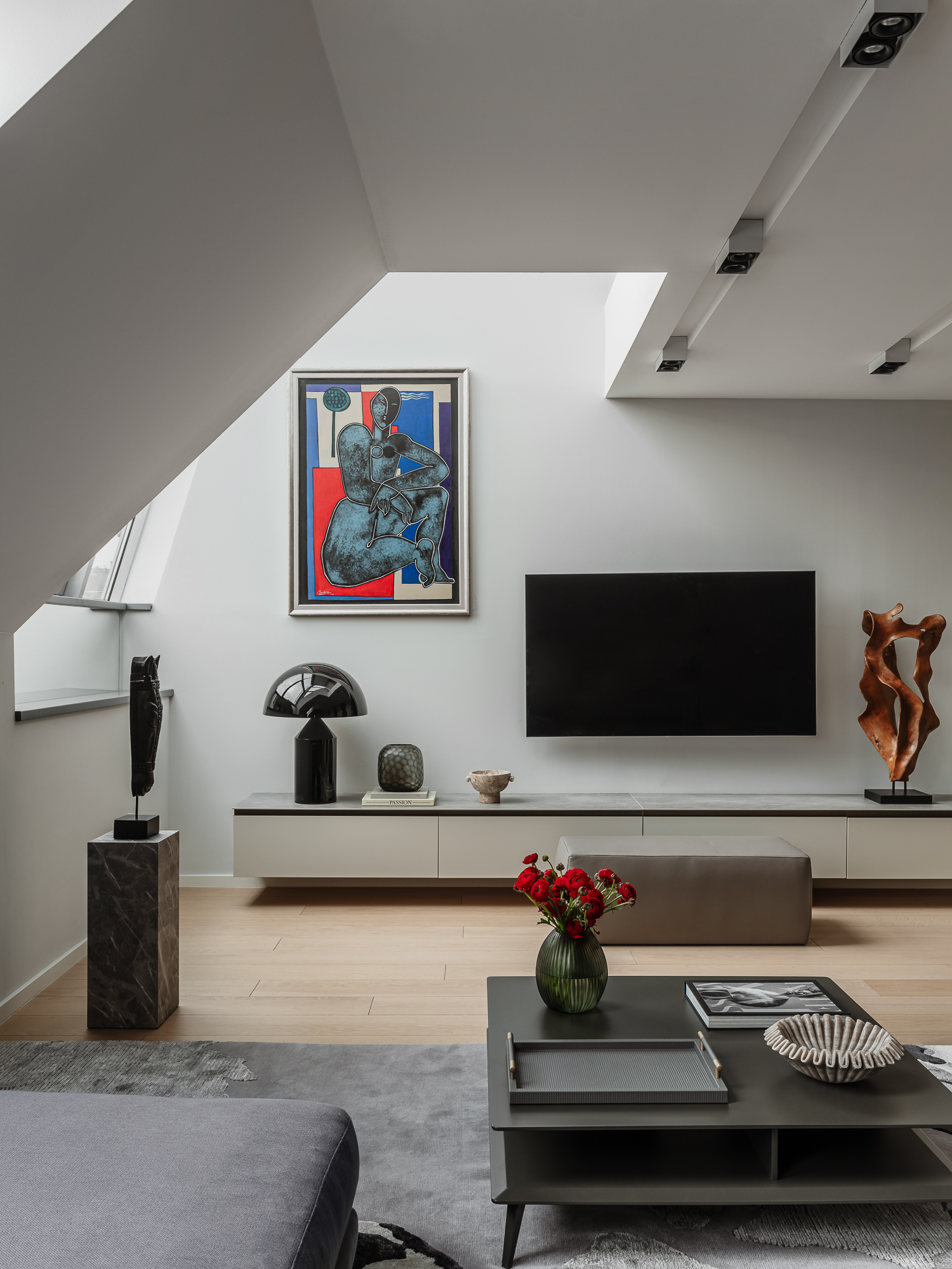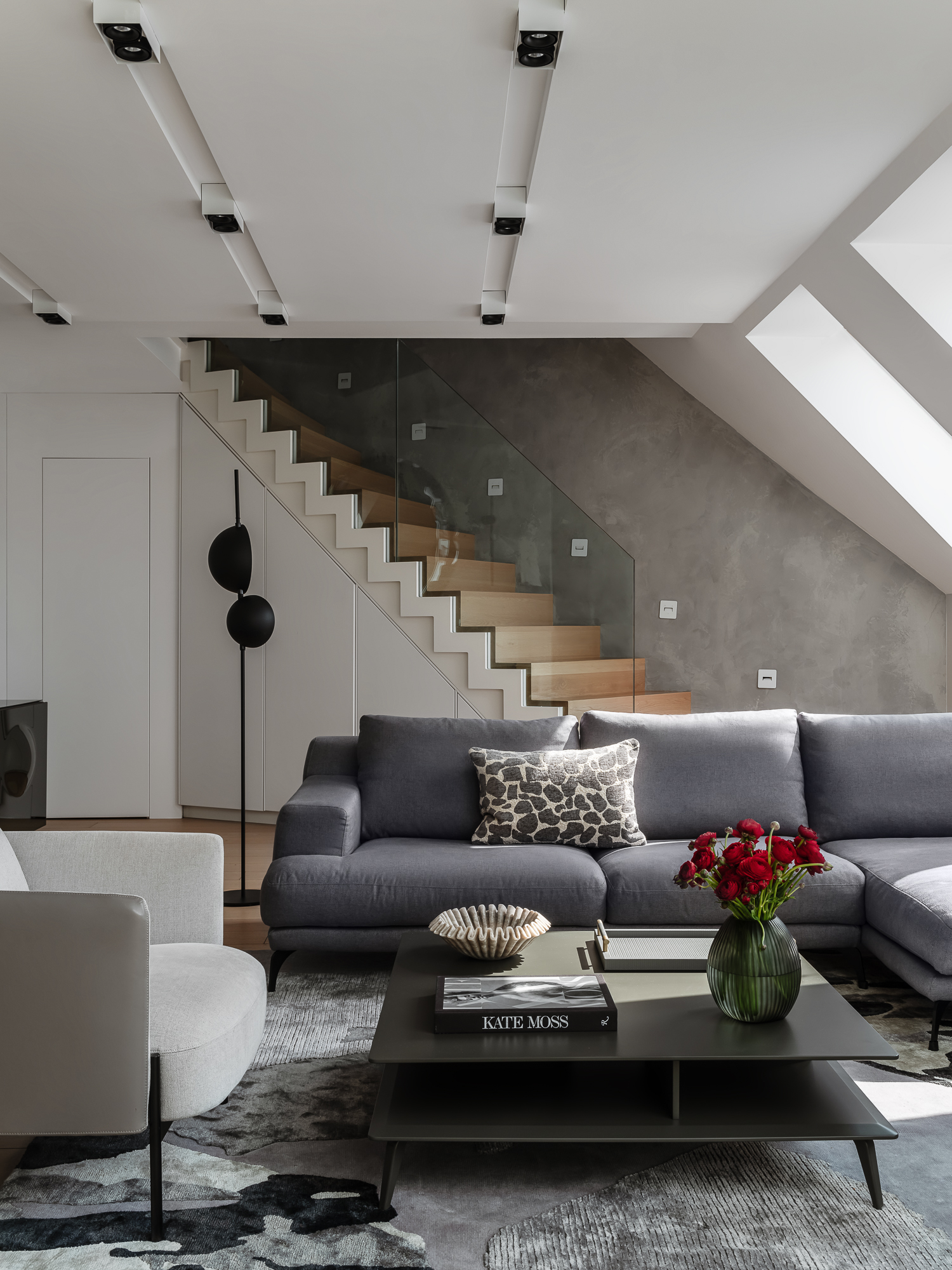 Nestled in Vienna’s prestigious 19th district, this two-level penthouse offers a sophisticated retreat above the city. A private rooftop terrace reveals sweeping panoramic views, while the interior reflects a harmonious blend of minimalist precision and understated warmth. Muted grey tones, architectural clarity, and a refined material palette define the atmosphere throughout.