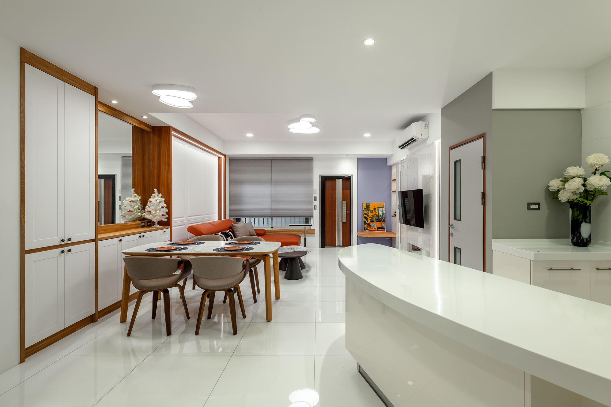 This project involves the renovation of an old residential building in Tainan City. The site originally consisted of two connected buildings, with the target property located on the fourth and fifth floors of the bridge connecting the two structures, forming an independent residential unit. Addressing challenges such as insufficient natural light, fragmented floor plans, and the need to preserve existing finishes, the design team adhered to the principle of “revitalizing the old.” They team divided the space according to functional requirements by floor level and incorporated natural materials to align with the homeowners' preference for solid wood. The result is a residence that harmoniously blends emotional continuity with renewed vitality, emerging as a timeless pearl in the heart of the city.