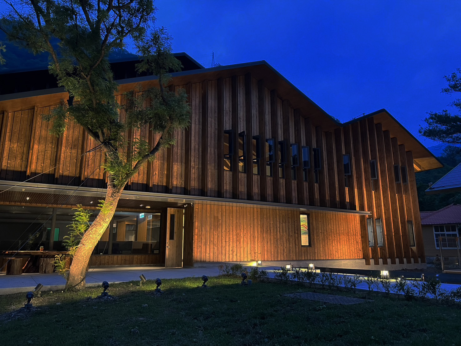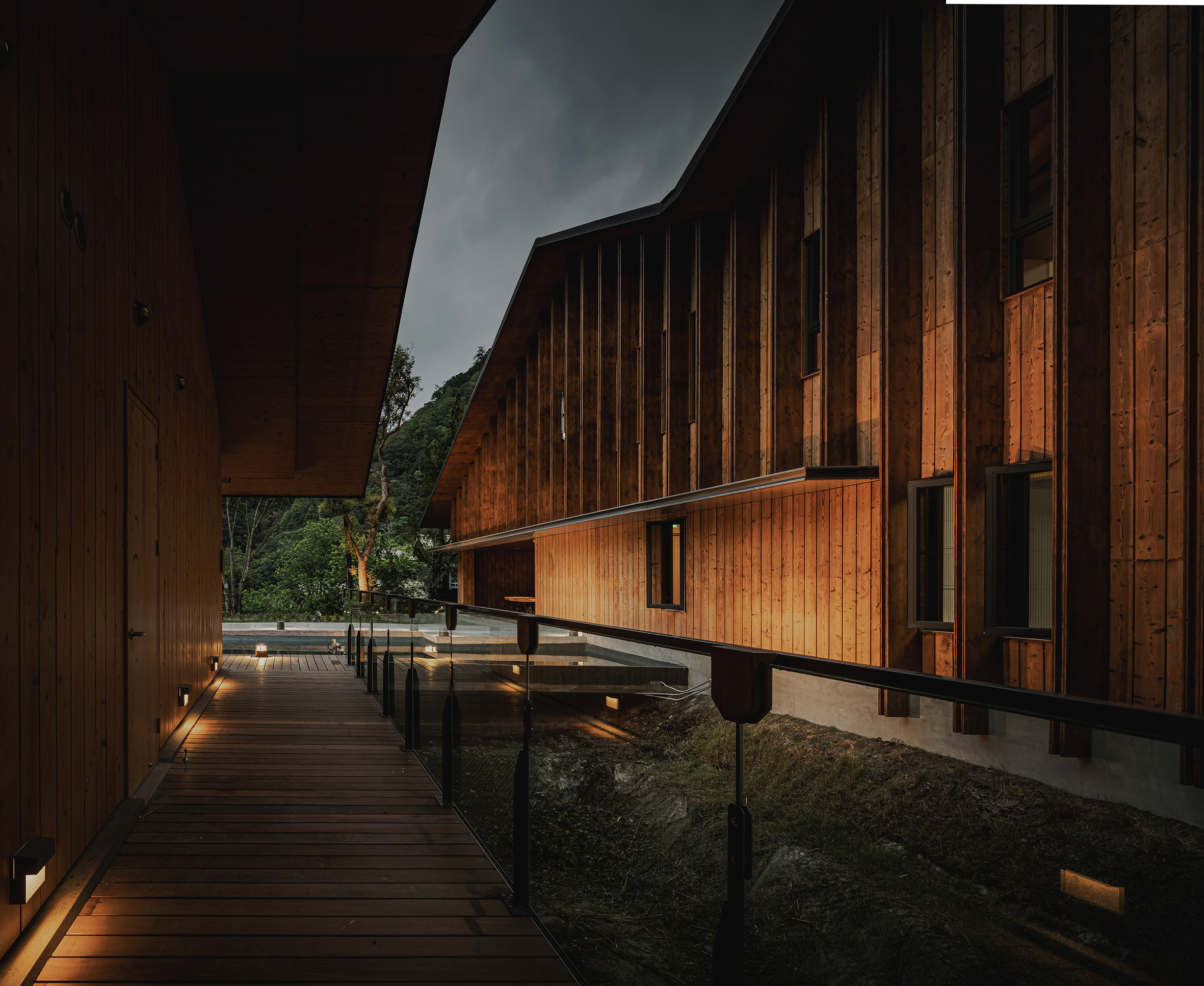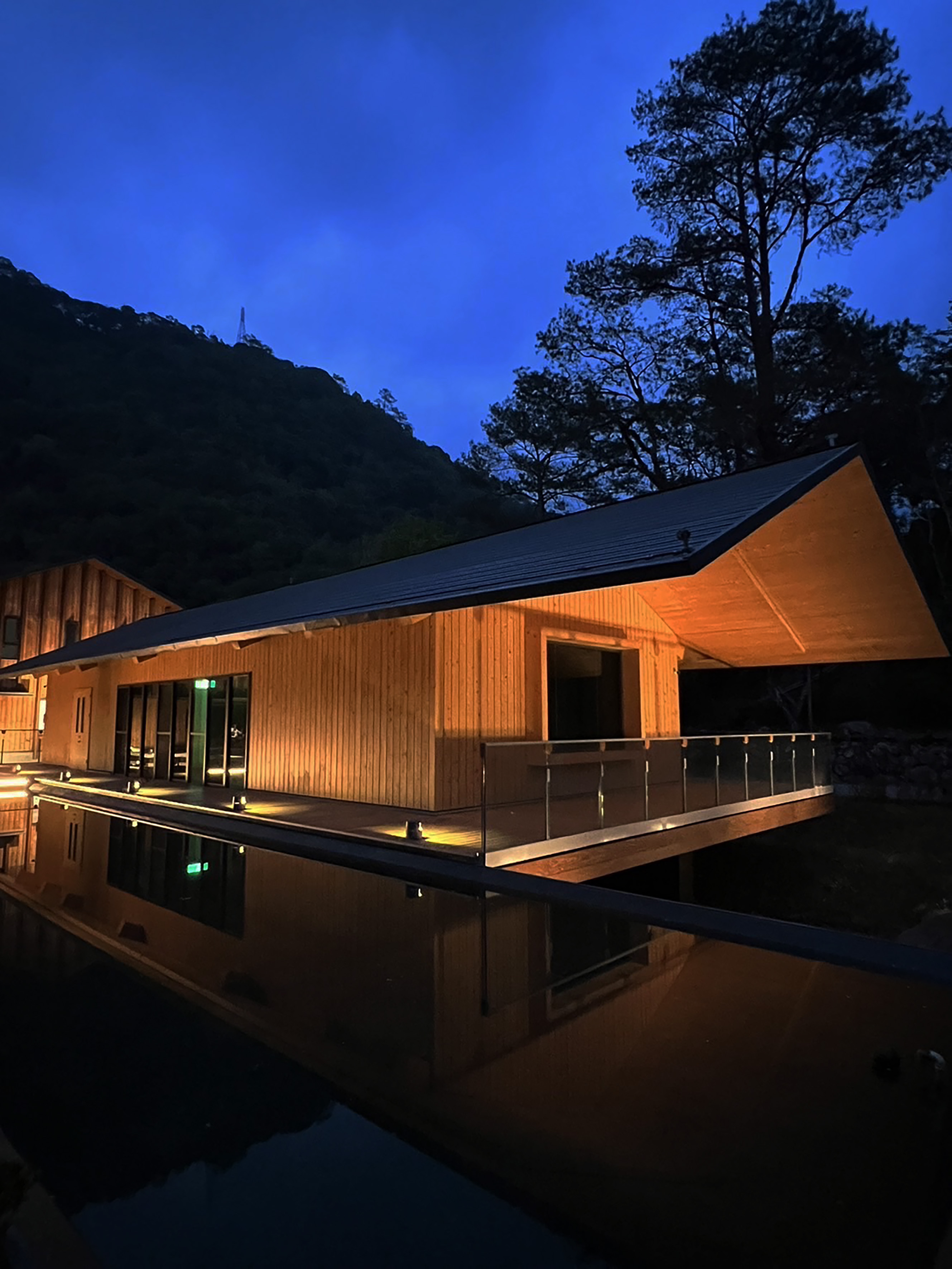 Rather than relying on dramatic lighting effects, the design leverages the natural textures of timber facades, water surfaces, and vegetation to softly reflect and diffuse light. The resulting atmosphere enriches the nocturnal identity of the campus, instilling both safety and comfort. Ultimately, the lighting design transforms a functional workplace into a welcoming mountain retreat, where light becomes not only a tool for visibility but also a medium of connection between people, architecture, and nature.