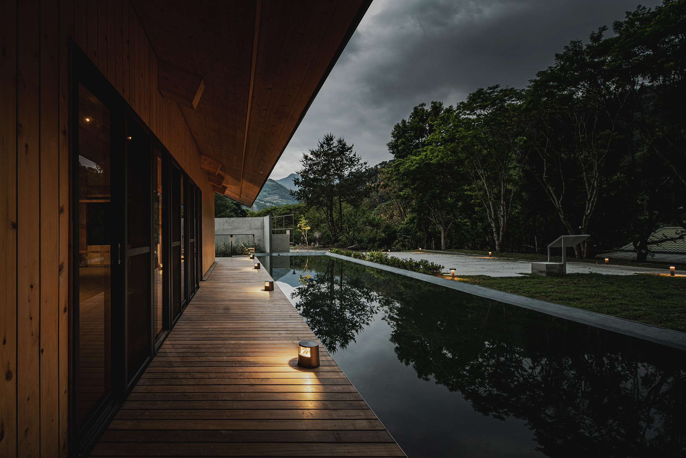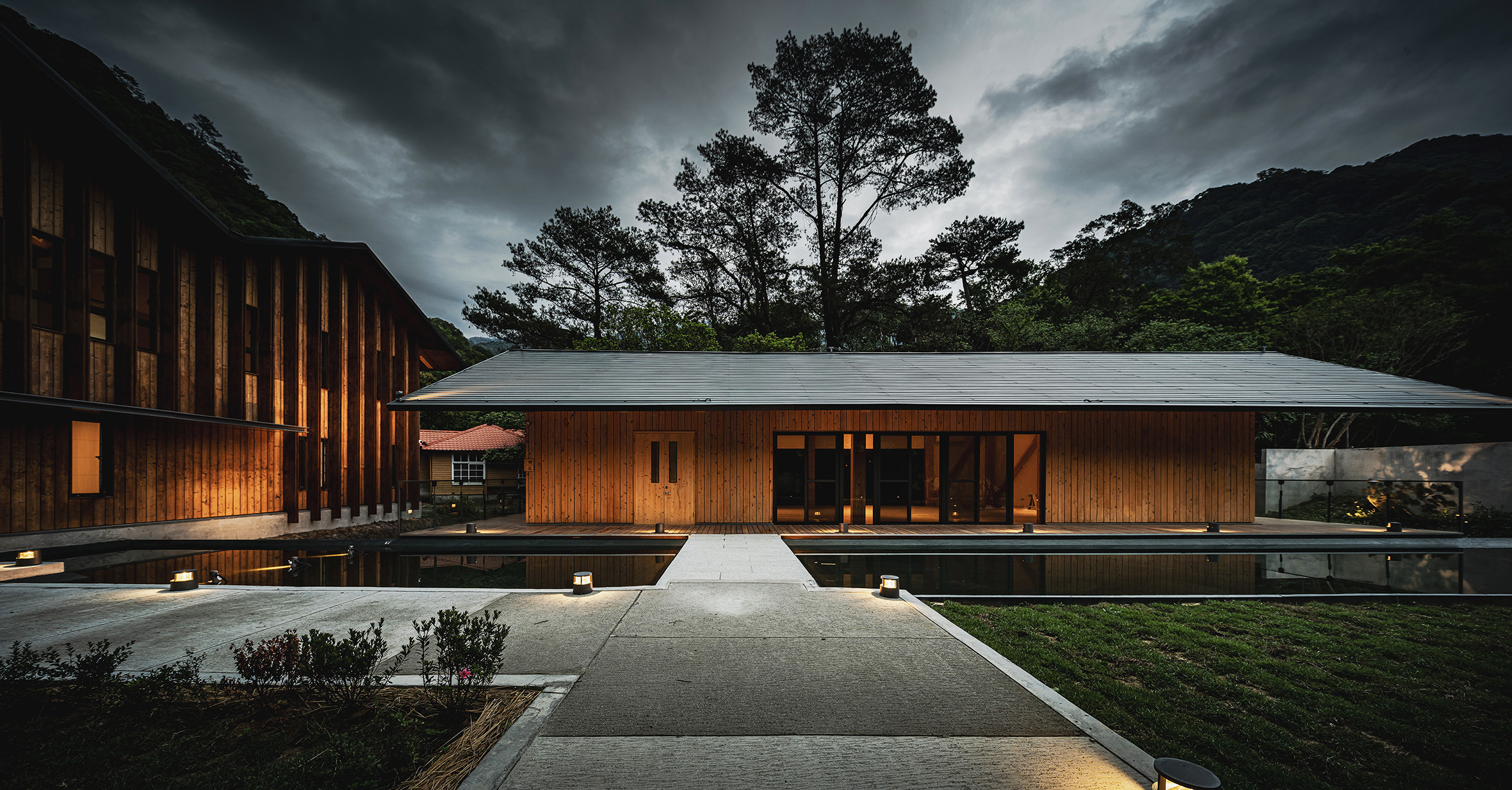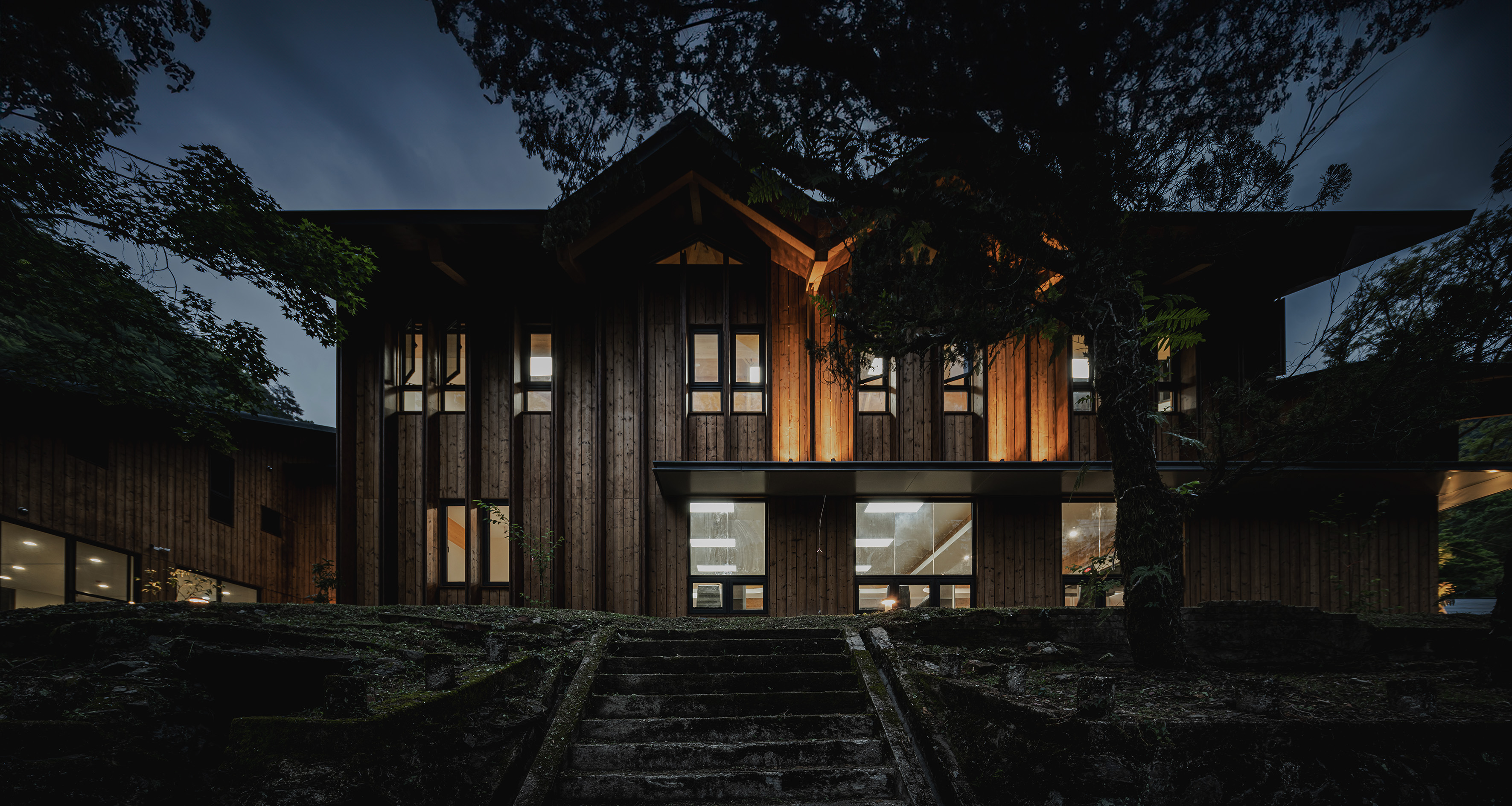 Rather than relying on dramatic lighting effects, the design leverages the natural textures of timber facades, water surfaces, and vegetation to softly reflect and diffuse light. The resulting atmosphere enriches the nocturnal identity of the campus, instilling both safety and comfort. Ultimately, the lighting design transforms a functional workplace into a welcoming mountain retreat, where light becomes not only a tool for visibility but also a medium of connection between people, architecture, and nature.