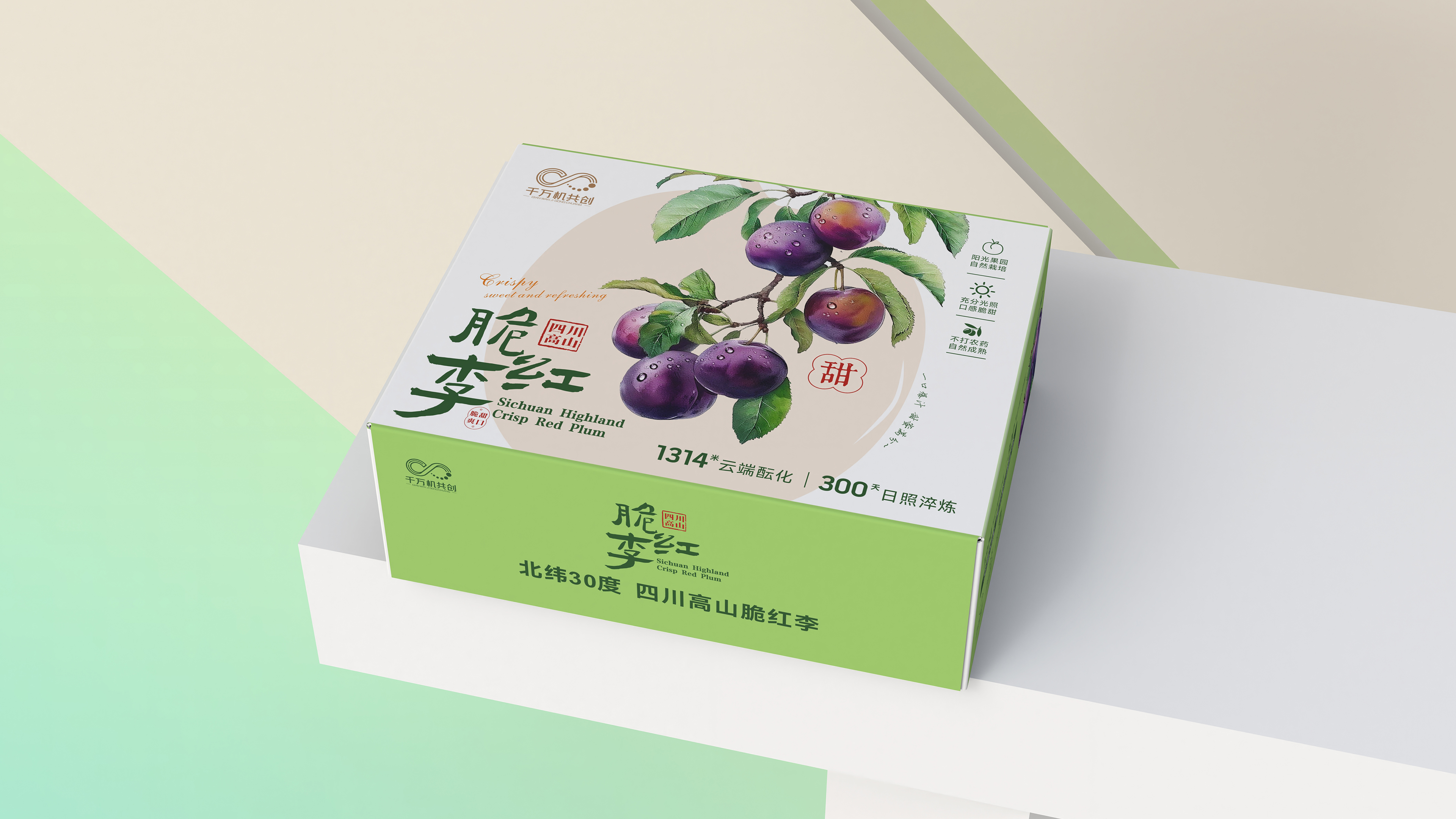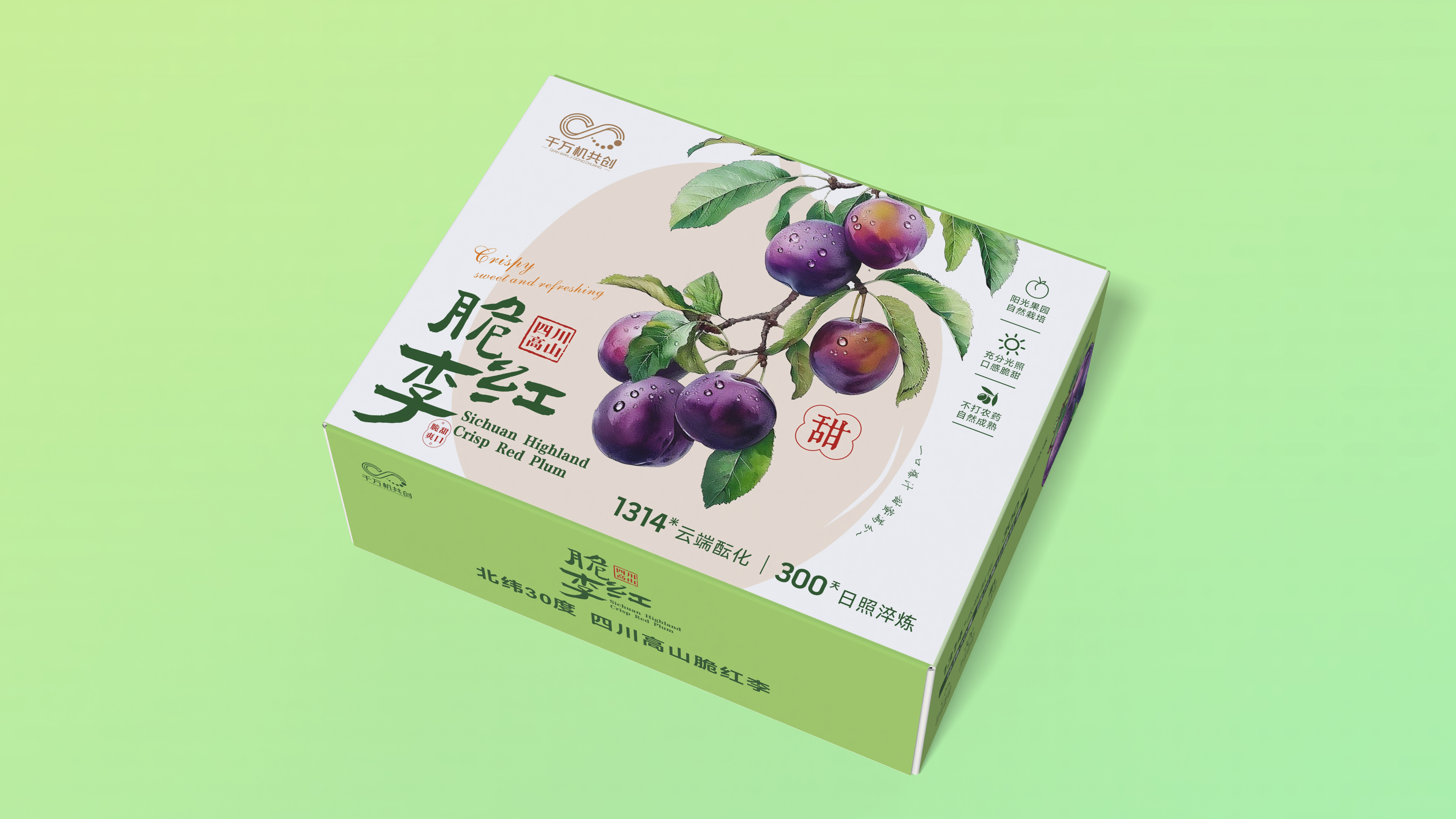 This packaging design aims to create a sensory bridge, visually transporting the consumer to the pristine highlands of Sichuan. We wanted the package itself to tell a story of sunshine, altitude, and artisanal care, allowing the consumer to almost breathe in the fresh mountain air from the 30°N latitude orchard upon opening the box. The core of the design is "Authentic Presentation," faithfully conveying the crisp, sweet, refreshing, and fresh qualities of the Crisp Red Plum.
