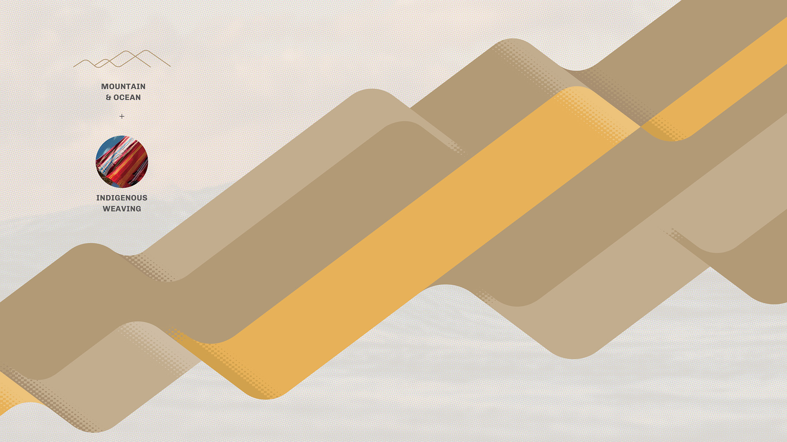 The design integrates imagery of mountains and seas, rendered in flowing lines that symbolize the intimate relationship between Indigenous peoples and nature. Mountains embody stability and rootedness, while seas suggest openness and inclusivity. Together they reflect resilience, balance, and the philosophy of coexistence, pointing toward a sustainable vision for the future.