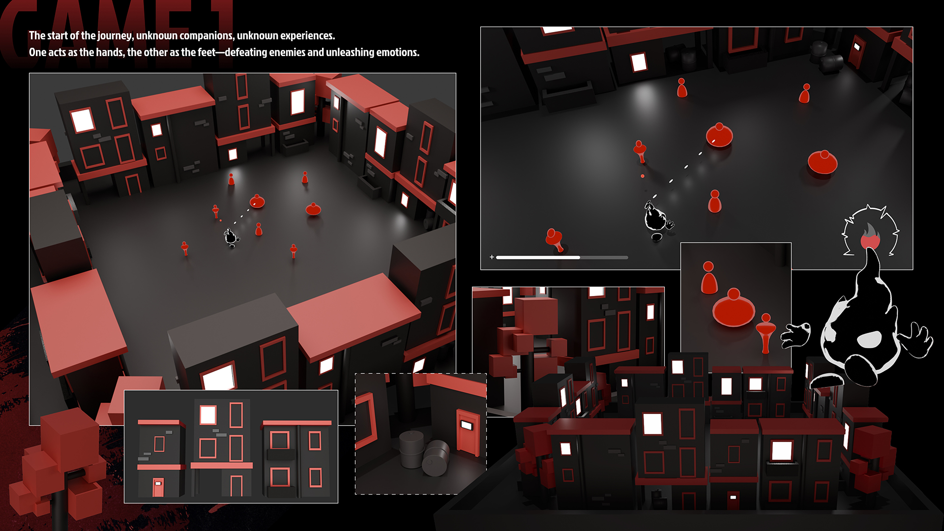 More than an entertainment device or a cooperative puzzle, this project fuses game design and spatial design into a singular, immersive system. It seeks to create an interactive experience where the whole is greater than the sum of its parts: an immersive exploration of tension, cooperation, and transformation.