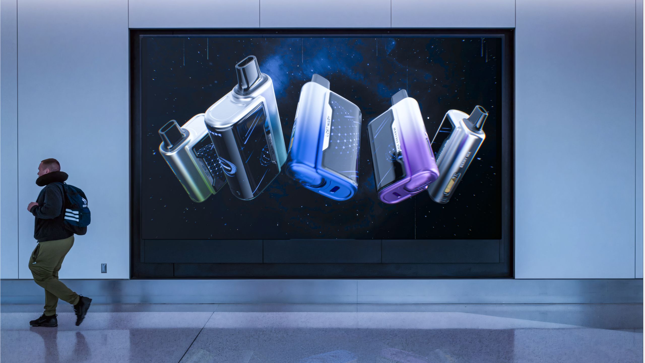 The product’s key specification, “30K”, takes center stage as a visual highlight. On the poster, it appears as oversized white lettering that forms a glowing backdrop, creating a strong visual impact. On the front of the packaging, it serves as a core design element, enhancing recognition from a distance. Additionally, the 30K mark can also be expressed through translucent, embossed, or shadow treatments and applied across end-cap signage and KV backgrounds, reinforcing brand equity and transforming “long endurance” from a technical specification into a powerful brand symbol. The dynamic “Energy Ring/TURBO” symbol consists of a circular ring and particle trails resembling a turbine or energy gauge, not only signaling the product’s high performance but also acting as interactive animations to enhance user engagement. The “Mirror Starry Horizon” stage design uses reflective surfaces, microgrid textures that evoke pixels and screen substrates, establishing a clean, futuristic atmosphere and unifying the visual tone across posters, campaigns, unboxing materials, and other brand touchpoints. The primary color scheme features a vertical gradient from deep indigo to electric blue, evoking a sense of stability, rationality, and high-tech sophistication. Moreover, the blue-indigo gradient and information grid layout are applied across the full product chain from device boxes, refill packs, display trays to master cartons, creating a unified series identity that is immediately recognizable on shelves and in retail environments.