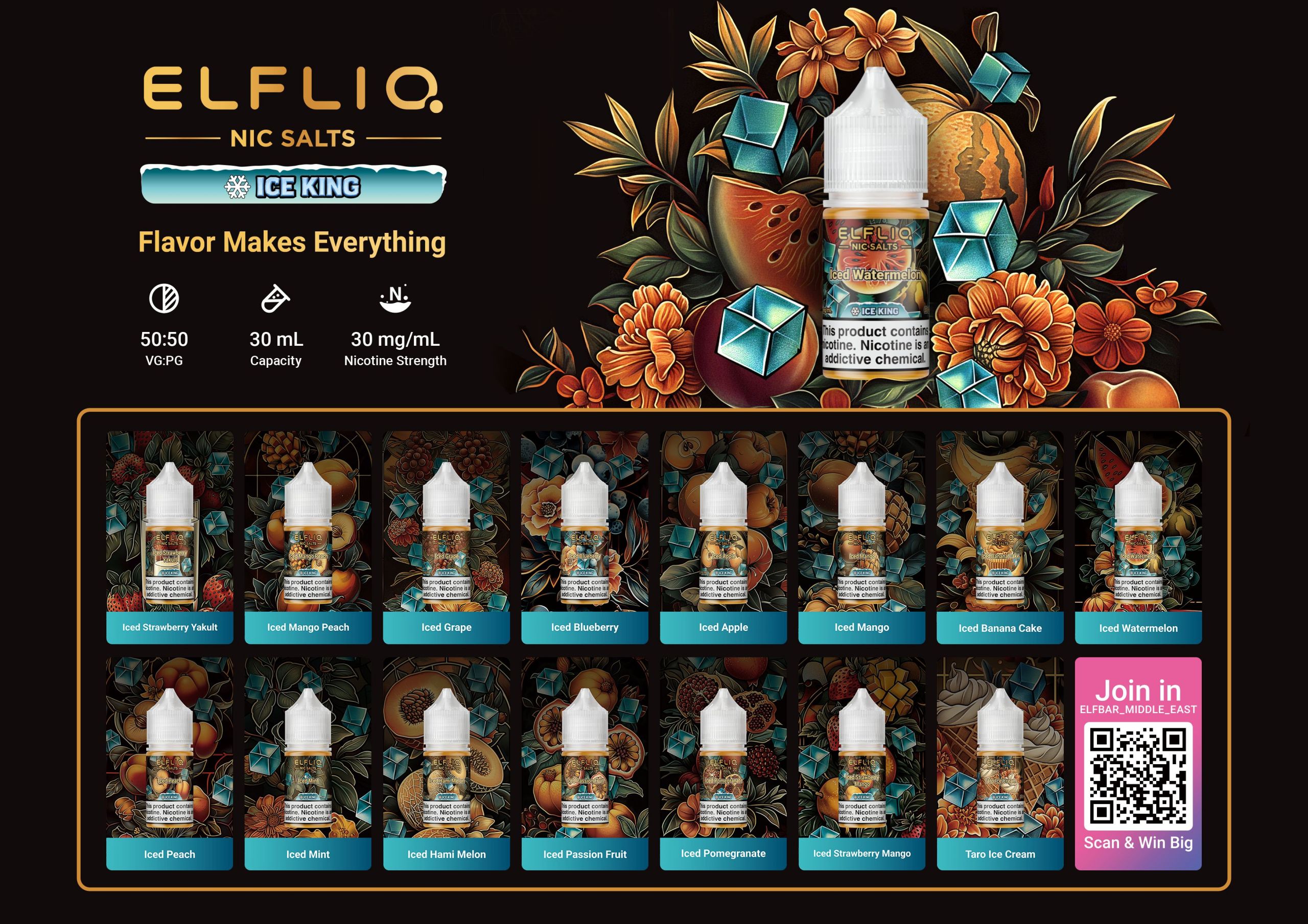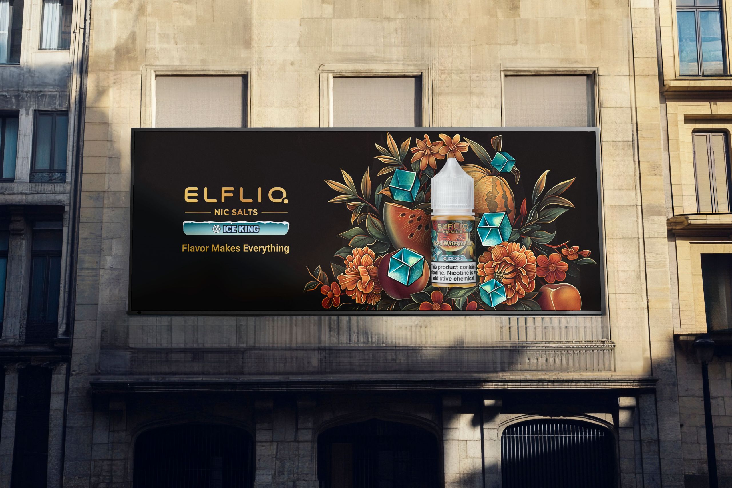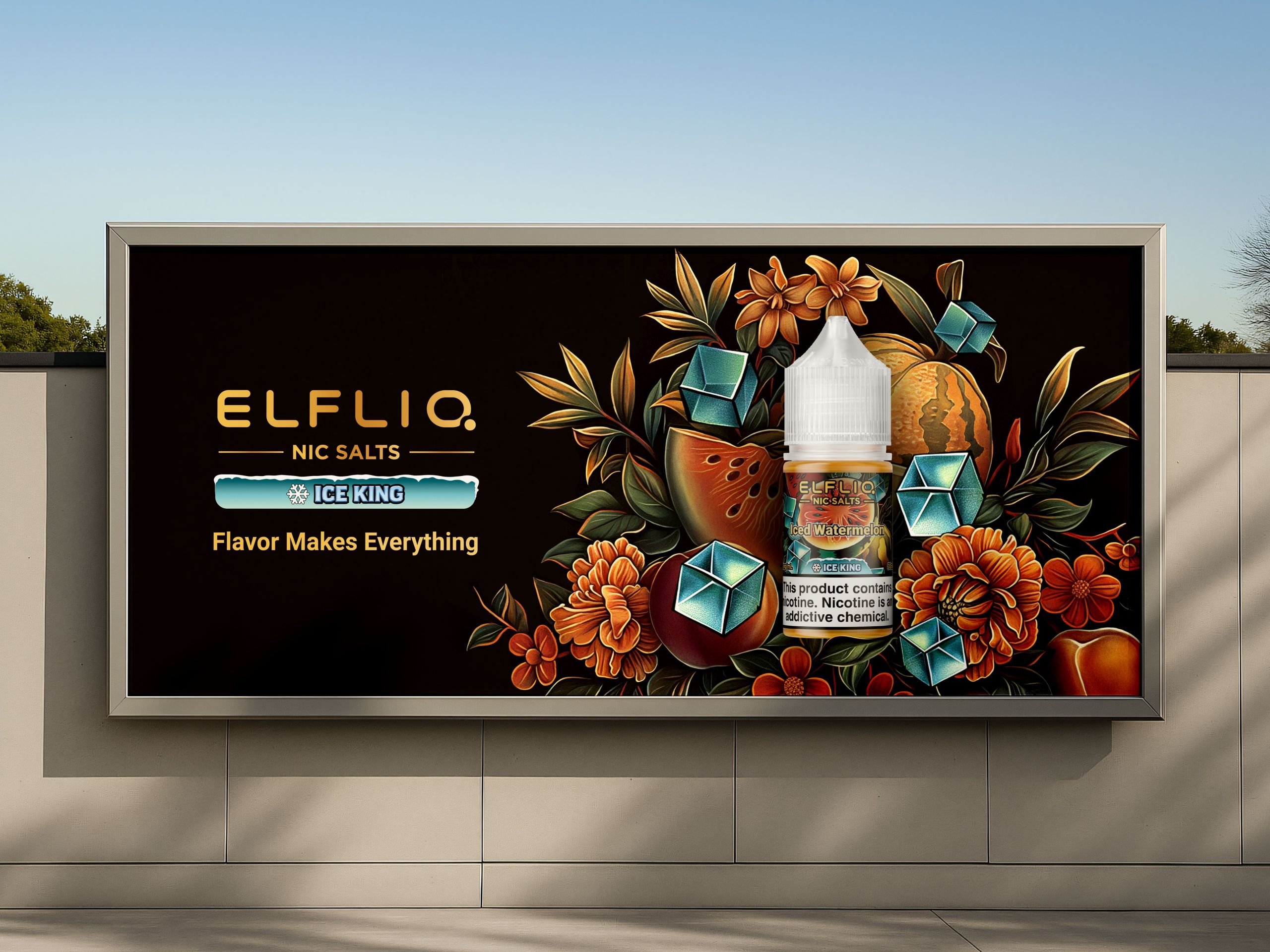 Themed “Ice King · Artistic Coolness,” the design draws inspiration from the seamless fusion of Art Nouveau illustrations and ice beverage culture. Art Nouveau illustrations, with their intricate detailing and flowing curves, lend the packaging a vintage, luxurious artistic appeal. Fruit imagery serves as a direct symbol of flavor, while geometric ice cubes and metallic typography add clear taste cues, collection value, and an artistic atmosphere — striking a harmonious balance between functionality and aesthetic expression. The color scheme follows the principle of “flavor signature color + ice blue + metallic accents”: the primary color represents the signature fruit color of each flavor, the secondary color pairs a dark background with green leaves, and accent colors include ice blue tones and a metallic gold logo. This ensures a consistent color scheme across the series and distinguishes different flavors. In composition, the fruit illustration is enlarged and centered as the visual focus, while geometric ice cubes add a modern touch and evoke a sense of coolness — highlighting the product’s refreshing quality. Together, these elements create packaging that is refined, visually striking, and rich in artistic expression.