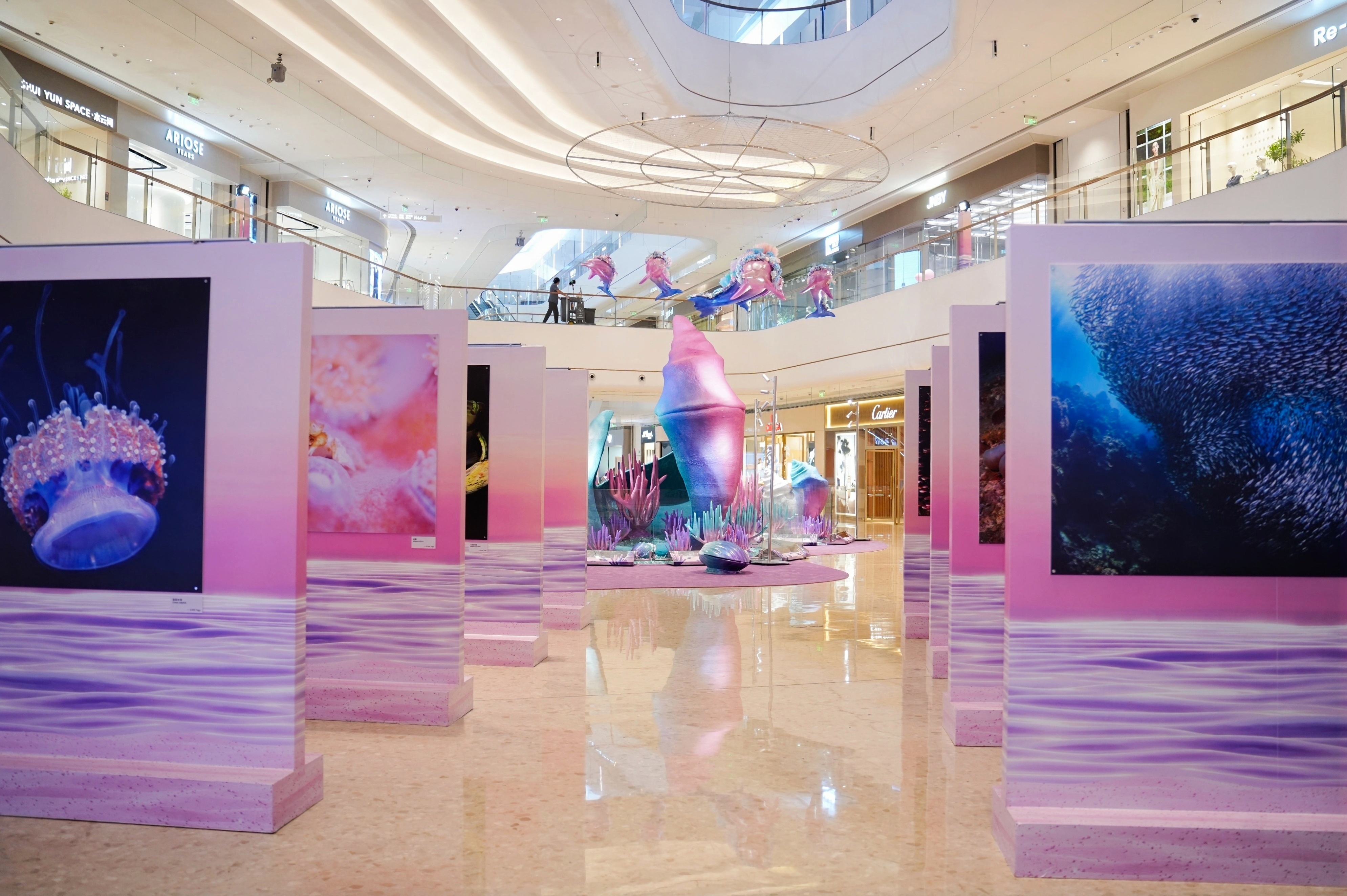 This project, as an immersive ocean art exhibition situated within a commercial center, enables art to seamlessly intervene in public space. Centered around the concept of ‘weaving dreams about deep ocean, conveying emotions through art’, it integrates art installations with lighting technology, aiming to foster greater public concern for marine ecosystems.