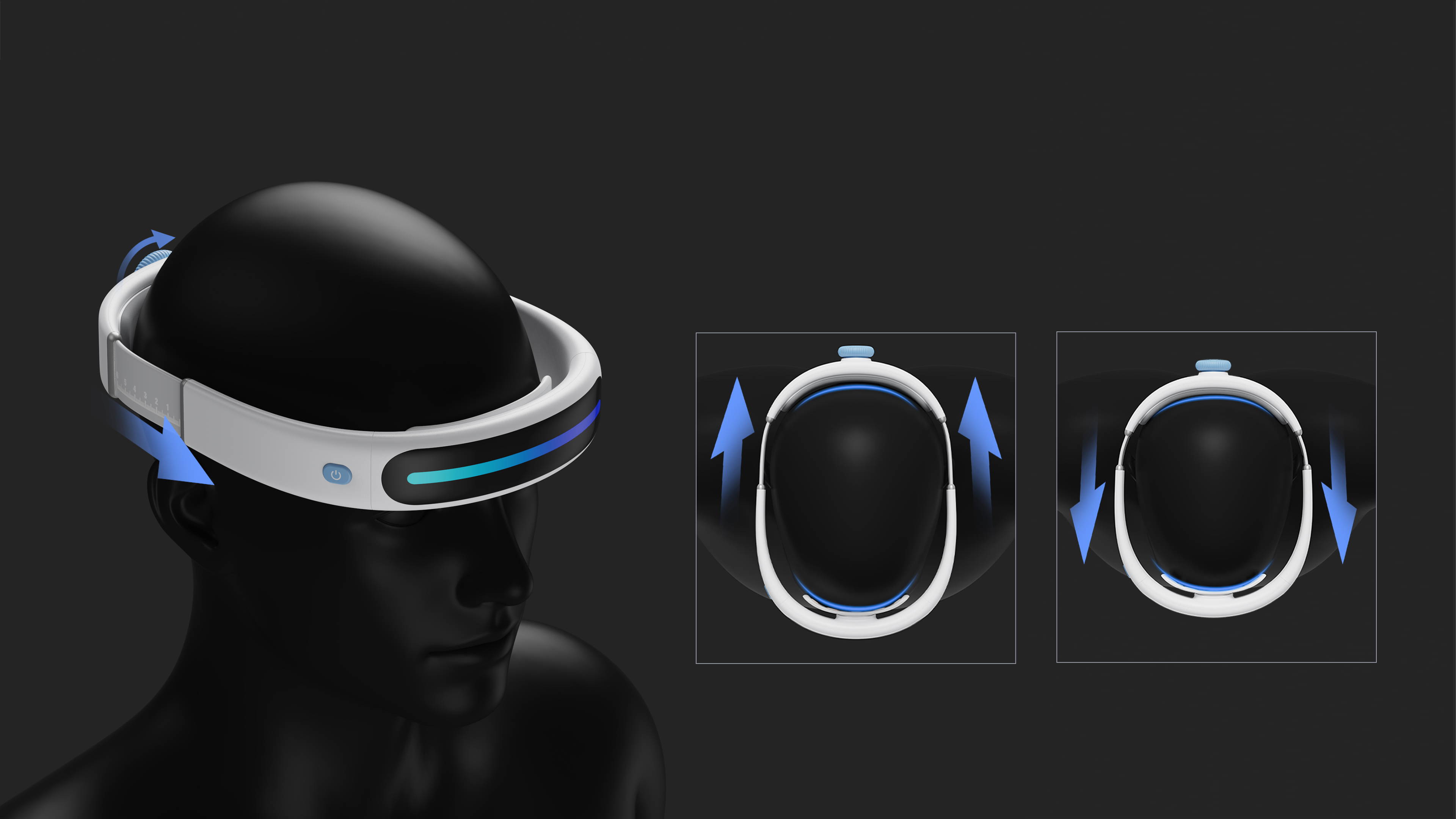 Breaking free from the traditional "bulky, lab-centric" image of brain-computer interfaces, this device establishes a new design paradigm with its lightweight, circular structure and sleek, minimalist, high-tech aesthetic. The intuitive rotary knob replaces traditional straps for quick and easy adjustment. Modular magnetic electrode pads eliminate inefficient factory repairs, demonstrating a deep understanding of user needs in its design. The large black mirrored surface combined with dynamic lighting effects gives the device strong recognition and a futuristic, high-tech presence, elevating it from a mere medical tool to a smart wearable that provides emotional value. The design features an integrated circular structure with a white base tone, conveying pure technological sophistication. A black functional area creates a visual focal point, while a colorful light strip provides an immersive user experience through breathing and rhythmic effects. In terms of material selection, silicone side wings ensure both skin-friendliness and safety, the woven back cushion offers comfort and breathability, and internal sponge padding ensures a light and snug fit. The IML-crafted panel appears as a smooth, understated mirror when idle; once activated, the flowing lights resemble a stage coming alive, vividly demonstrating the aesthetic contrast between "stillness" and "motion." The design revolves around three core principles: "seamless, intuitive, and flexible." Five front-mounted electrodes precisely conform to the forehead, ensuring stable EEG data collection. The rotary knob enables quick and easy fitting, avoiding complex operations. The magnetic electrode pads, with their dual-layer structure, accommodate various head shapes, showcasing the design's inclusivity for individual differences. LED light effects transform abstract data feedback into perceptible visual signals, allowing users to intuitively understand the device's status through changes in light color. This interactive visualization, an extension of its functionality, makes the BCI device less impersonal, fostering a sense of closeness in its use.