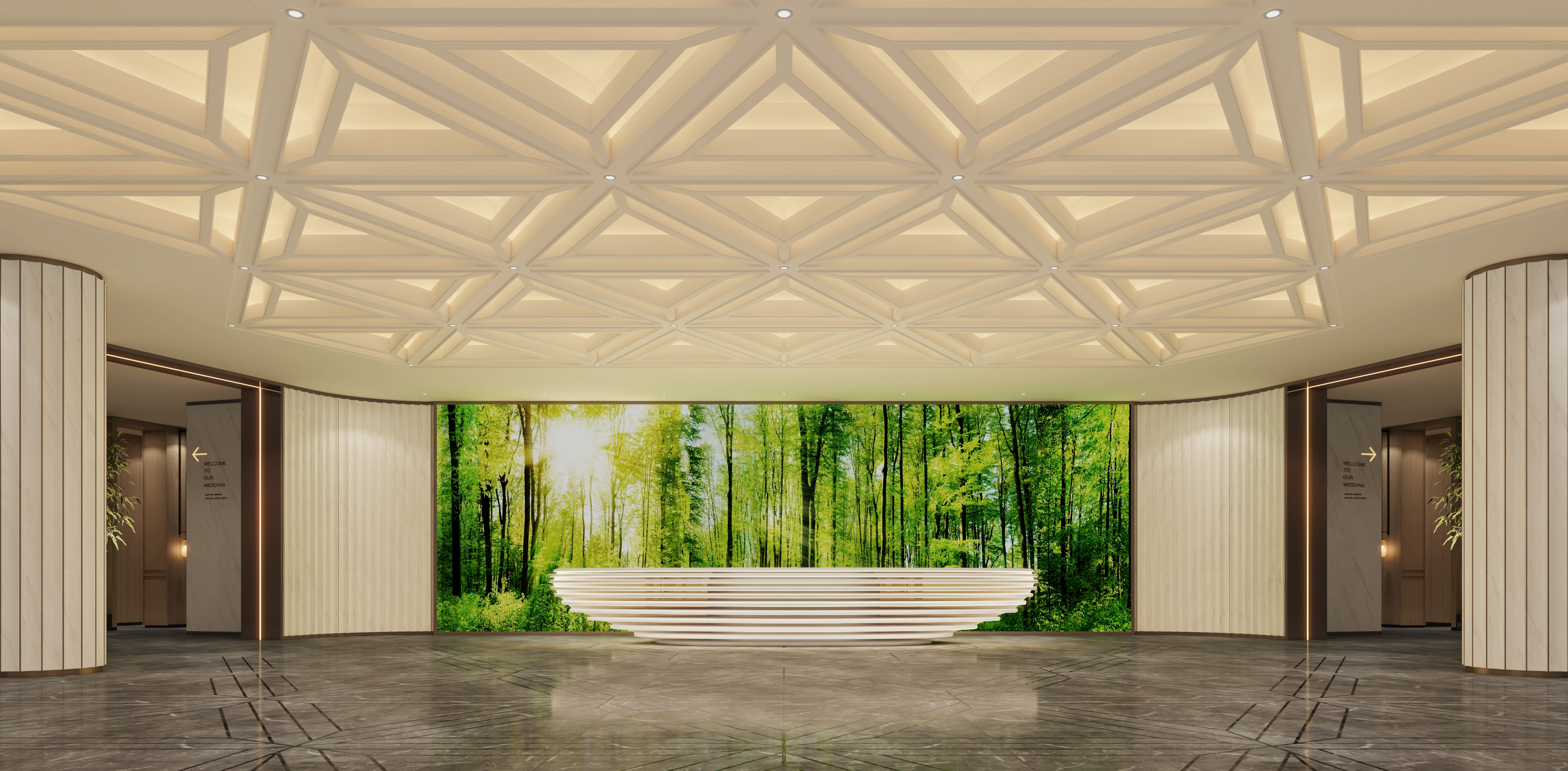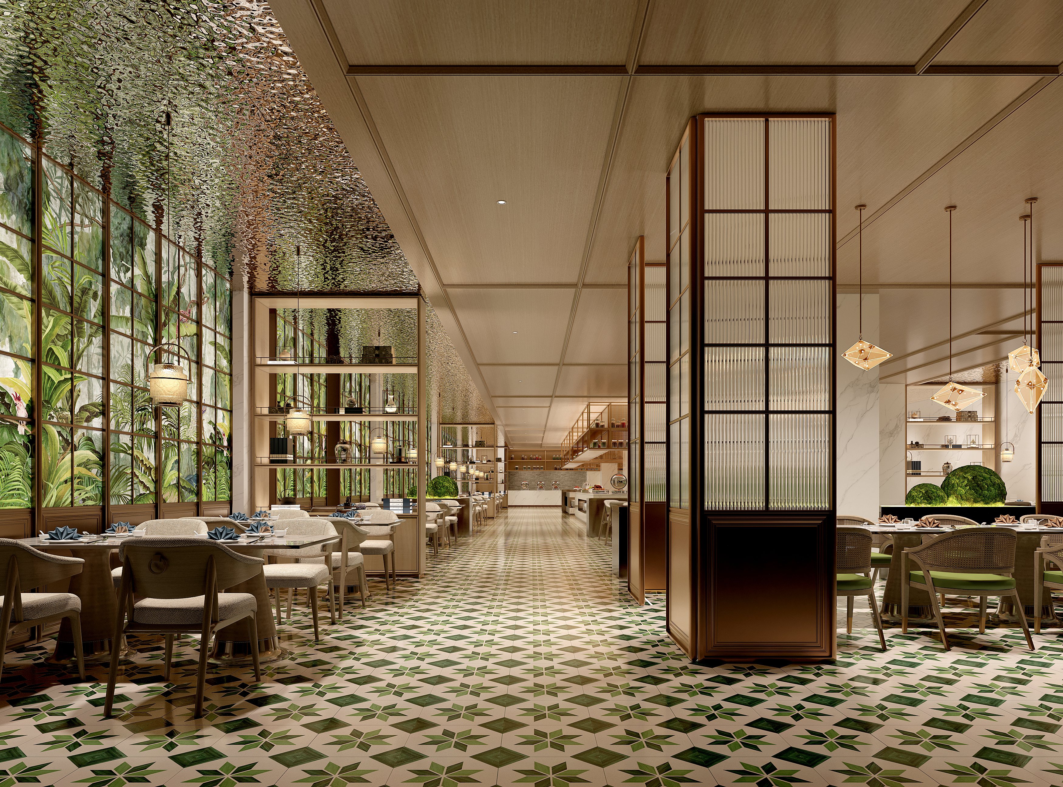 The lobby’s diamond-cut crystal installations embody purity and eternity, while garden-inspired techniques such as “framed” and “borrowed” views create layered spatial experiences. In areas lacking daylight, skylight systems and indoor landscaping bring a natural rhythm into the interiors. The underground spa, once a challenge due to its enclosed nature, is transformed into a tranquil retreat by simulated daylight and lush plantings.