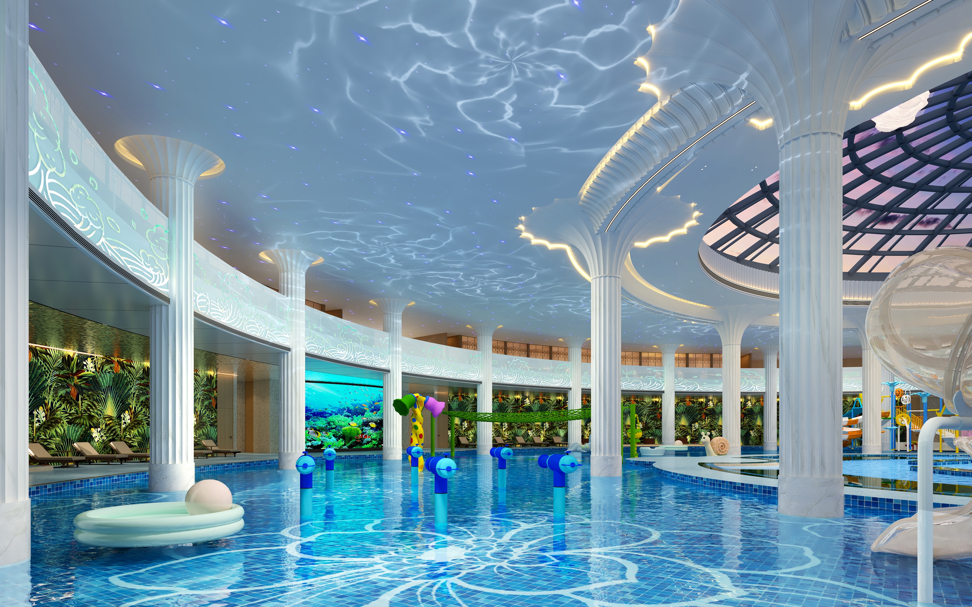Rooted in the local landscape and cultural heritage, the design expresses vitality and balance through the interplay of stillness and motion. The serene luxury of the lobby contrasts with the dynamic energy of the water park, echoing the yin-yang balance in traditional Chinese thought. Water is celebrated as a symbol of life and prosperity, while diamond-inspired motifs convey strength and brilliance, infusing the project with symbolism and vitality.