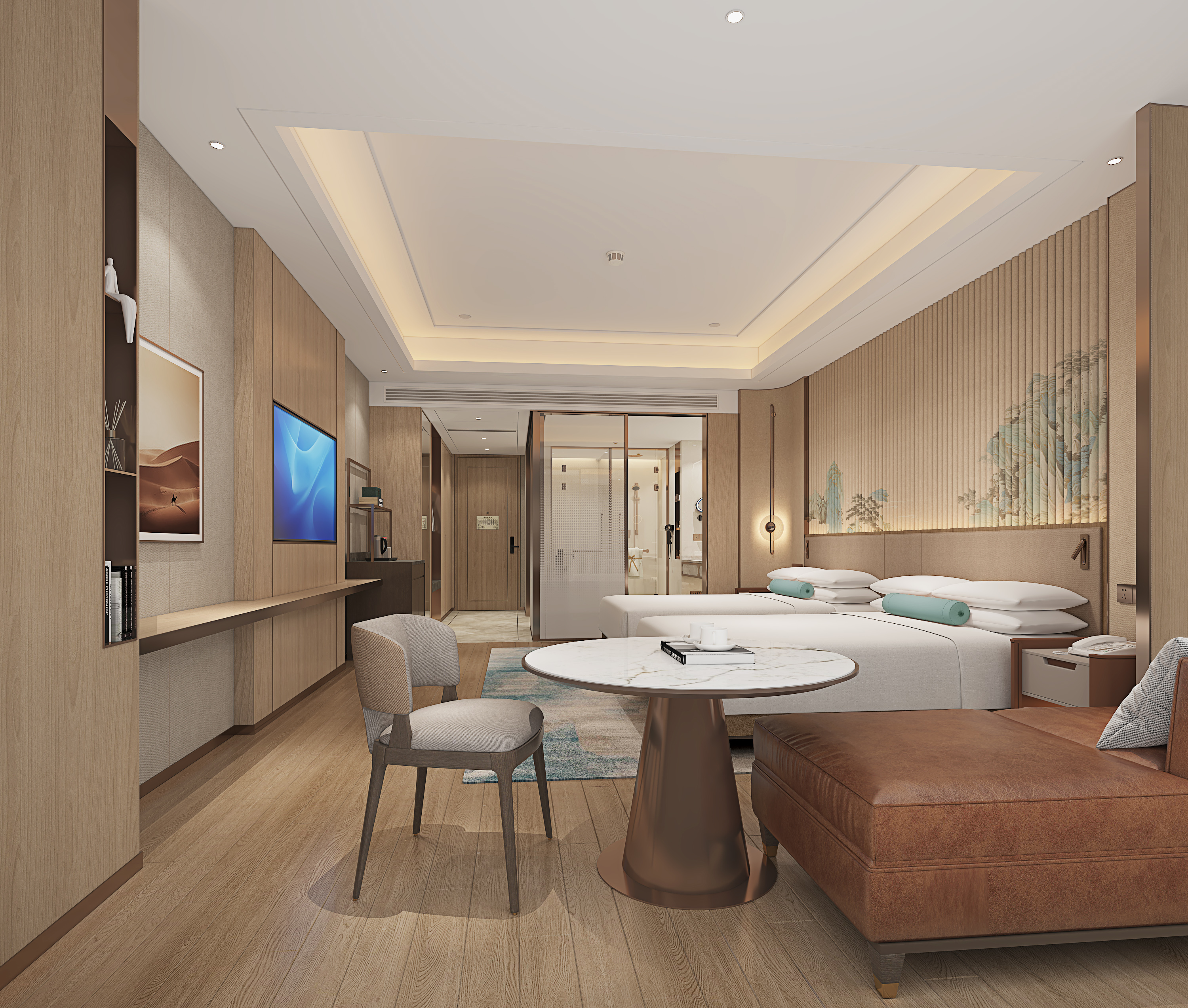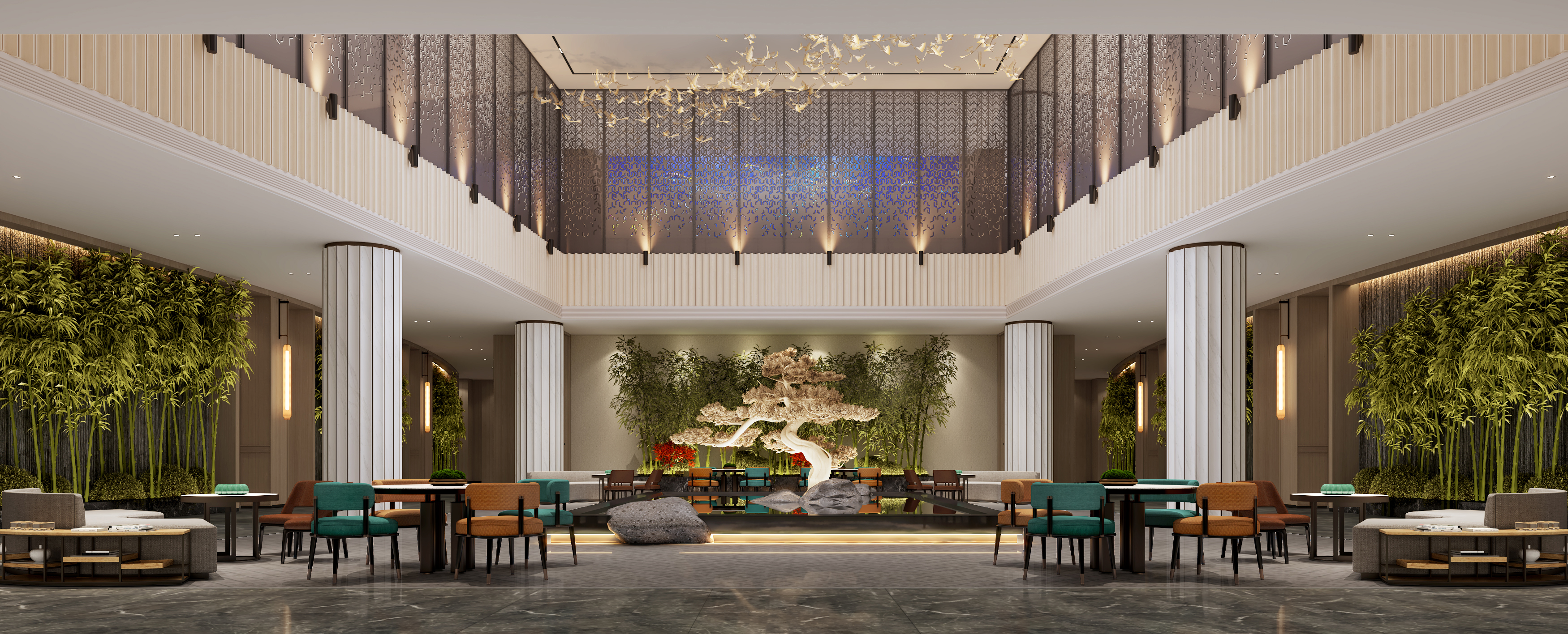 Positioned as a high-end business and leisure resort, the hotel adopts a modern luxury aesthetic while embracing the philosophy that architecture and interiors are part of nature. The design emphasizes a harmonious coexistence between built form and environment, weaving natural light, greenery, and water into spaces that balance comfort, function, and beauty.