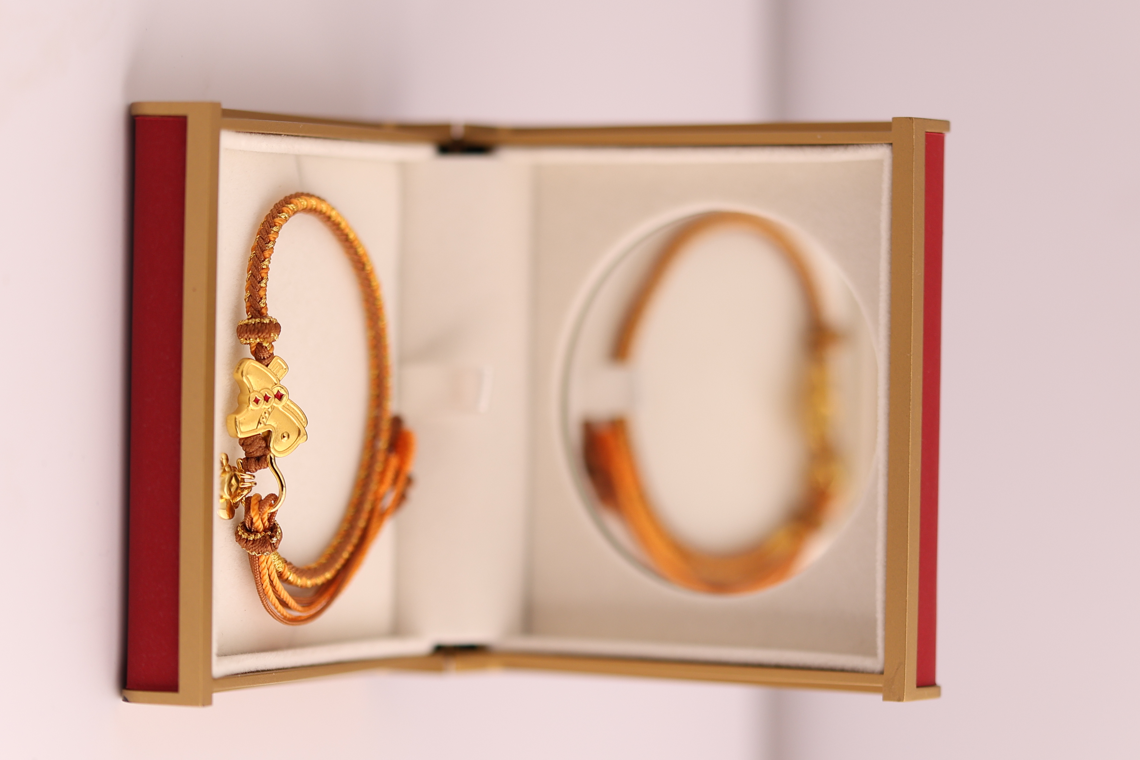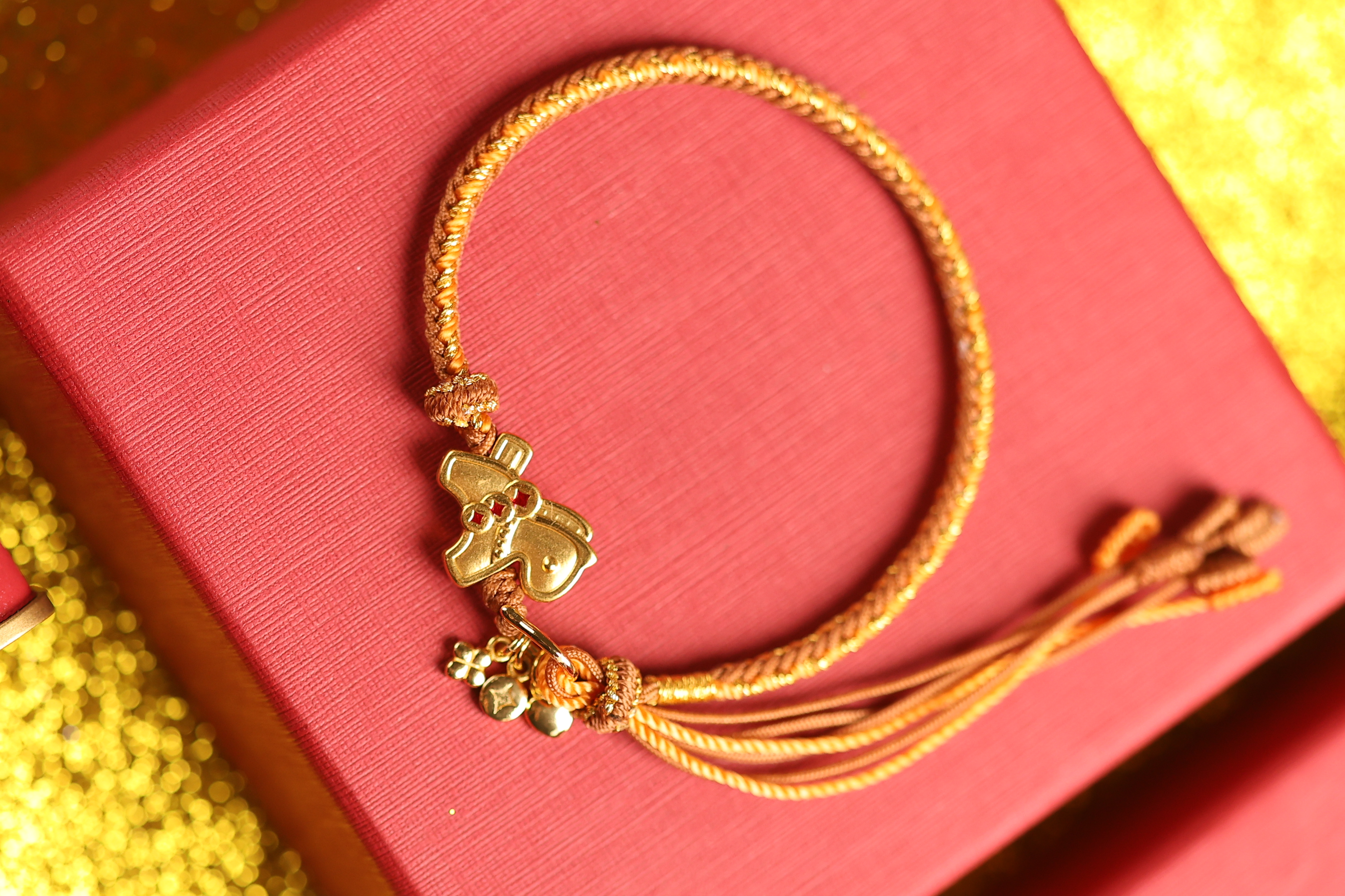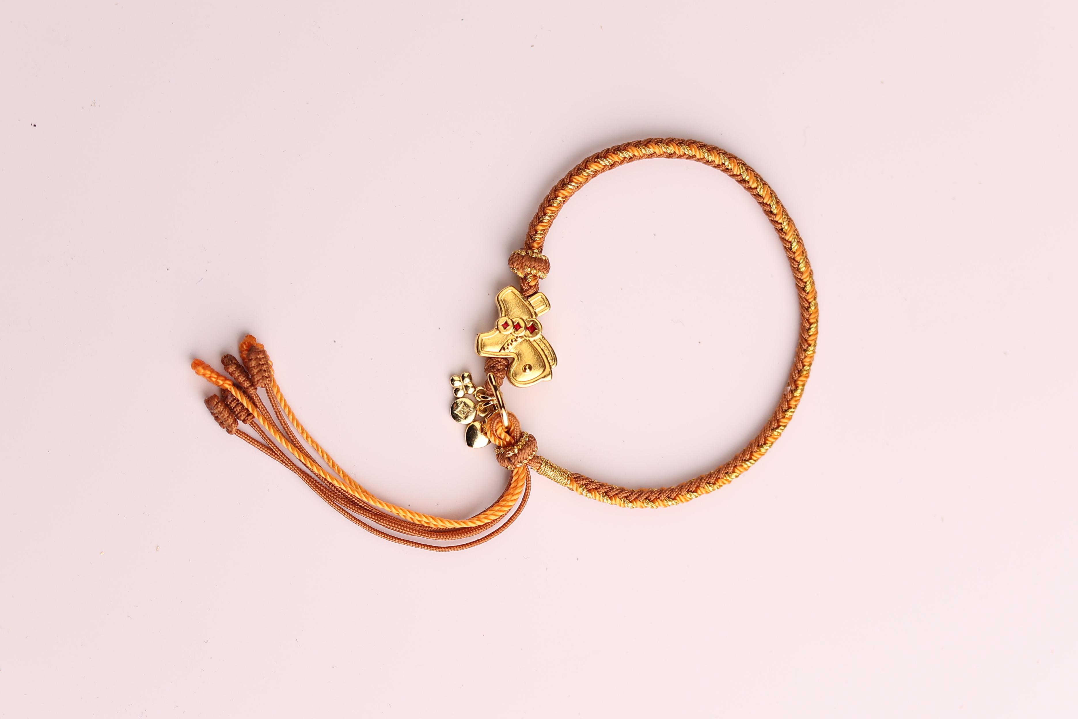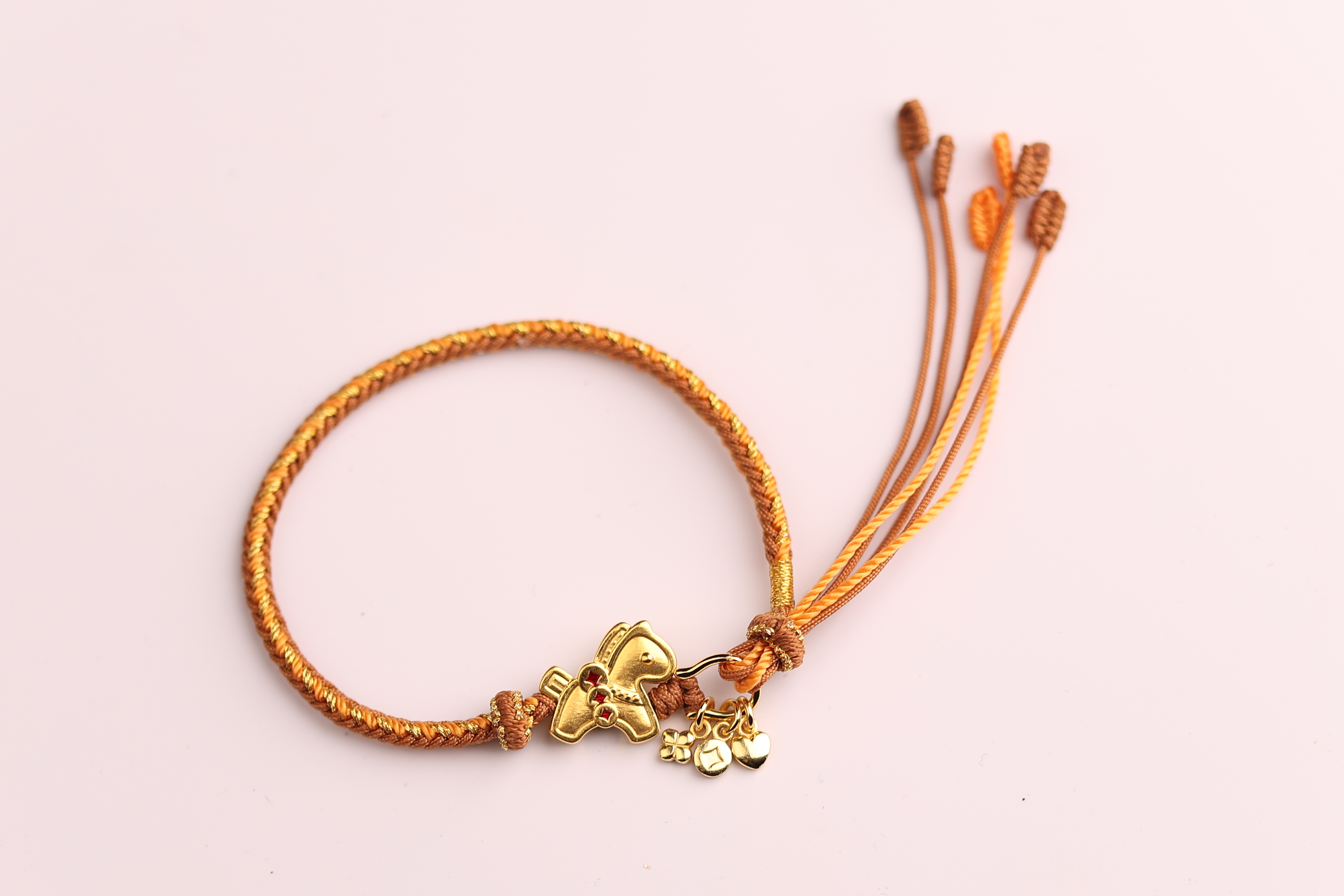 Paired with a thoughtfully designed, handcrafted bracelet in earthy Maillard tones. Woven among its knots are mini horseshoe charms and Good Fortune pendants, symbolizing happiness, wealth, and joy. With every gentle movement of the wrist, blessings seem to flow freely, keeping good fortune close at hand.
