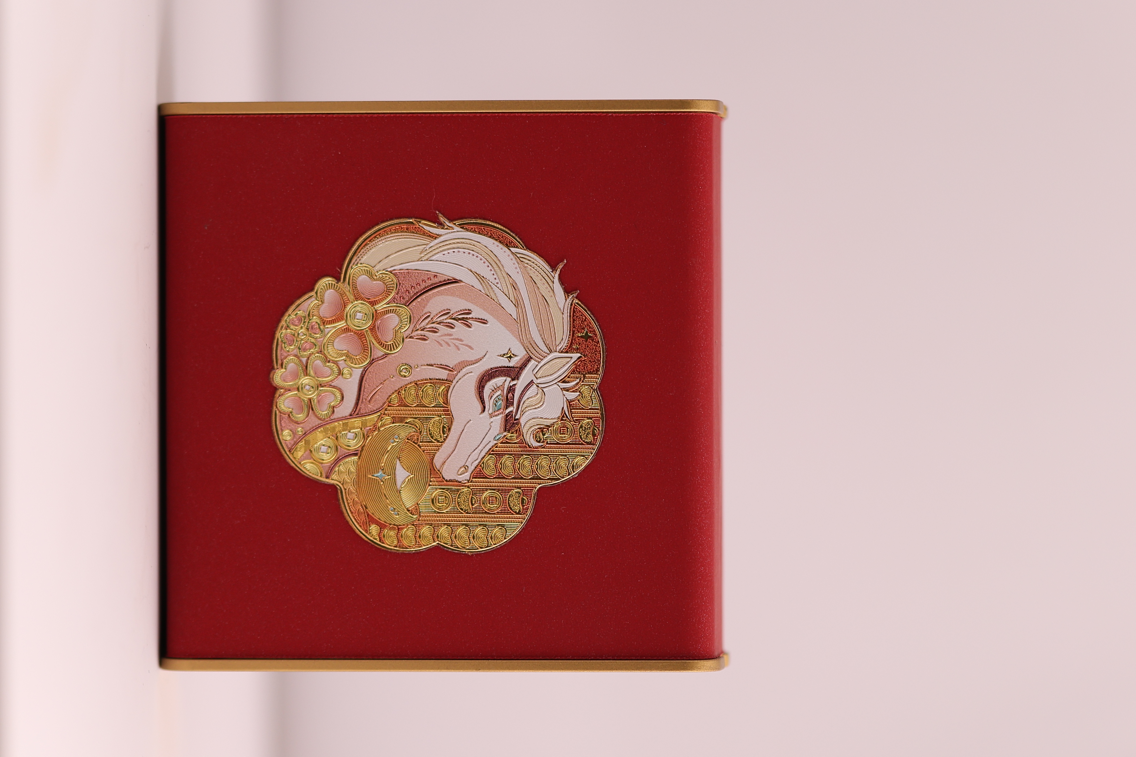 The Good Fortune Golden Pony draws inspiration from the wooden horse of childhood, reimagined as a celestial steed carrying auspicious blessings. Its design echoes the color palette of Tang Dynasty paintings, blending warm Maillard tones with a soft golden glow to express the Eastern wish for instant prosperity. With its poised, galloping form, the pendant embodies courage, vitality, and the promise of good fortune.