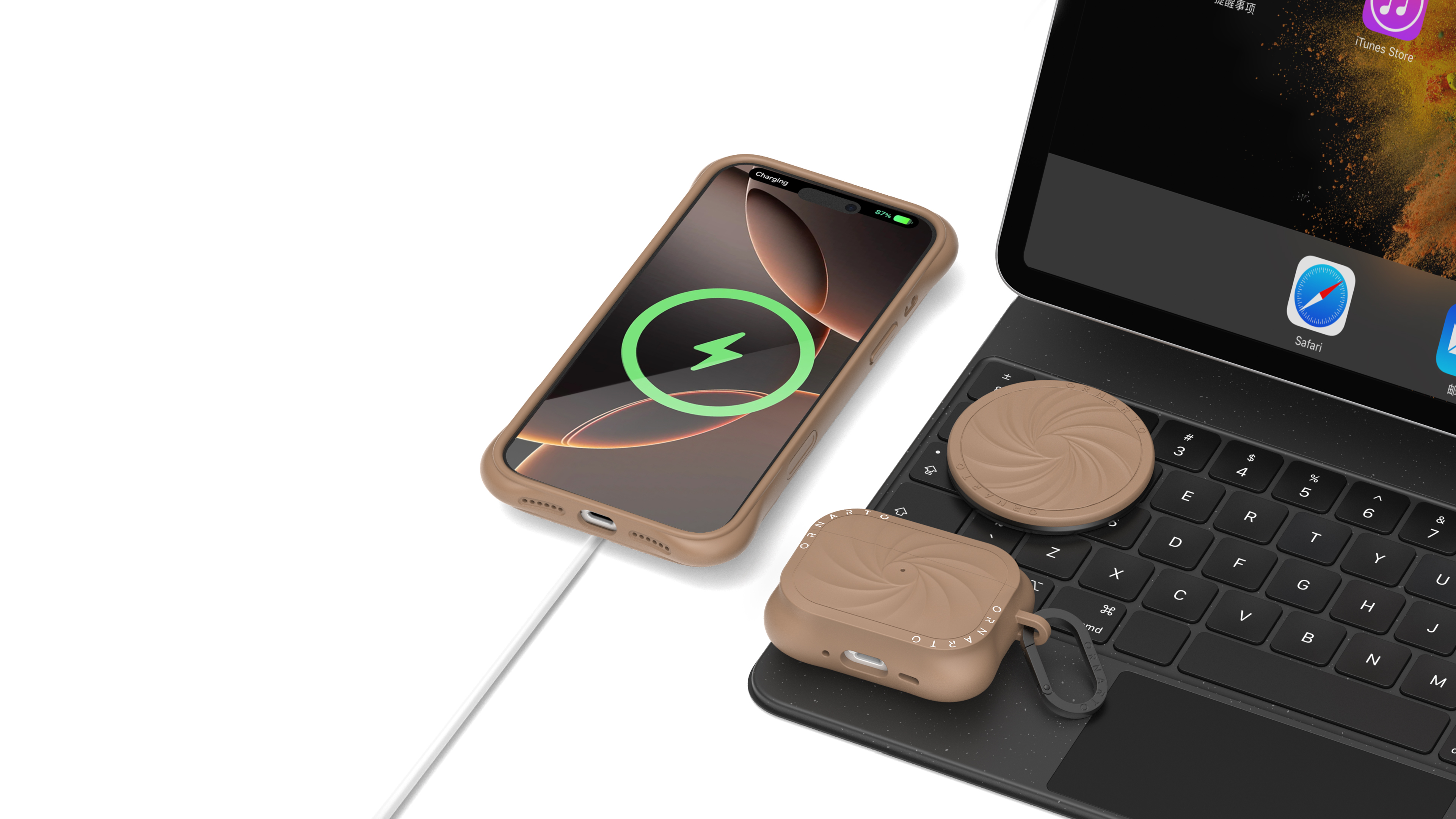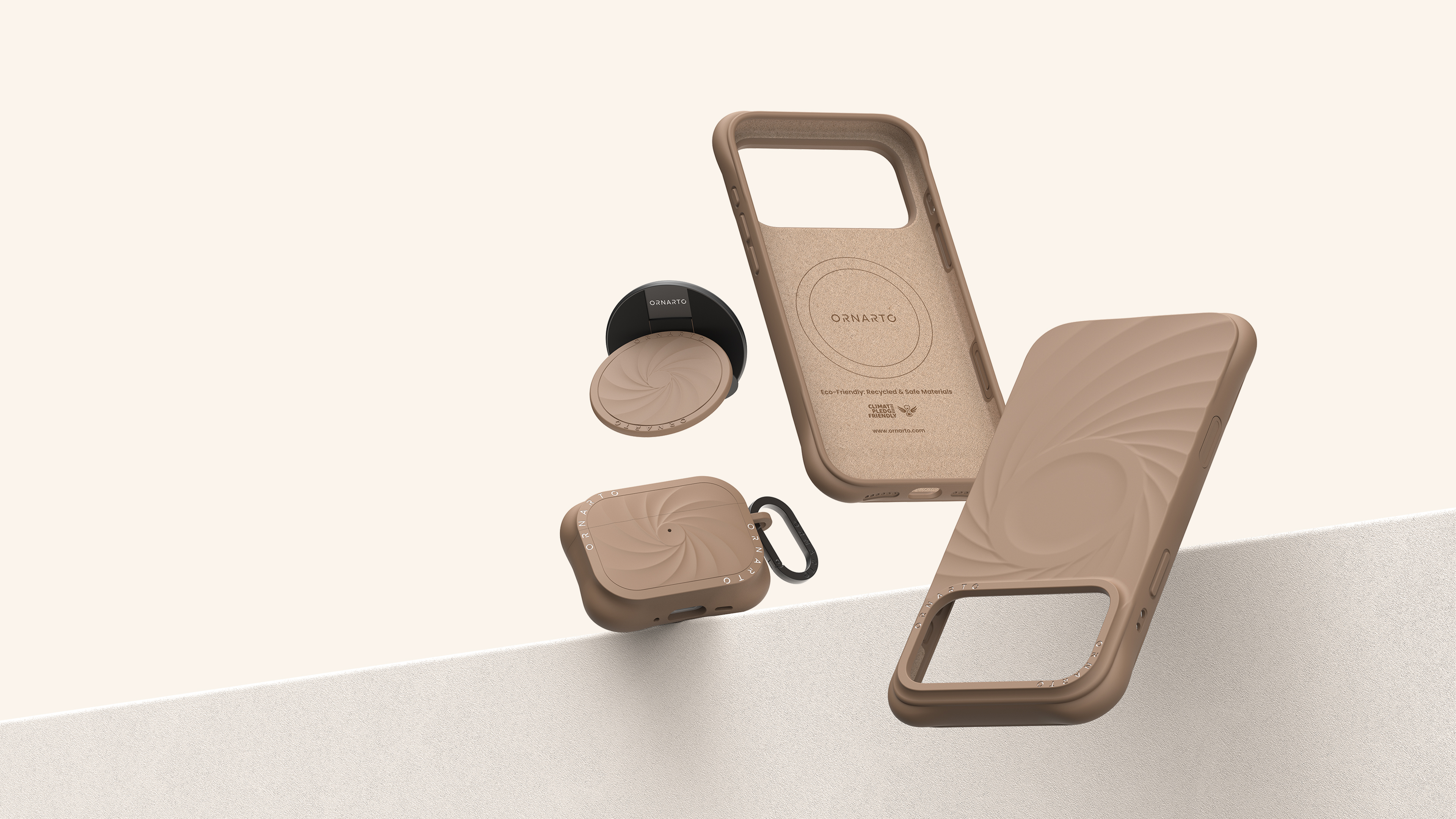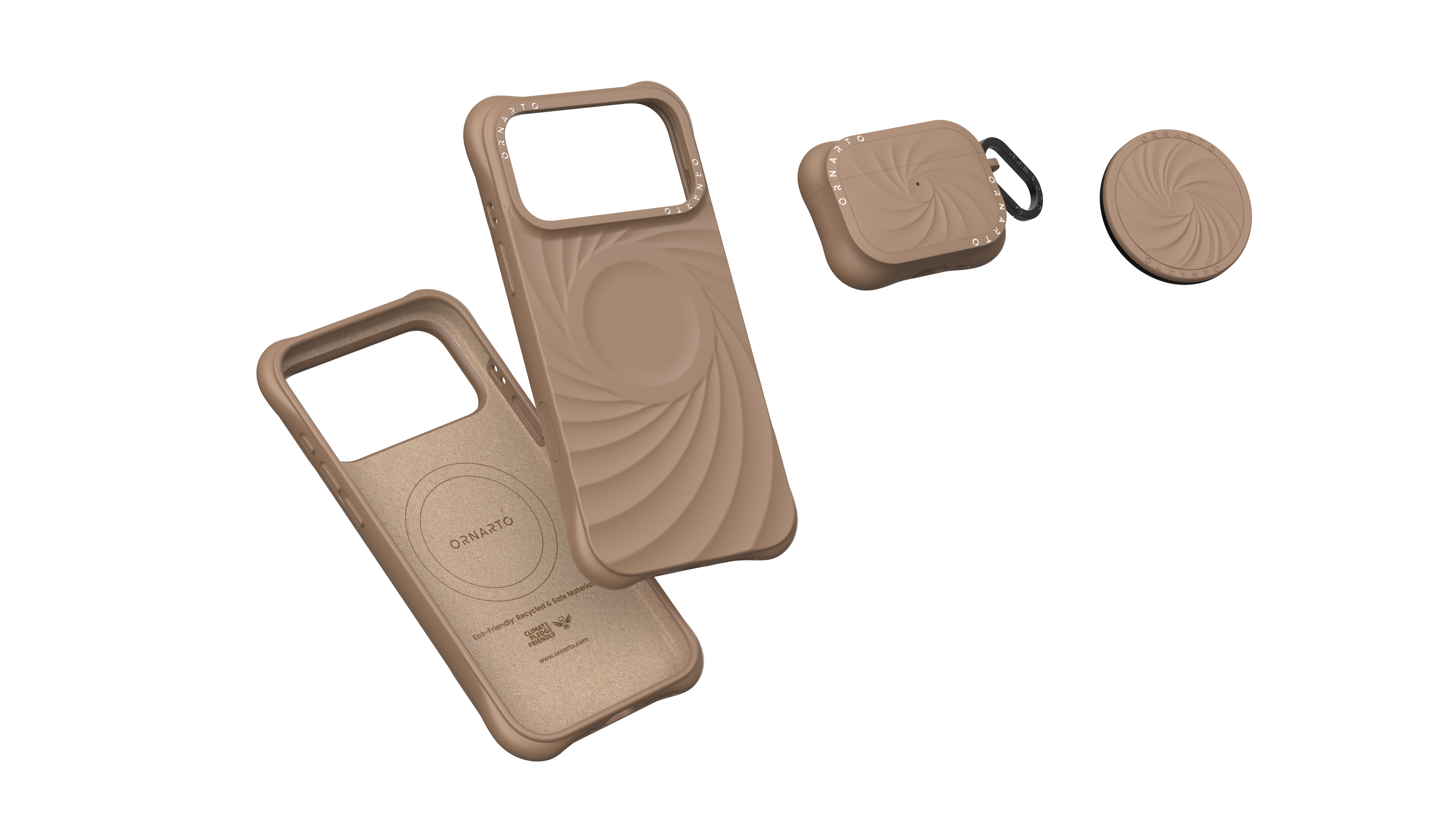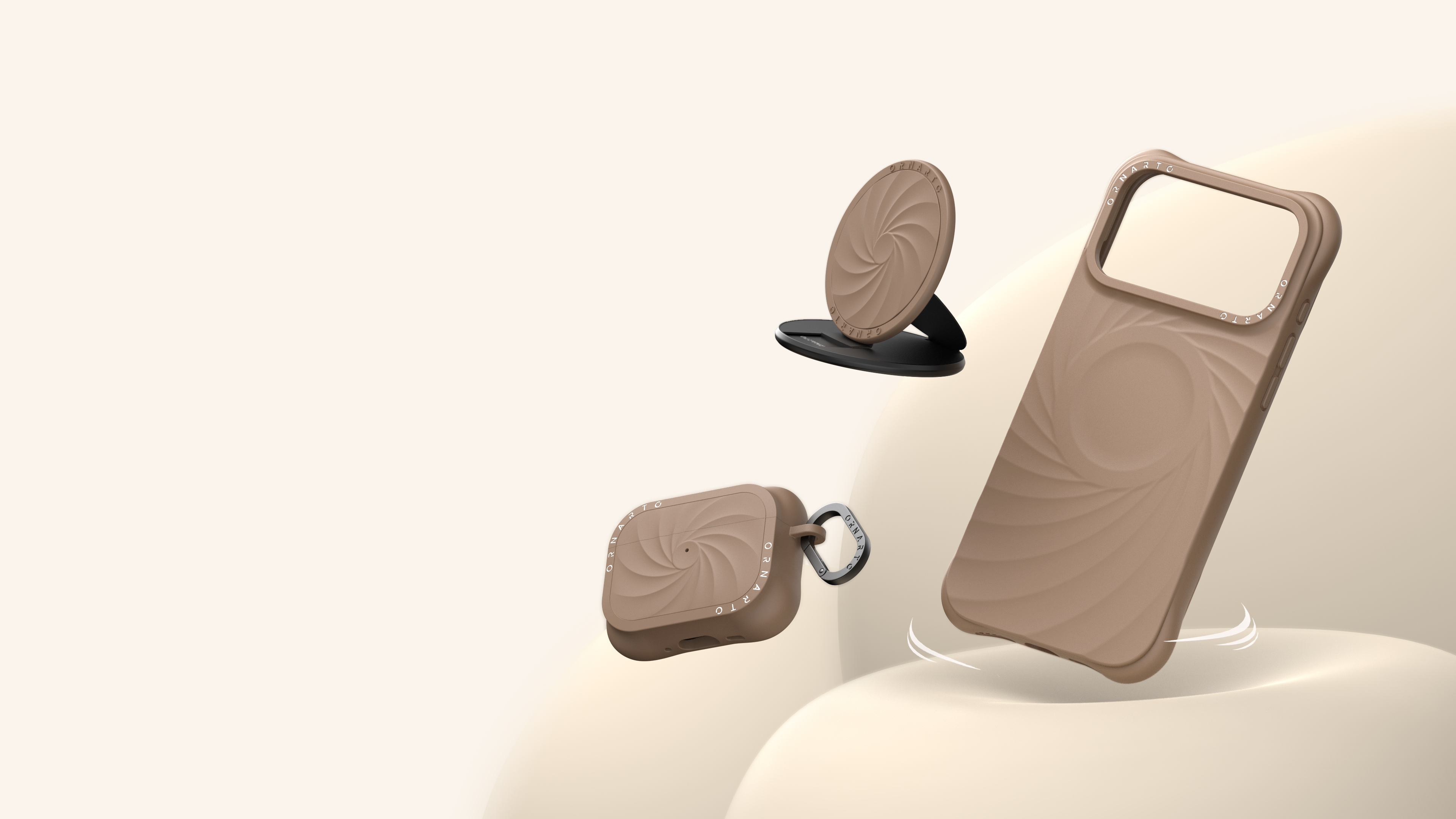 The Vortuxe Series for Phone and Airpods draws inspiration from the flowing forms of natural storms, symbolizing a fusion of power and elegance. Its distinctive 3D vortex texture and four-corner protective design serve as strong visual identifiers, pioneering a "tangible dynamic aesthetic" in tech accessories. Unlike traditional smooth casings, Vortuxe integrates light, touch, and structural protection, giving the product a strong recognition both visually and tactilely. Its original design has been granted a U.S. design patent D1062710S, establishing the brand's independent design language. This series achieves its three-dimensional, flowing 3D vortex texture through precise modeling and layered craftsmanship. Each curve creates soft gradients under light, with the visual sense of flow complementing the delicate tactile feel. The raised four-corner protection not only enhances drop resistance but also aesthetically balances strength and softness. The overall appearance features a natural color palette—from Cloud Mist Grey to Morning Mist Blue—conveying an aesthetic philosophy of "calm within power." Through rigorous proportion control and minimalist composition, the Vortuxe Series exhibits a unique "minimalist power," reinforcing the brand's visual identity. The Vortuxe Series not only boasts a unique appearance but also prioritizes the practical aspects of user experience. The outer shell features a dual-layer protective structure of high-quality liquid silicone and a microfiber lining, offering a smooth touch, stain resistance, and wear resistance. The series is fully compatible with the MagSafe magnetic system, enabling seamless charging and multi-accessory use, maintaining both efficiency and aesthetic appeal. The earphone protective case and silicone stand follow the same design language, featuring an LED visible window, anti-slip upper cover, and impact-resistant structure, providing users with a stable and convenient experience that demonstrates deep collaboration between design and engineering. The Vortuxe Series utilizes recyclable liquid silicone certified by the Global Recycled Standard, with recycled content exceeding 50%. It is also certified by SGS and RoHS environmental standards, ensuring the material's safety and durability. Production processes strictly control energy and waste, eliminating the use of harmful solvents. Packaging uses biodegradable paper materials and plant-based soy ink printing, comprehensively reducing the environmental footprint.