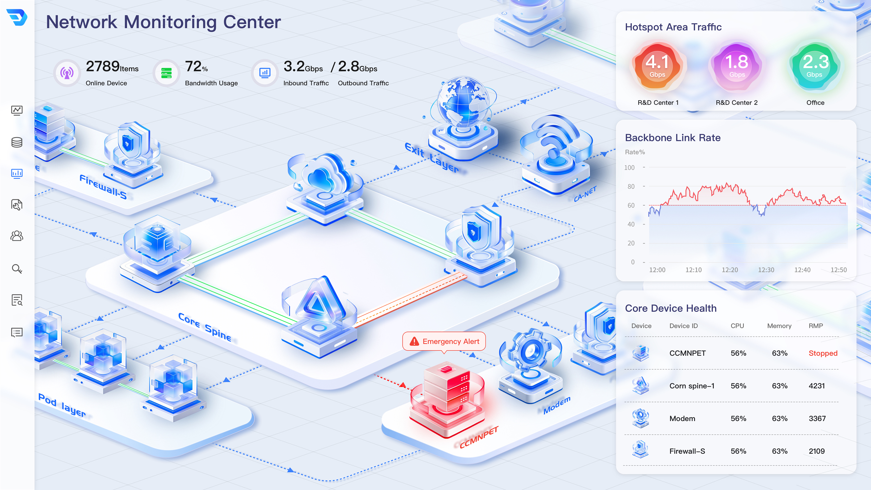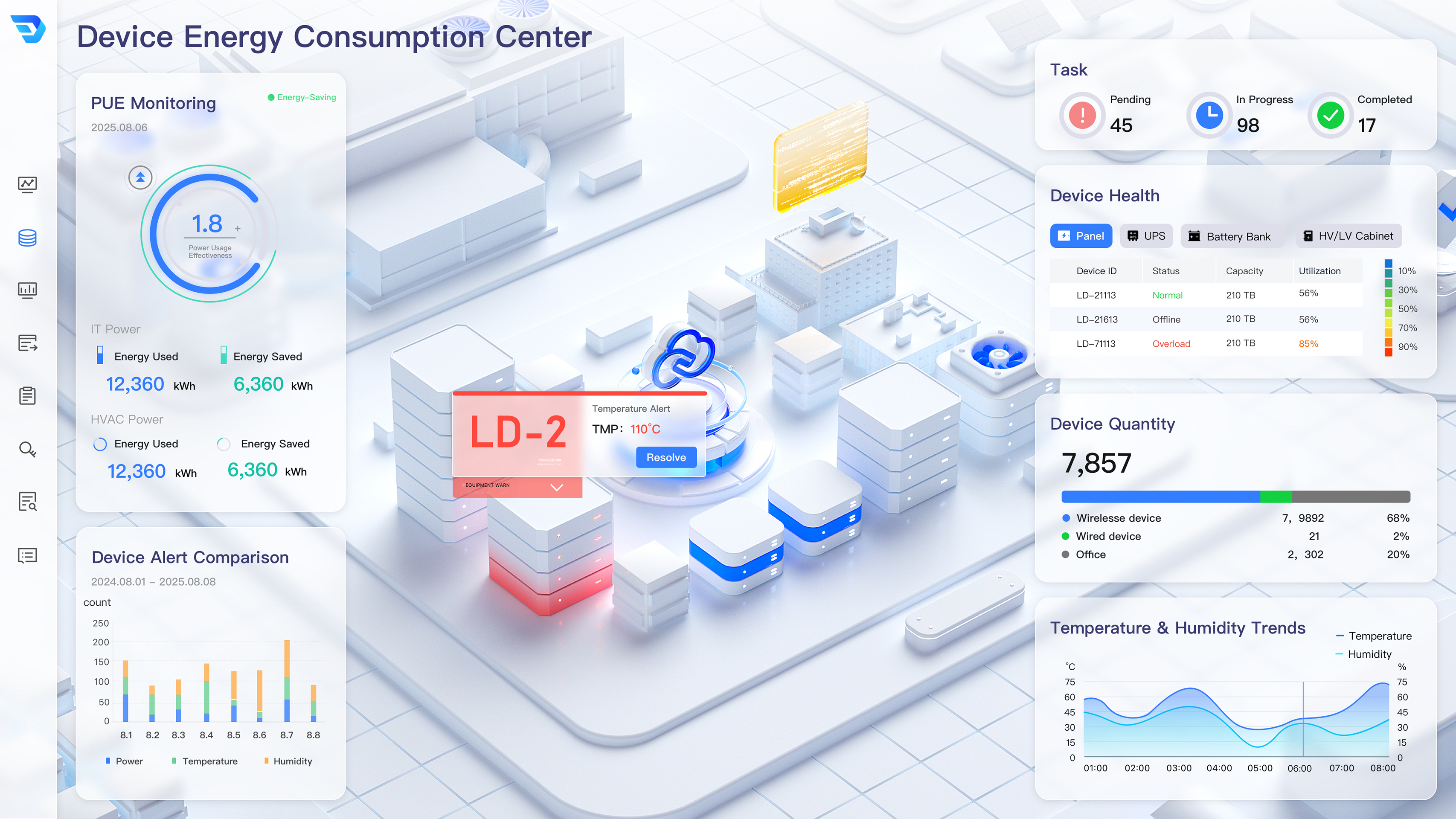 Transcending traditional single-dimensional data presentation, the system constructs an immersive 3D digital twin world to present complex data on energy consumption, networks, and operations within the park for efficient management. Built on the self-developed O&M large language model (LLM), it achieves second-level fault response and resolution via AI-driven automatic repair, improving fault diagnosis and handling accuracy by 50-70%. In terms of interface design, park layouts, server rooms, and equipment connections are displayed in layers with refined visual language, making intangible data flows and equipment status intuitively perceptible. This approach avoids mechanical rigidity while highlighting data value, helping establish an end-to-end collaborative management system.