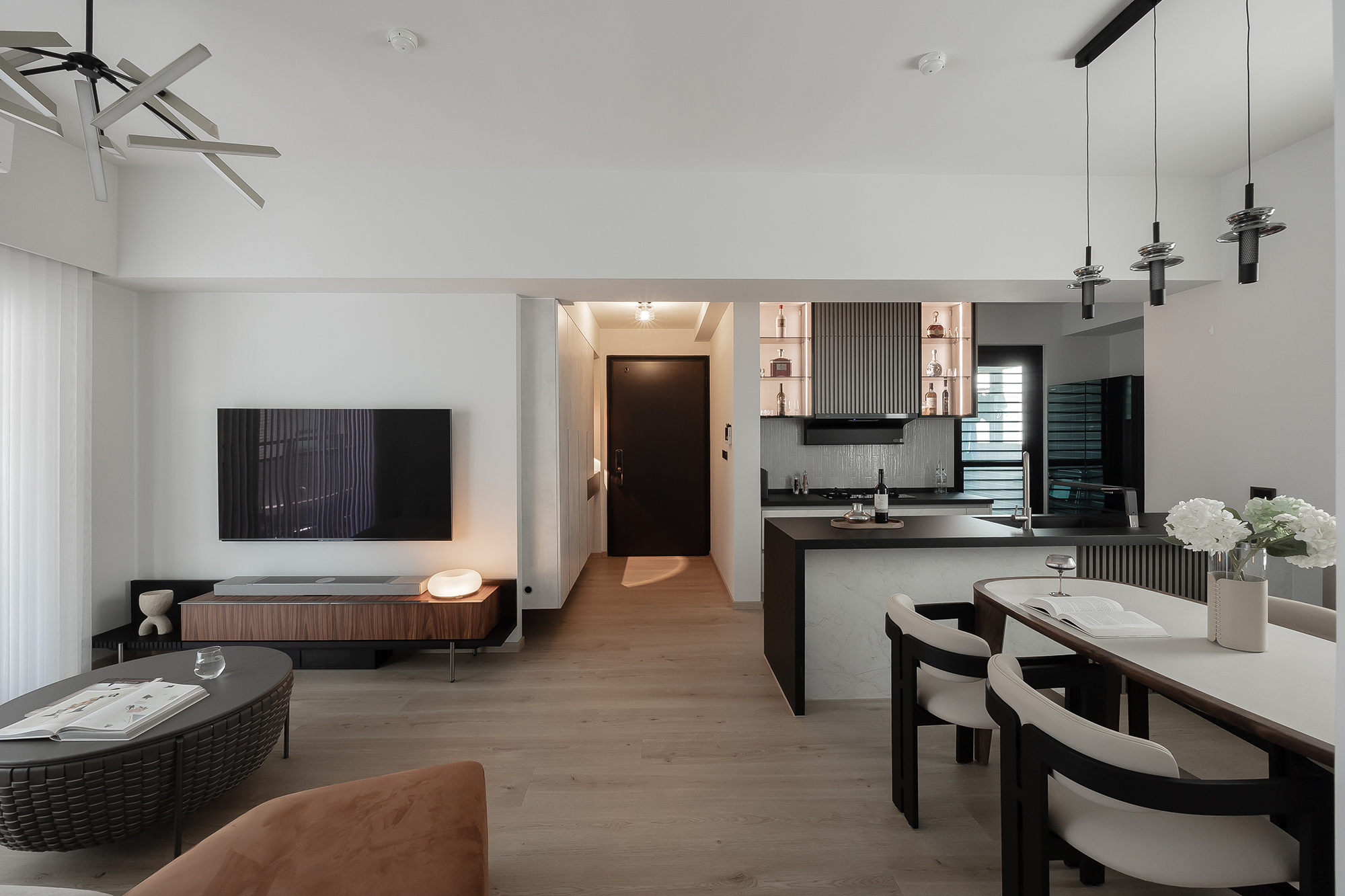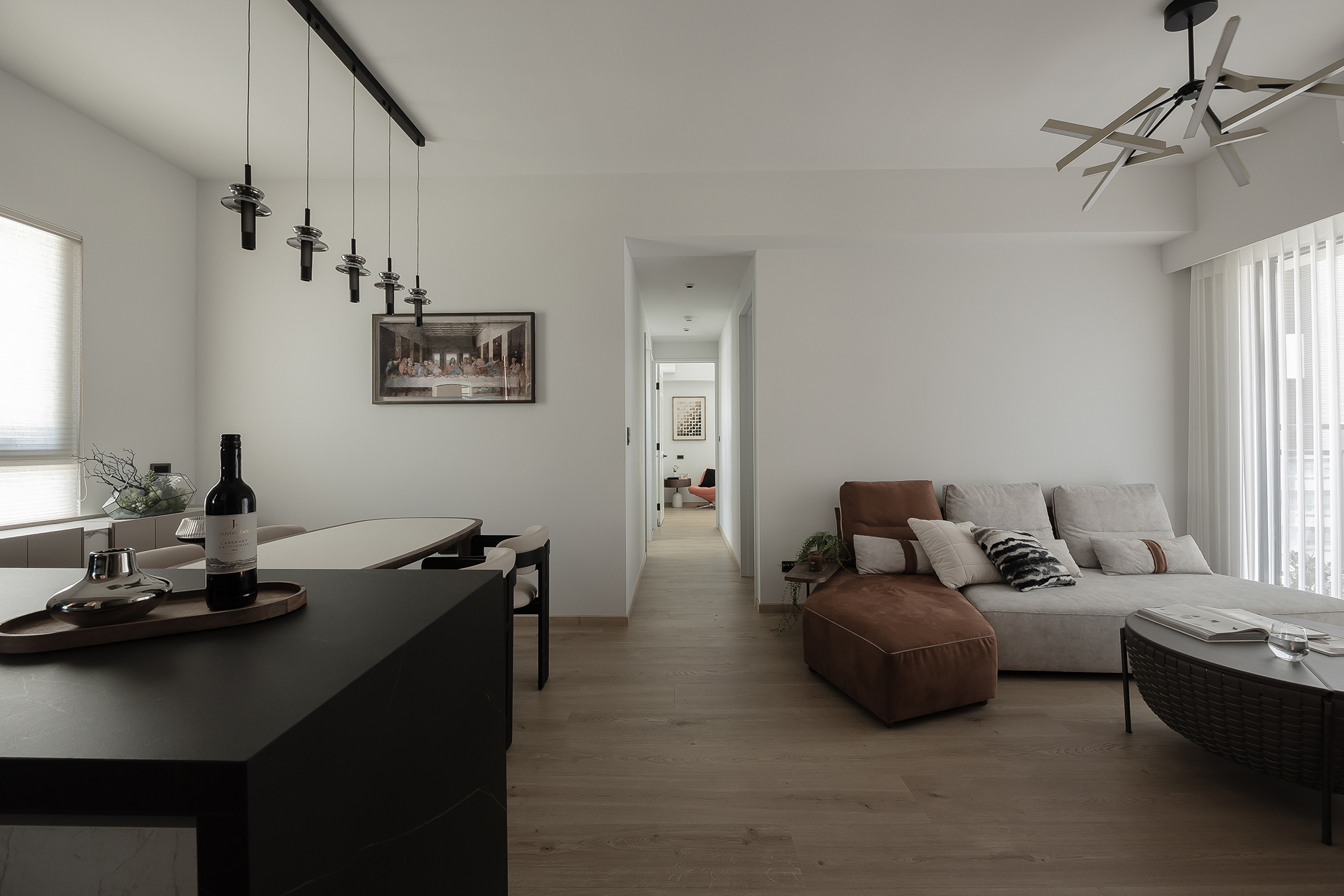 Located in Hukou, Hsinchu, the residence is designed for a young couple. The inspiration stemmed from the embracing quality of natural light, a wish to create a space that feels tranquil yet never cold. The designers used white as the canvas and light as the brush, allowing daylight to flow gently over pure surfaces, infusing the home like honey seeping into still air. The original circulation was preserved with minimal structural change, embodying the philosophy of simplicity and ease, a home where one can truly live with calm freedom.