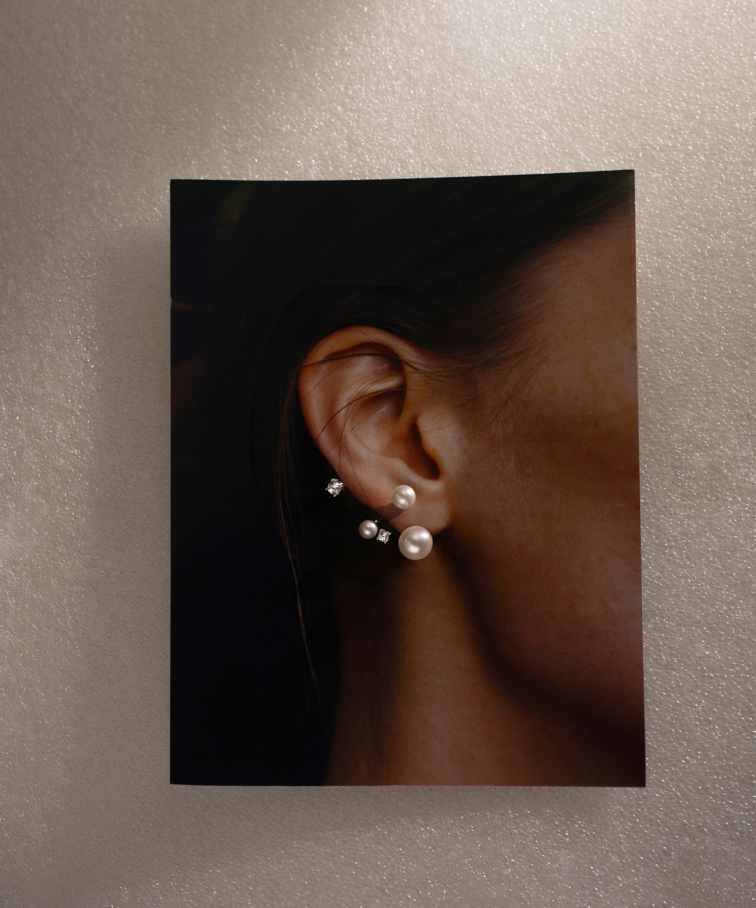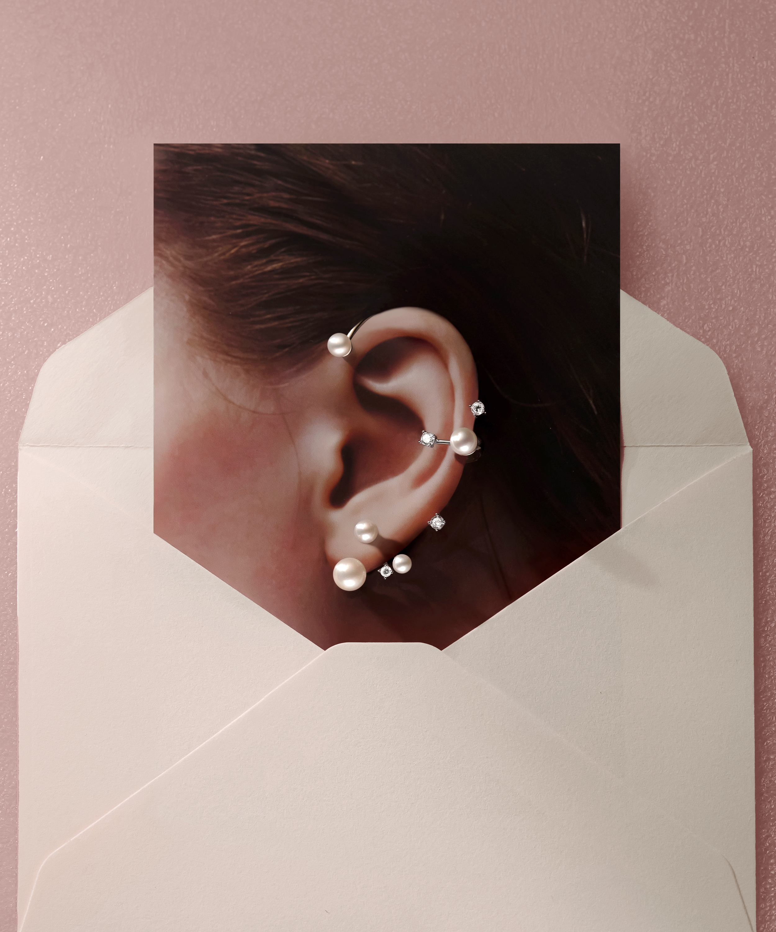 The biggest innovation lies in a unique floating design that perfectly conceals metal connectors, allowing pearls and cubic zirconia to appear as if freeing from physical constraints and elegantly floating around the ear. Adhering to the modern principle of ‘less is more’, Astrifer ingeniously scatters lustrous pearls and dazzling cubic zirconia, reminiscent of naturally dispersed stars—dynamic, brilliant, and exquisite. Moreover, it comes with three holes varying in height to support flexible adjustment, offering a snug yet comfortable fit for earlobes of different sizes.