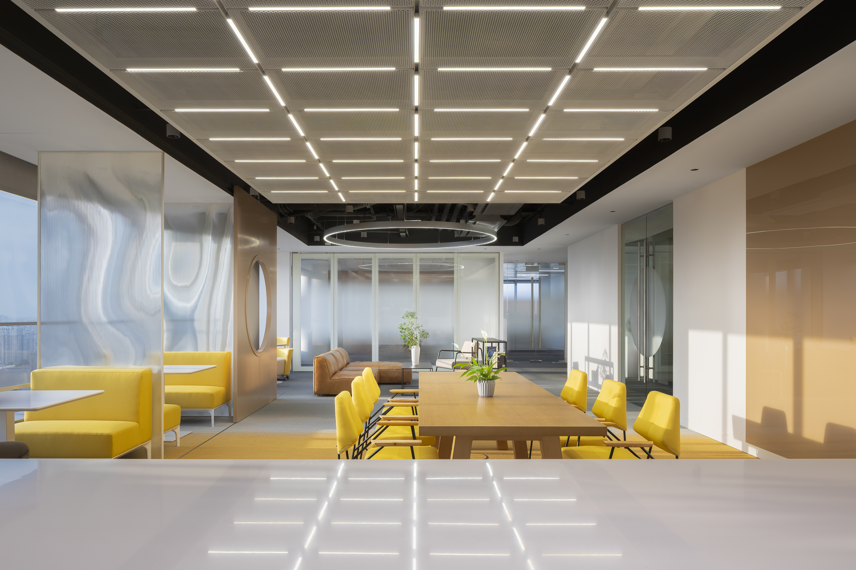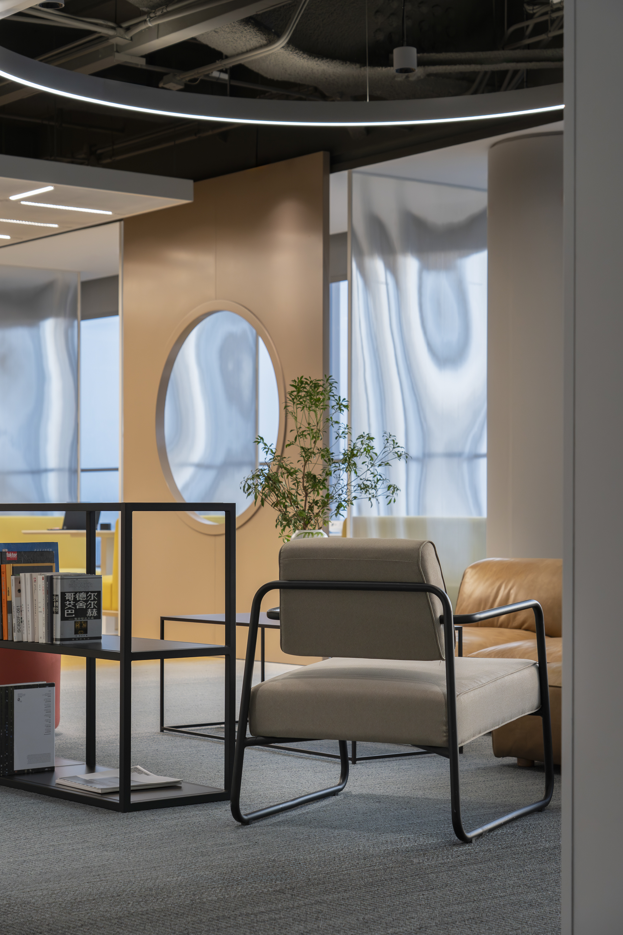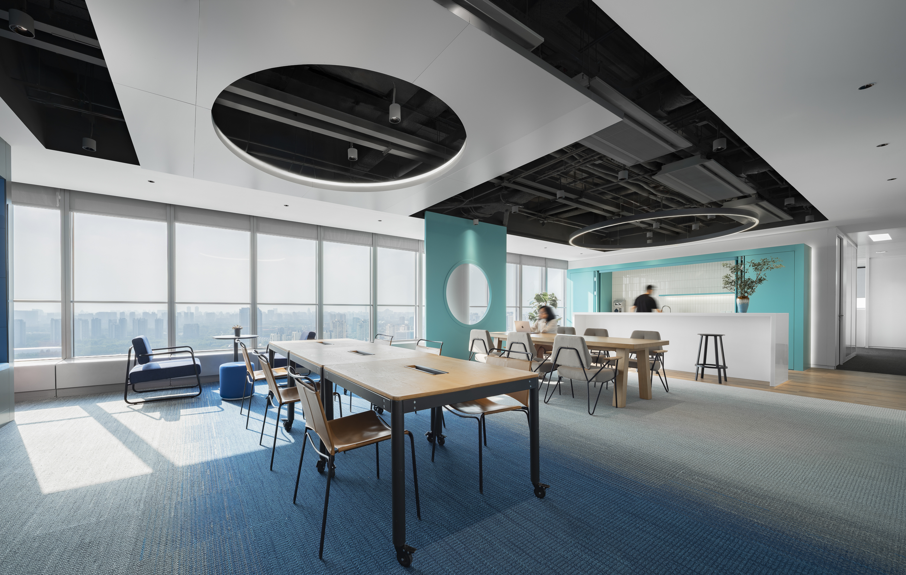 Within the spatial arrangement, standardized guidelines elevate private offices, open workstations, and meeting rooms, while systematic partitioning enables swift, Eco-conscious construction. The tea zones on each floor emerge as vibrant social hubs—seamlessly blending lounge, meeting, and pantry functions. Enriched with poetic nods to Chinese garden design, movable screens, circular luminaries, and moon gate-inspired openings echo cultural motifs of inclusion and continuity, weaving tradition into contemporary flow.
