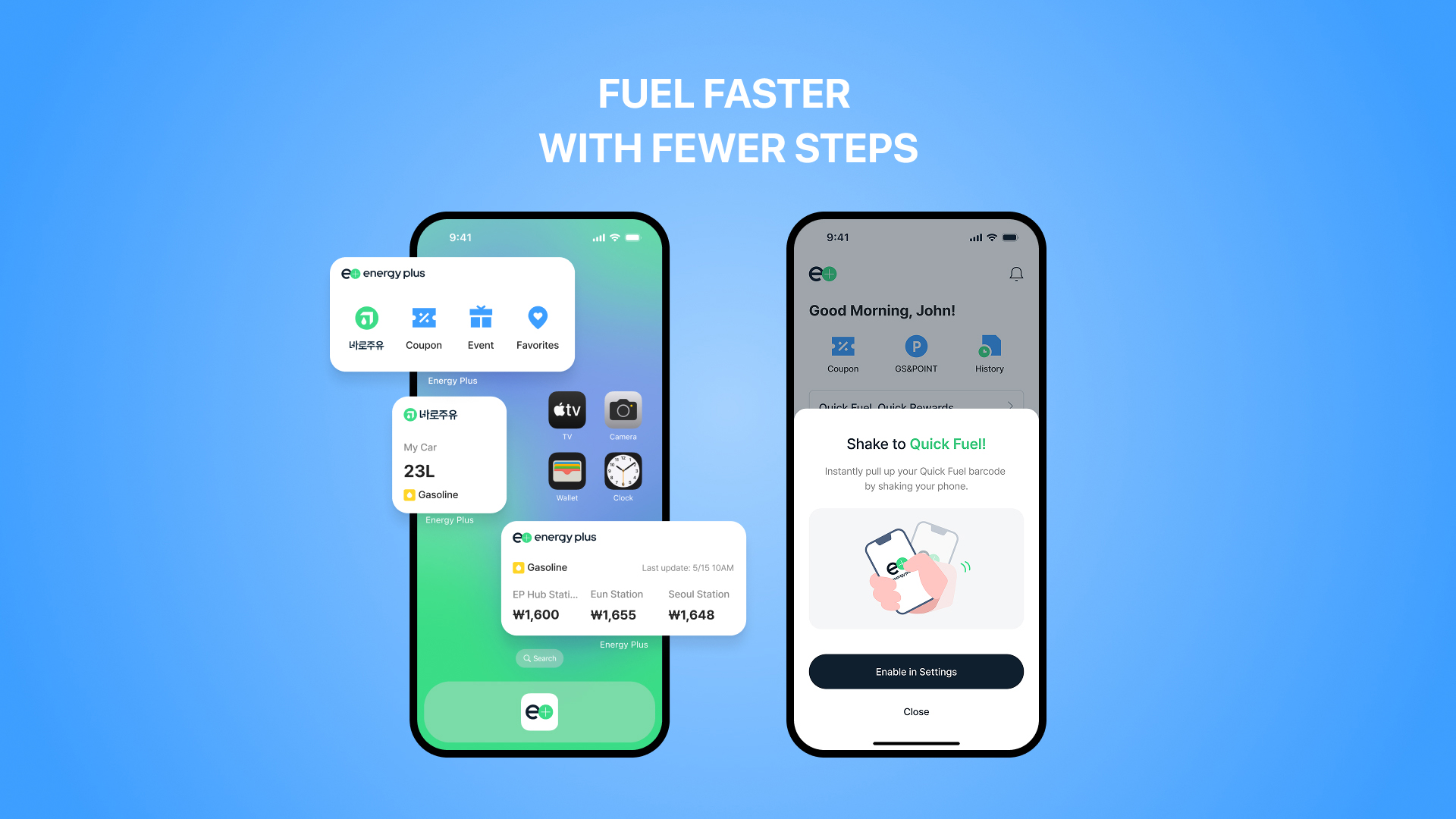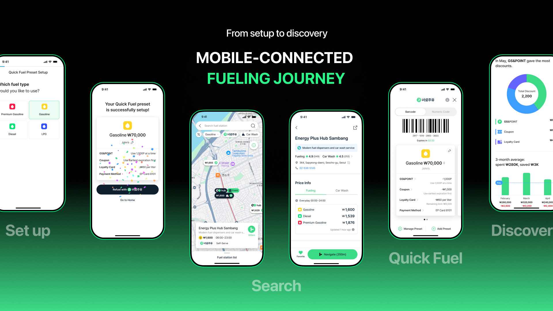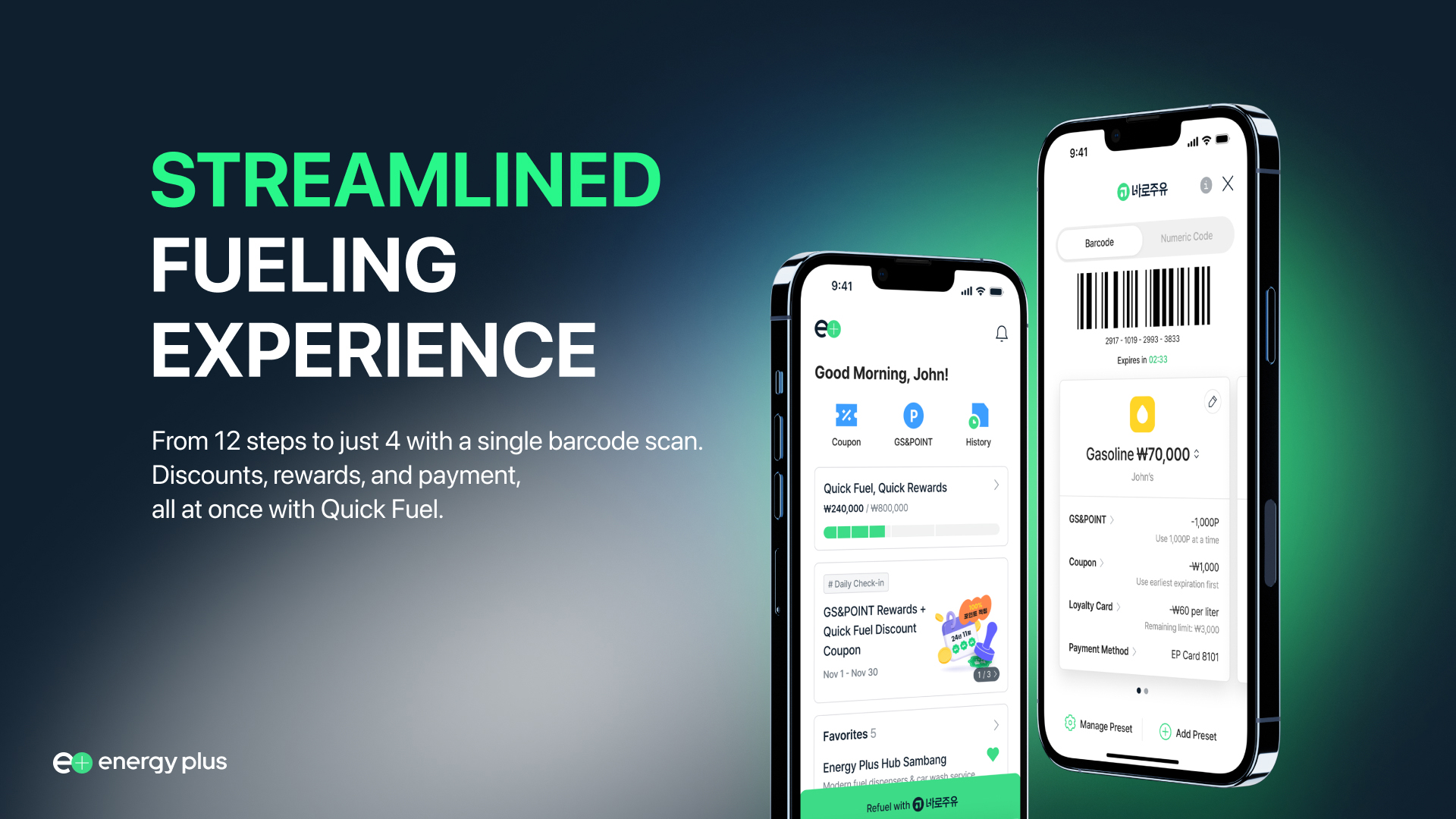 Energy Plus is Korea’s leading fuel payment app, transforming the traditional 12-step refueling process into just four.