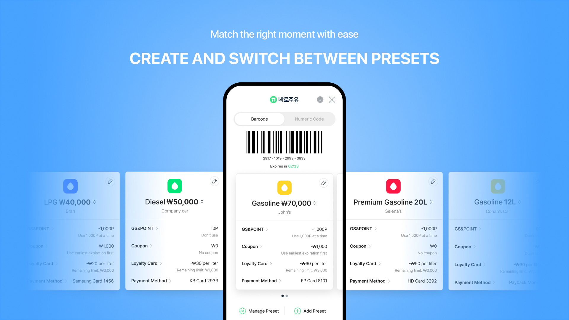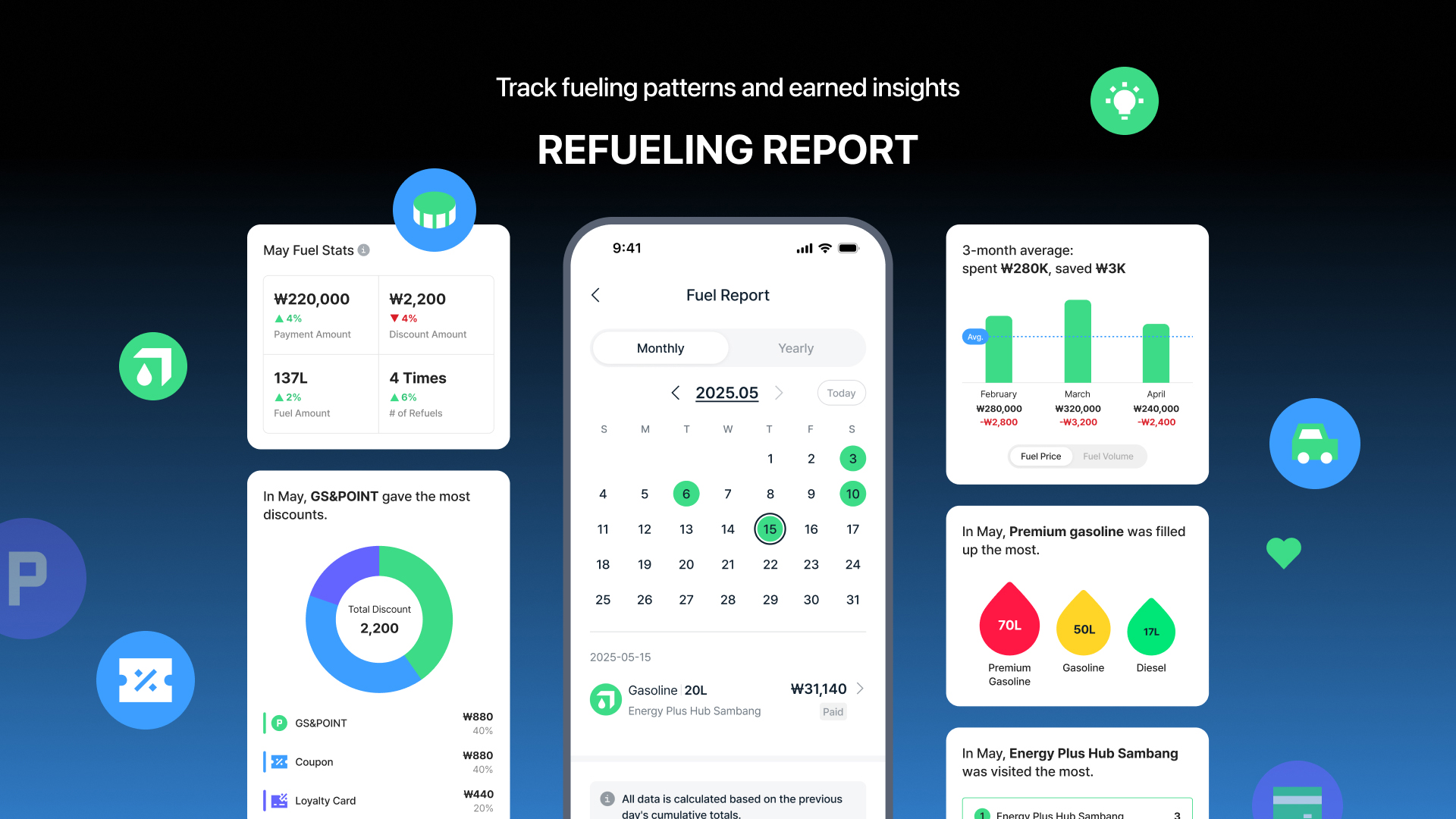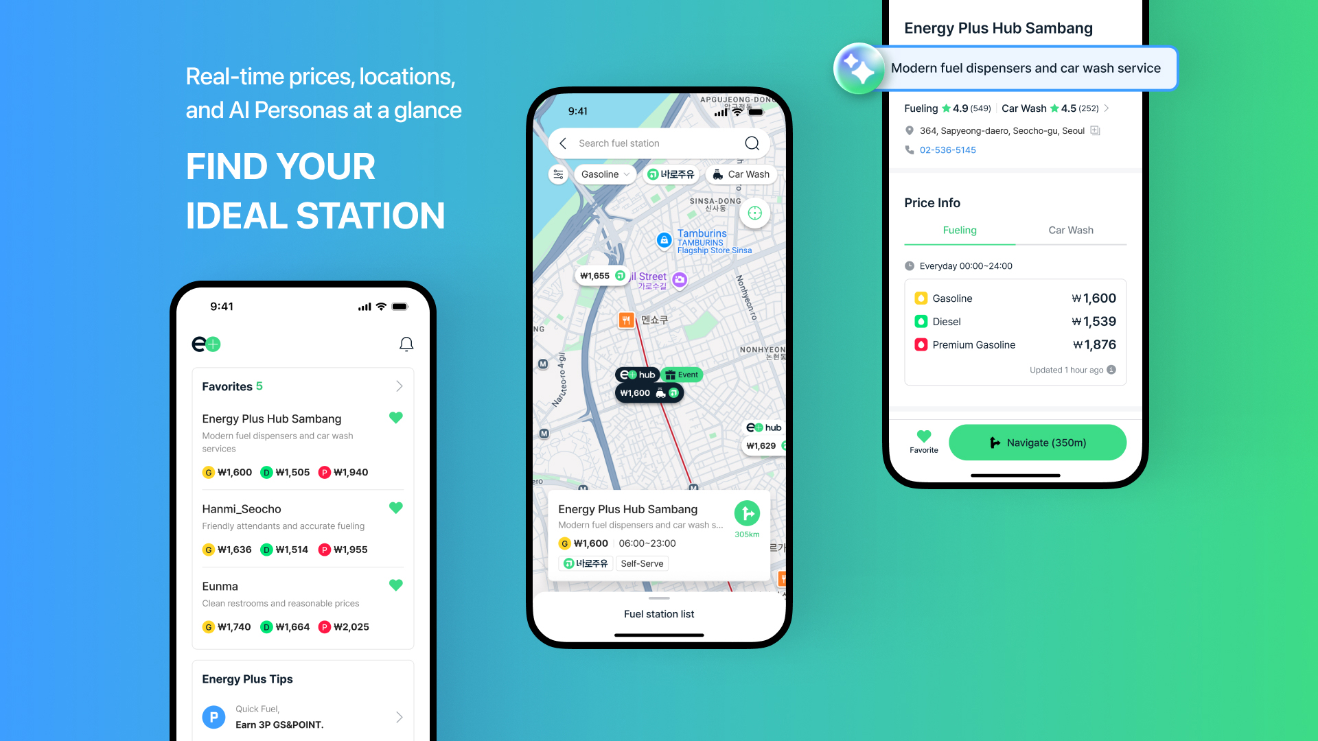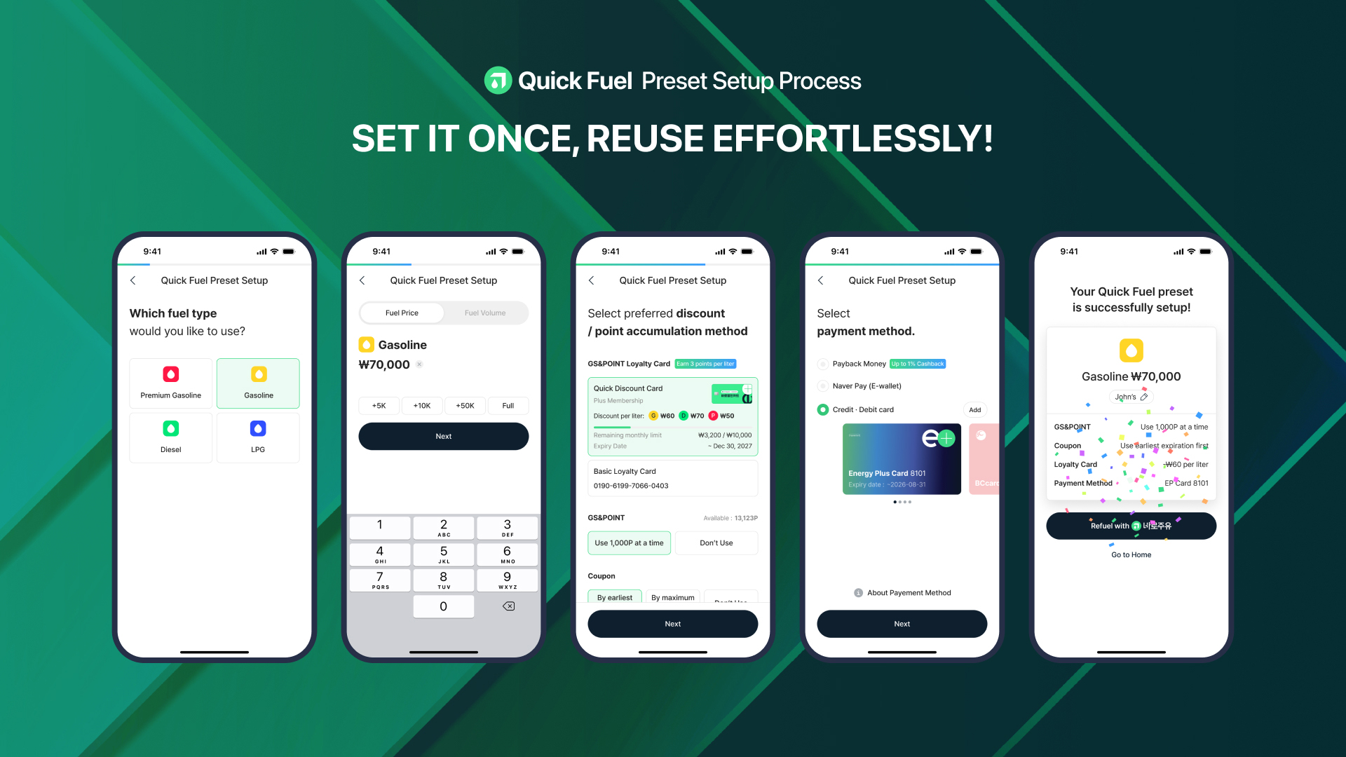 Energy Plus is Korea’s leading fuel payment app, transforming the traditional 12-step refueling process into just four.
