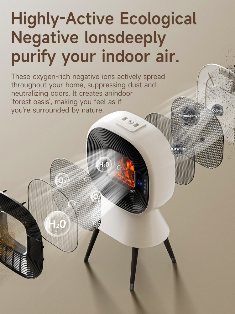 Beyond heating, the Gresland-Benc enhances well-being with built-in humidification and eco-grade negative ions, actively purifying air to create a fresh, forest-like atmosphere. The 5D dynamic flame offers mesmerizing visual warmth, while smart controls—including app connectivity, AI voice command, and Bluetooth music playback—add seamless convenience.