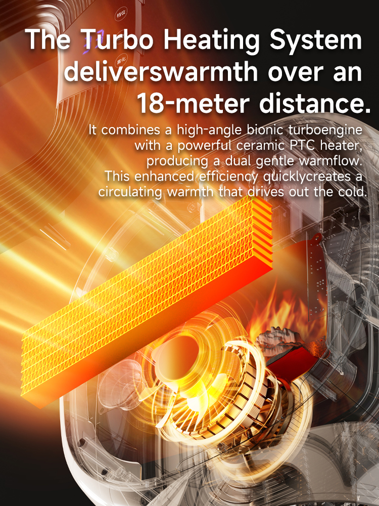 The Gresland-Benc Space Heater redefines home heating by merging cutting-edge technology with elegant, user-centered design. Engineered for ultimate comfort, it delivers rapid, uniform warmth through an advanced ceramic PTC heating system and a biomimetic turbo engine, boosting heat efficiency by 50x. Its 18-meter long-range airflow ensures whole-room circulation up to 126m², warming every corner in minutes.