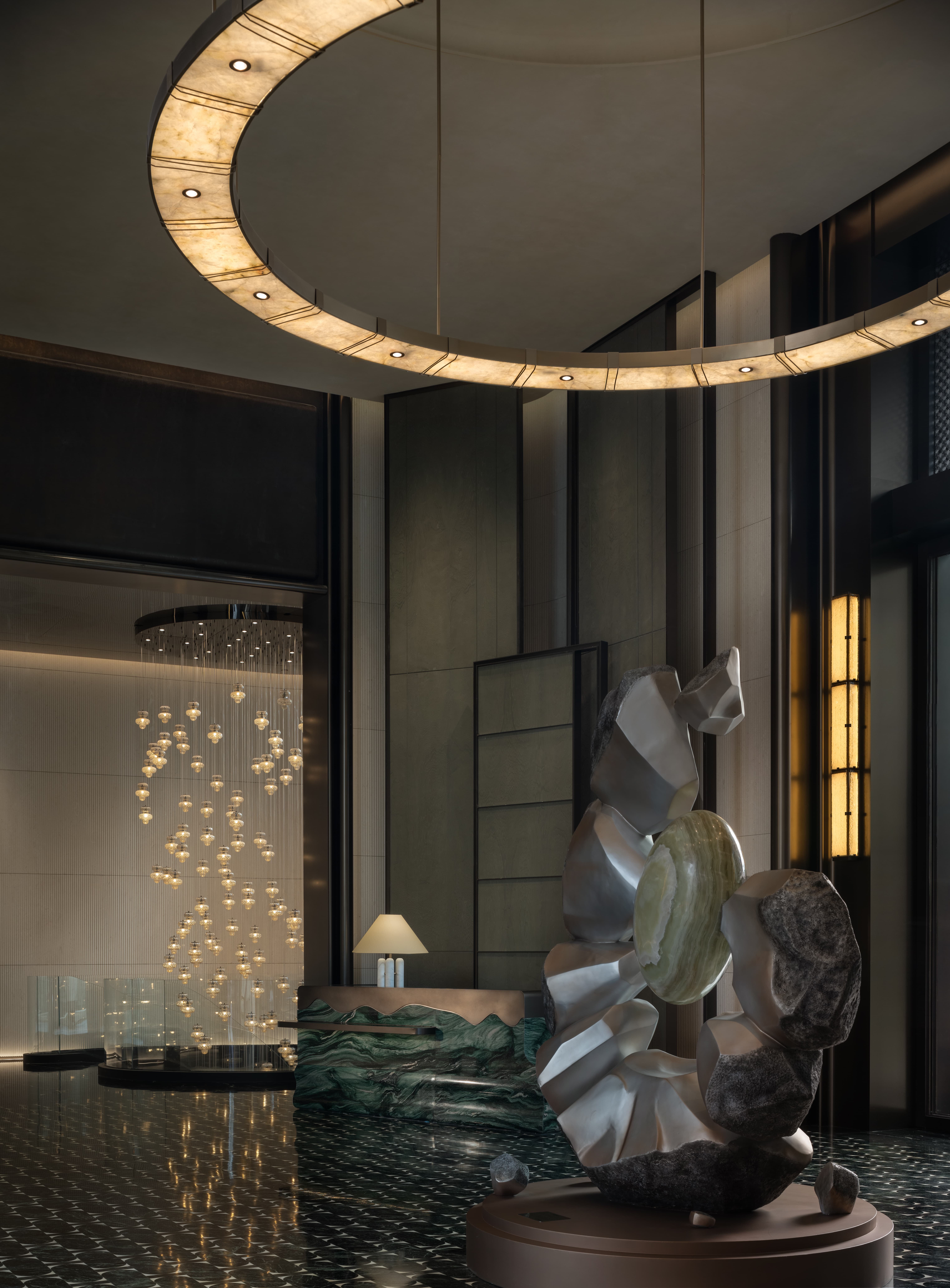 Poly TAN GIM in Sanya, as a new masterpiece of the "TAN GIM Series" by Poly, draws its creative essence from "jade," reshaping the high-end residential experience in Sanya as if sculpting fine jade. PURE DESIGN deeply deconstructed the local cultural genes of Sanya, and through the artistic interpretation of "revealing refined jade from unworked stone," transformed the formal imagery of Qiongya’s ancient city into a Haipai design language. This achieves a poetic translation of traditional culture within a contemporary minimalist composition, constructing a highly customized social realm – the JUN Club – that integrates cultural depth and modern sensibility.