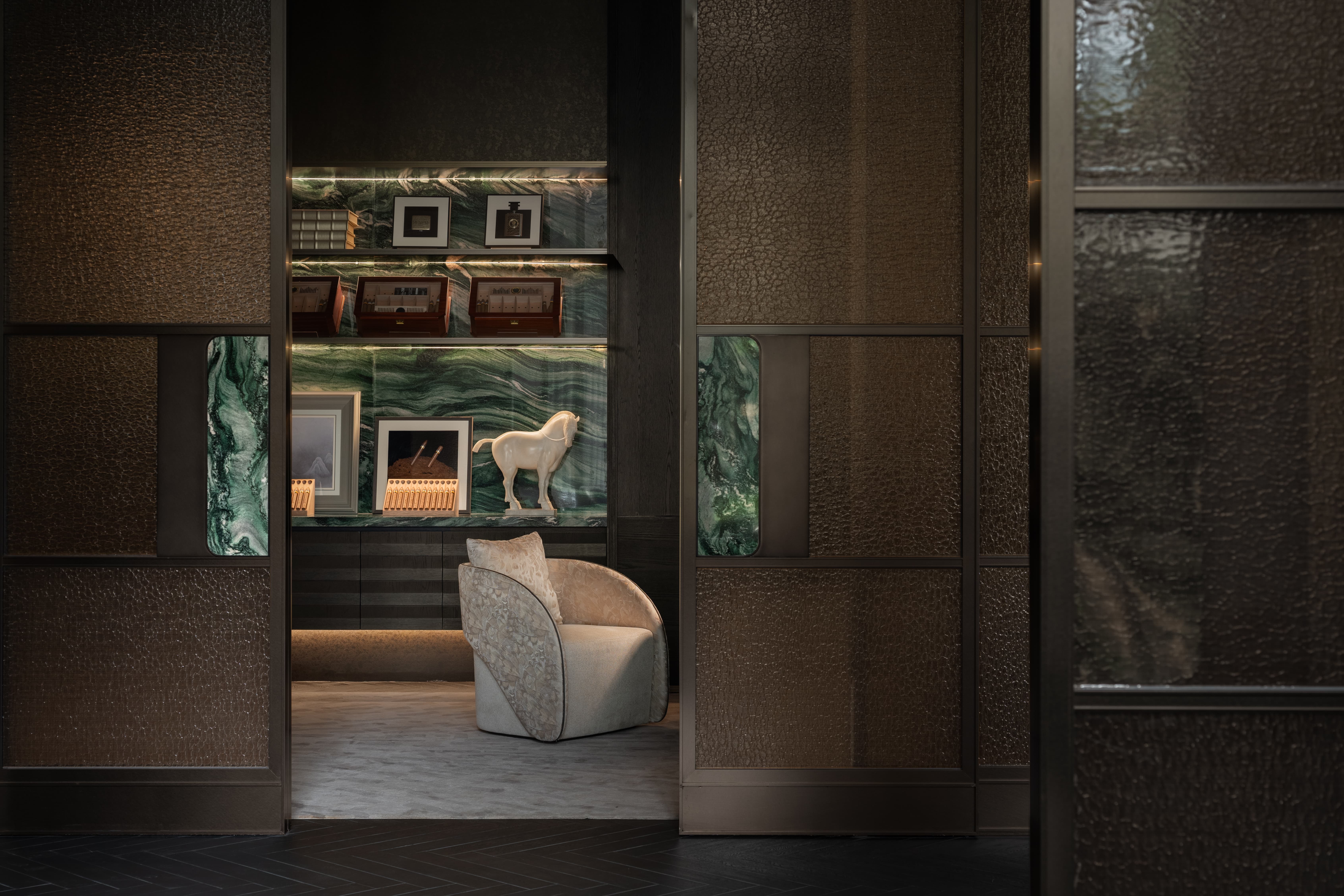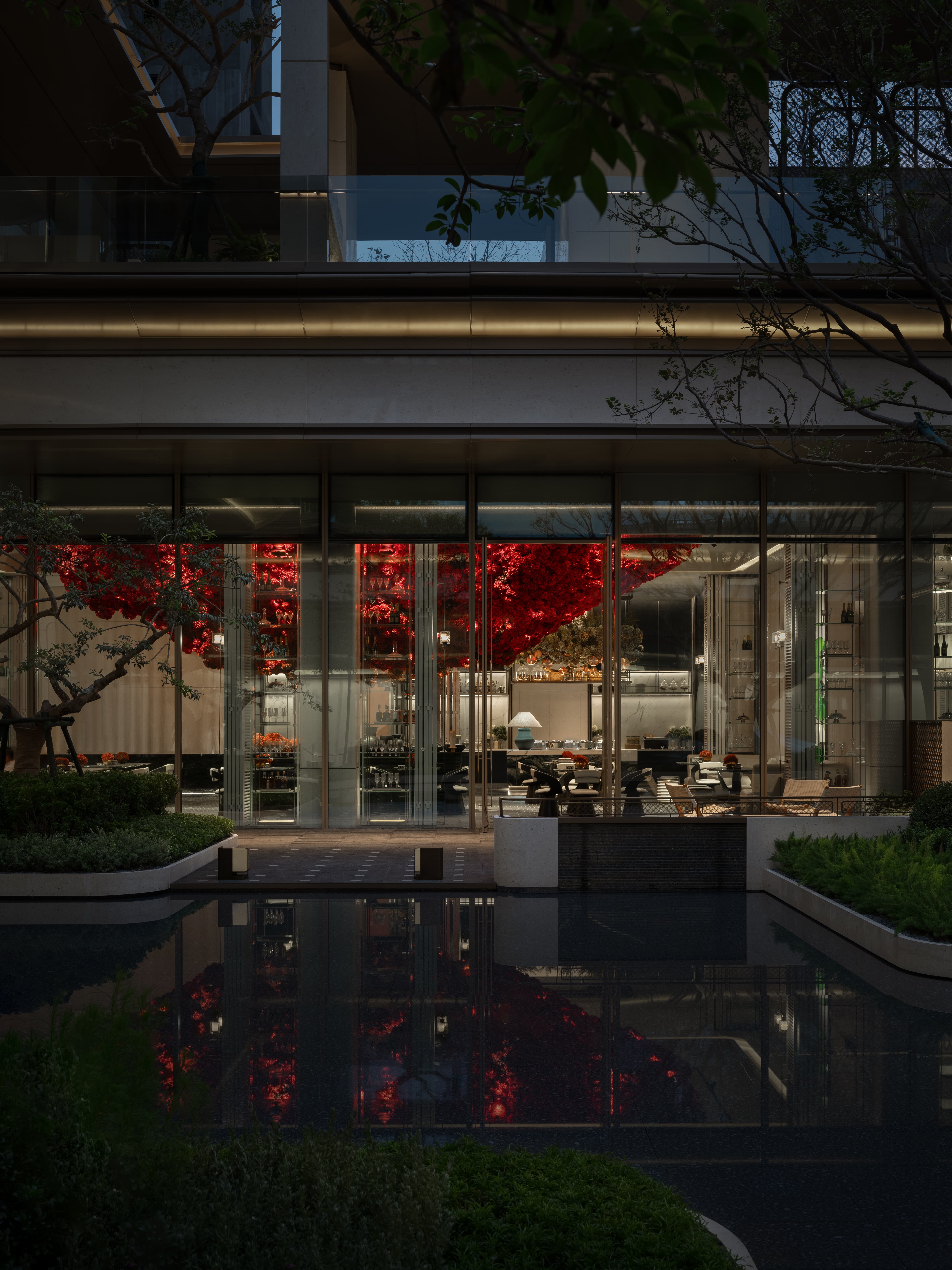 nspired by nature and embedding art into the environment, the design subtly blends Haipai elegance with a touch of hidden luxury. Modern charm and tropical lightscapes grow on bookshelves with shell-like textures and are diffused within the poetic play of light and shadow created by everlasting flower installations. This guides residents into an immersive Haipai artistic journey within the JUN Club, allowing them to appreciate the unique charm of interwoven culture and art in every inch of the space.
