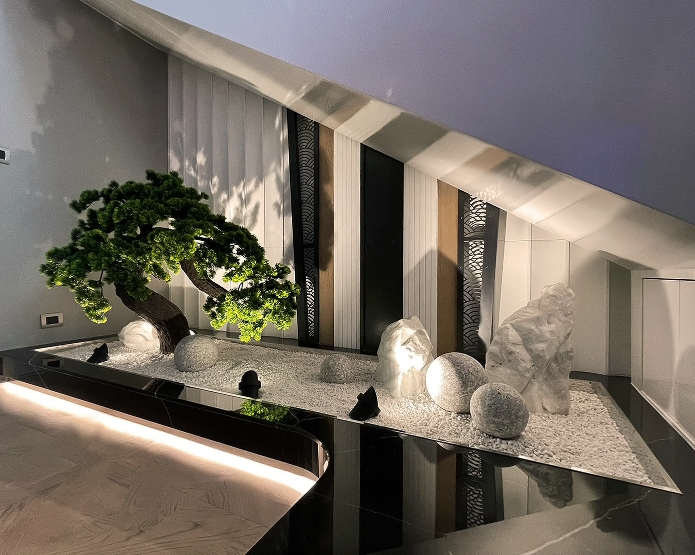 Beyond aesthetics, the residence integrates innovation through an advanced home automation system. Lighting, temperature, and mood scenes are designed to respond intuitively to the resident’s lifestyle, enhancing comfort and personal connection.