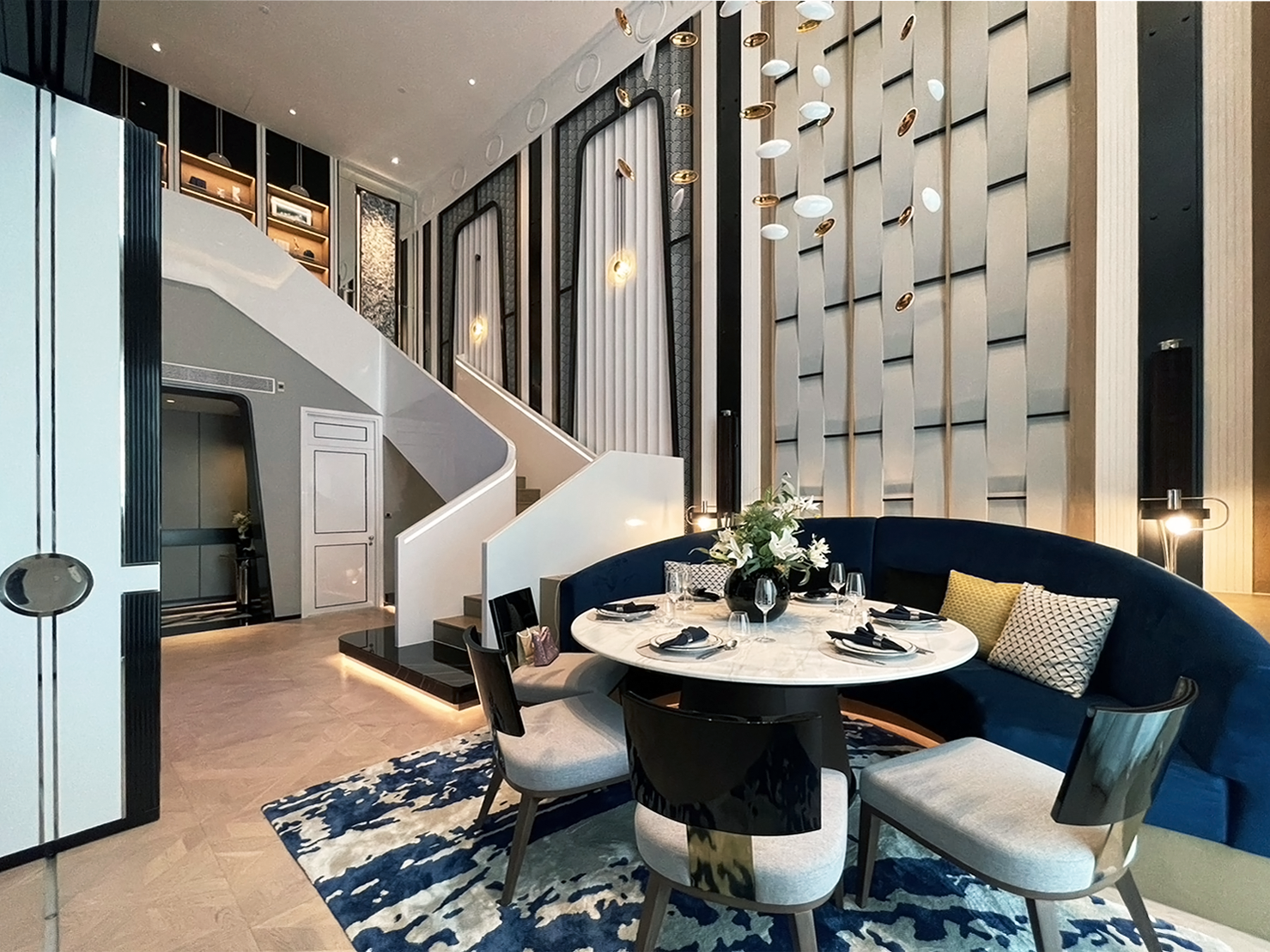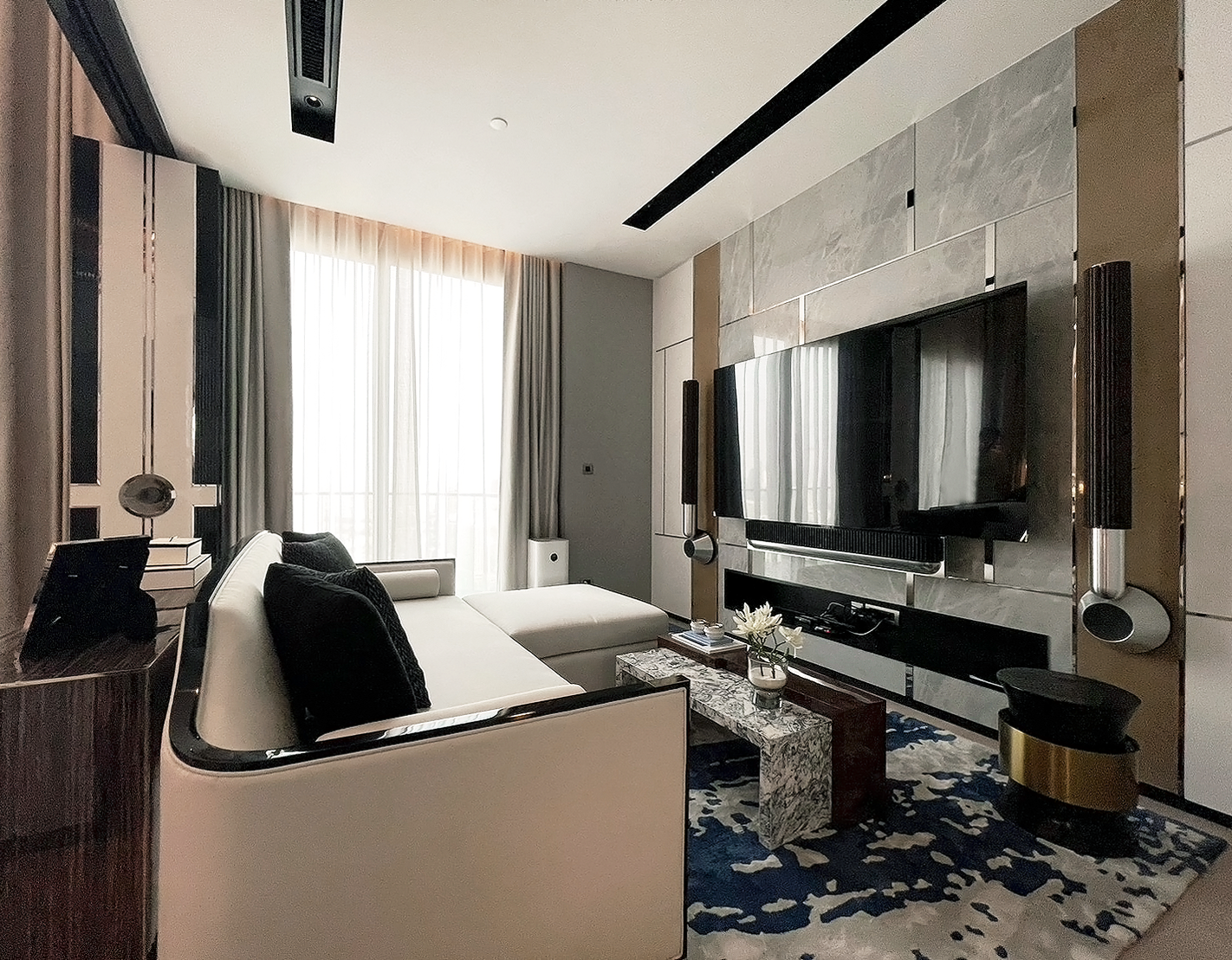 This residential unit is part of a luxury condominium located along the Chao Phraya River in the heart of Bangkok, offering a rare balance between exclusivity, serenity, and urban sophistication. The Mandarin project’s riverside setting inspired the design concept of this residence, titled “Super Yacht.”