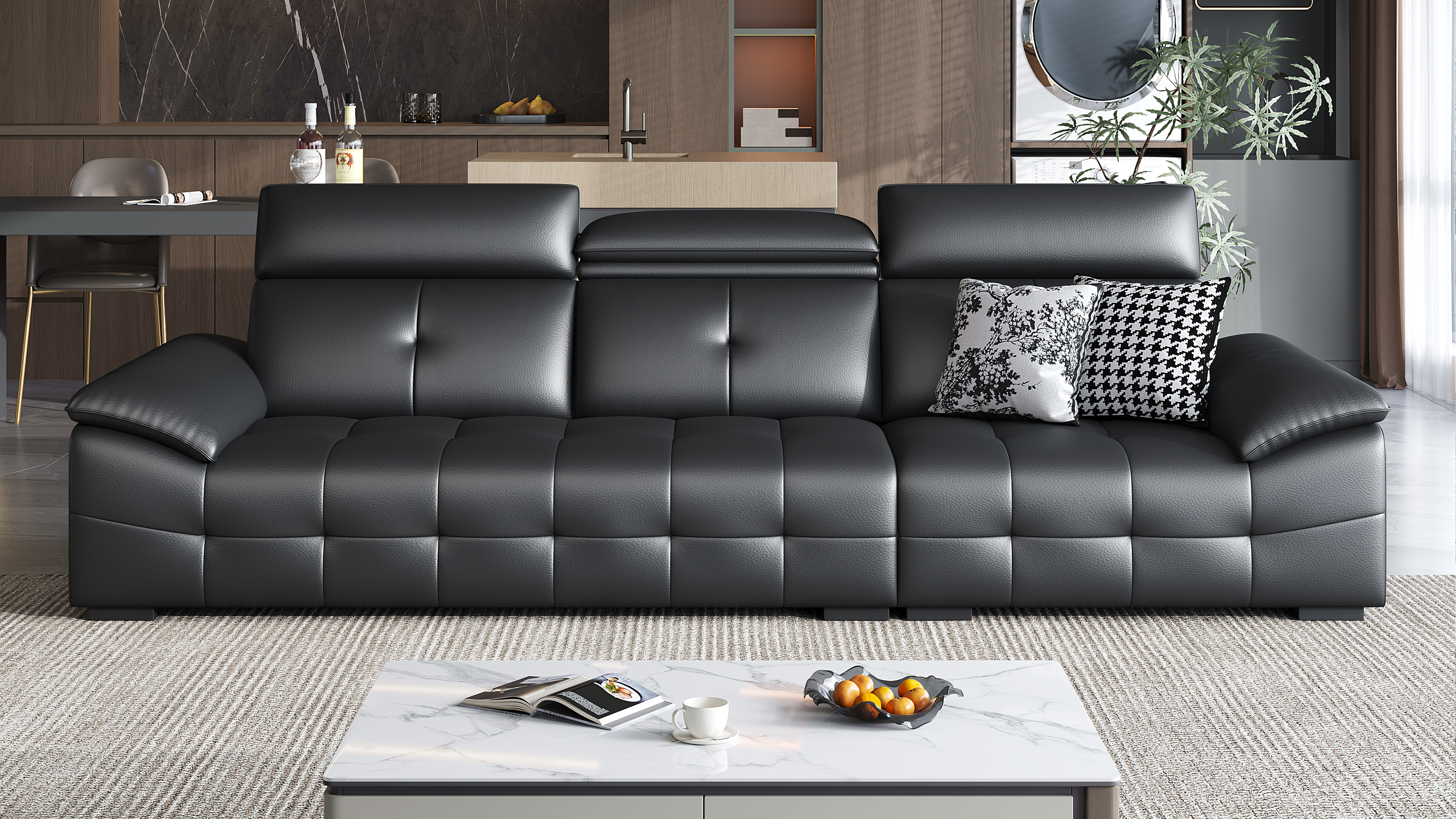 The rounded armrests mirror the soft, flowing motion of the body’s lines, offering a natural resting position for the arms while enhancing the sofa’s visual fluidity. The premium leather upholstery delivers a subtle sheen, enriching the sense of luxury while remaining versatile enough to complement various décor styles—from minimalist modern to understated classic.