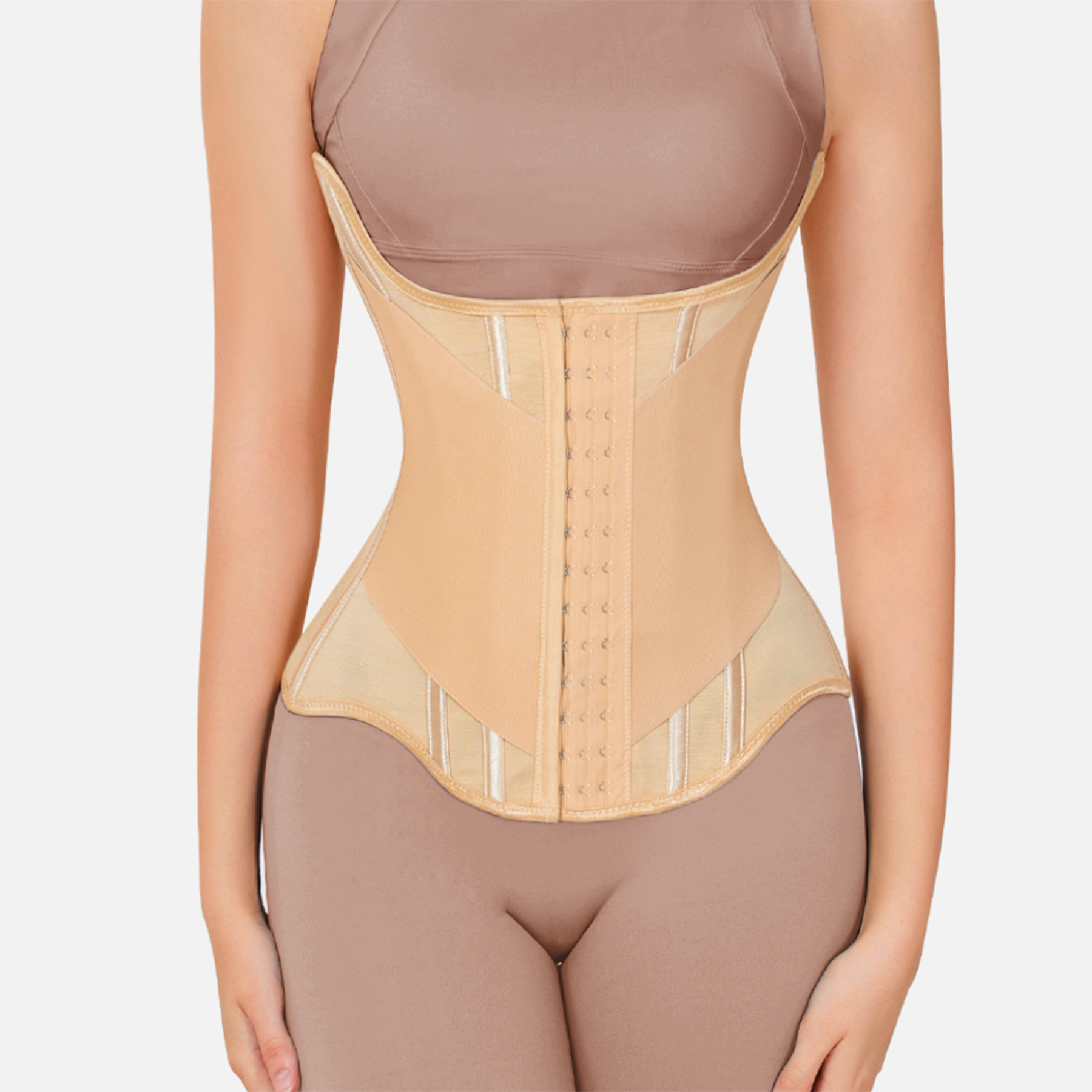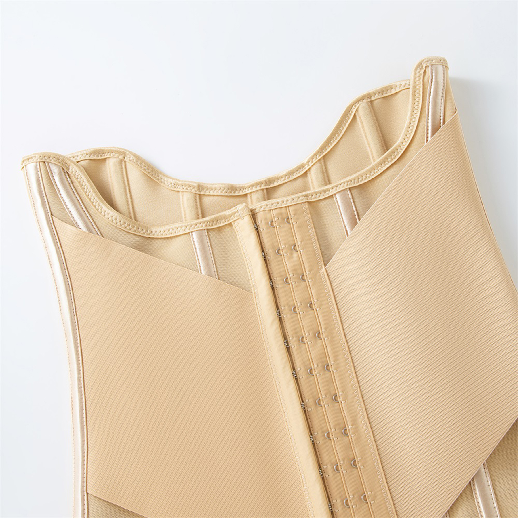 The product offers a 360° shaping solution. An ergonomic hourglass-like silhouette, paired with a double-layer structure, ensures scientifically even pressure distribution. At the same time, the outer layer boasts a V-shaped design for a visually slimming effect. Multi-position clasps allow users to adjust tightness as needed, providing a tailored shaping experience. The back utilizes memory boning for flexible support, which delivers comfortable compression and maintains lasting elasticity, improving postures, stabilizing the core, and achieving naturally beautiful back curves.