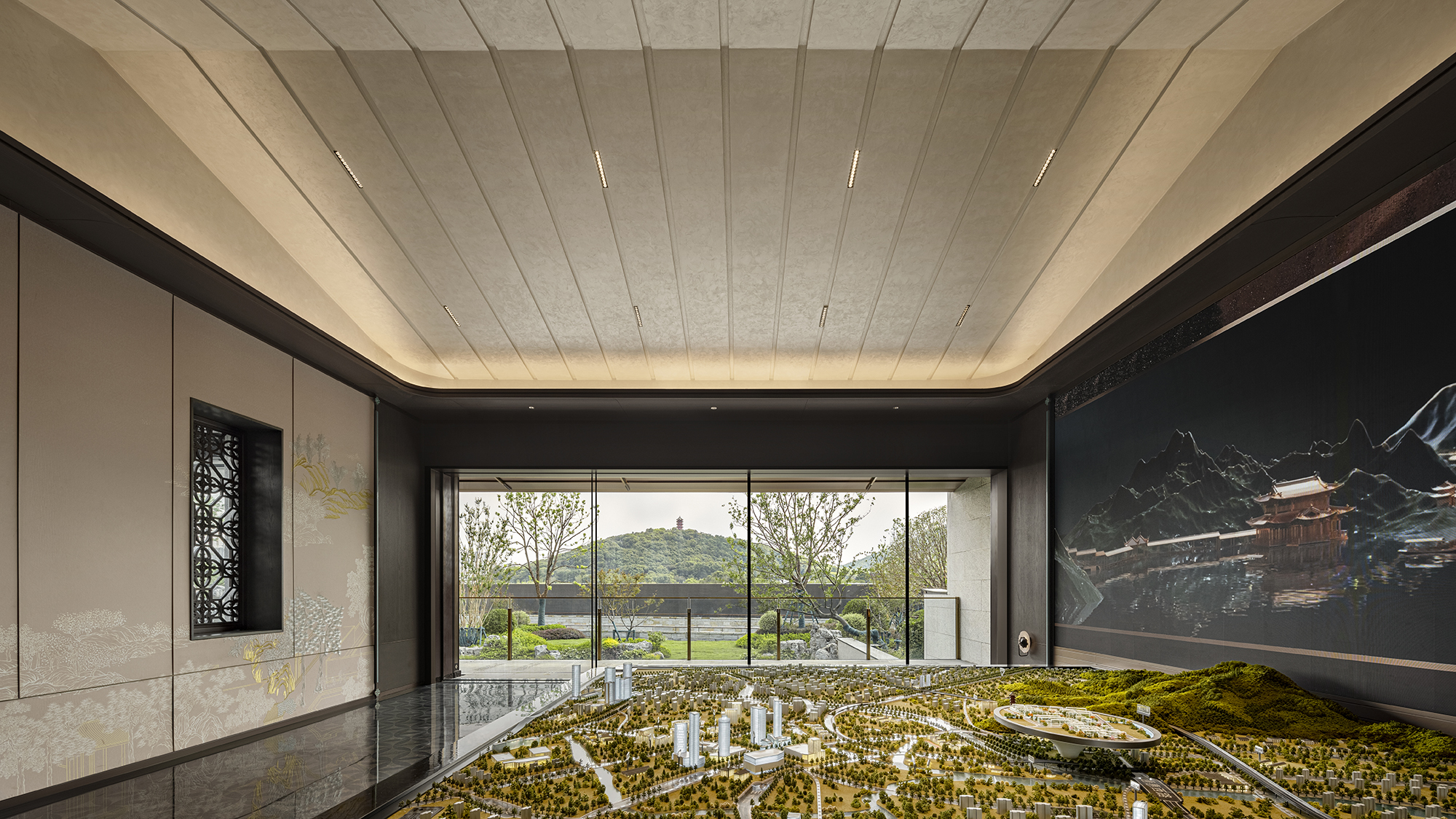 The model area unfolds like a scroll, capturing the essence of mountains and waters. The site model reveals Wuxi’s urban fabric, and floor-to-ceiling windows draw Longguang Pagoda into view, merging with the shifting glow of dawn and dusk. Strolling through the central visual corridor, each step enters into a quiet dialogue with the ancient pagoda beyond—composing a gentle symphony of the city, nature, and garden.