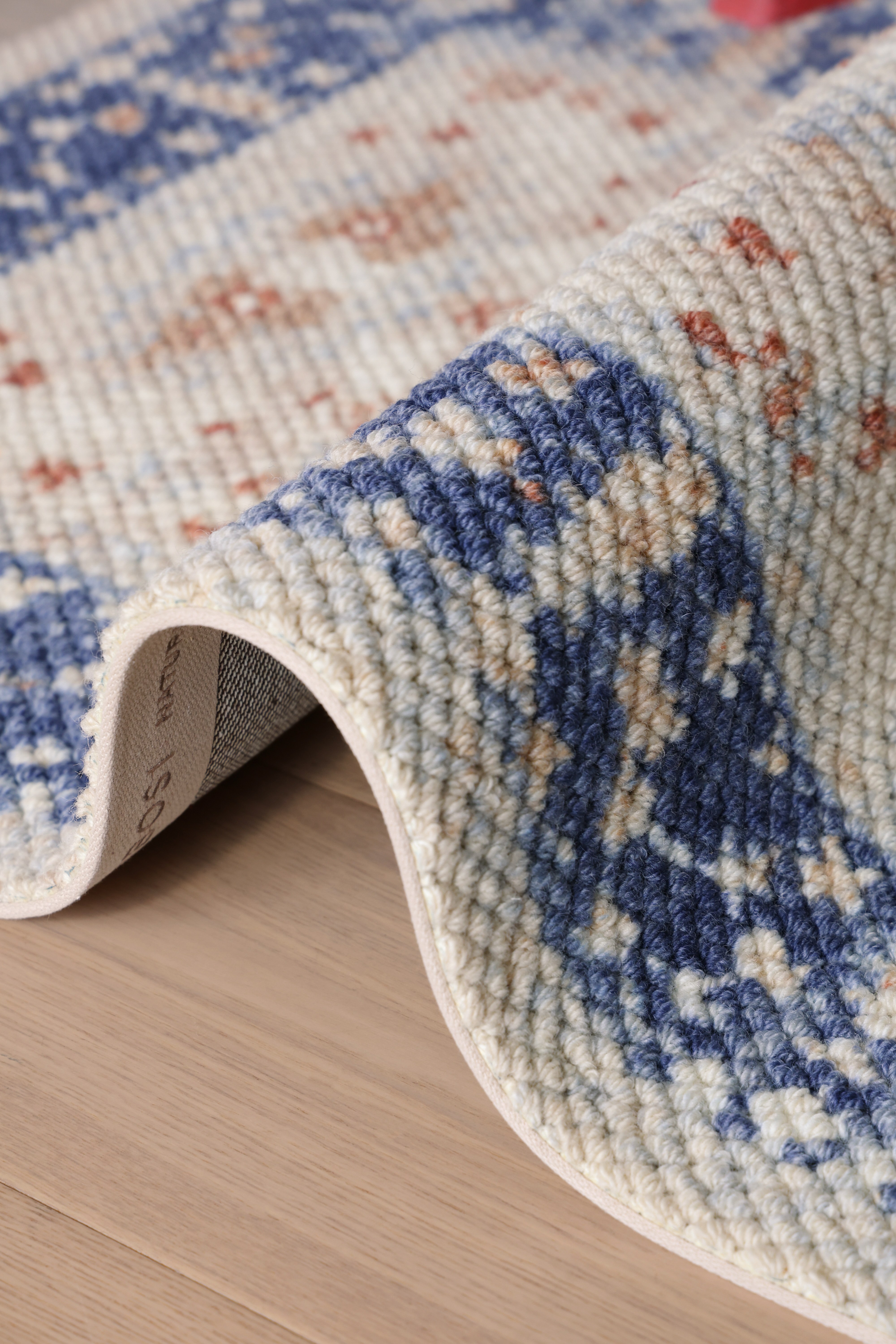 Made from premium New Zealand wool, the carpet’s surface is finely woven and densely structured, offering a soft yet resilient underfoot texture. Its durability and tactile warmth make it not only an object of beauty but also a lasting companion in everyday living.
