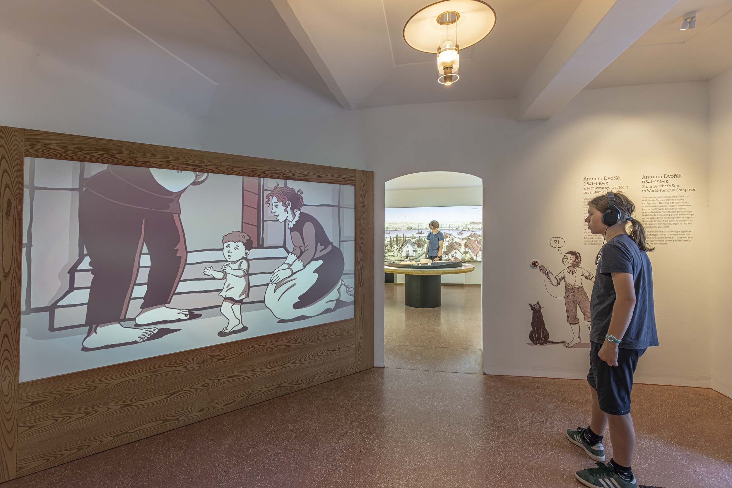 Nelahozeves, the small Bohemian village where Dvořák was born, serves as both the physical and symbolic center of the experience. It was here that his love of music began, making his way from humble beginnings to worldwide acclaim. For all his success, Dvořák never forgot his humble roots, which led to a continuous reflection on the time and place in which he was born — inside a humble tavern building in the heart of a small 19th century village. The house itself, and its context in Nelahozeves, are the focal point of the experience, around which all other stories take place.